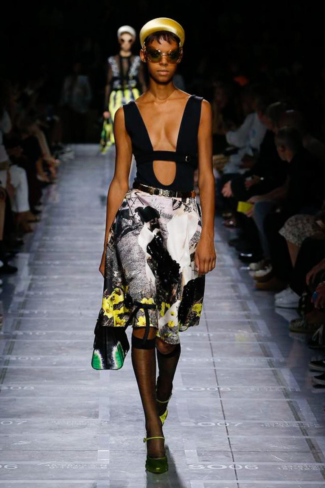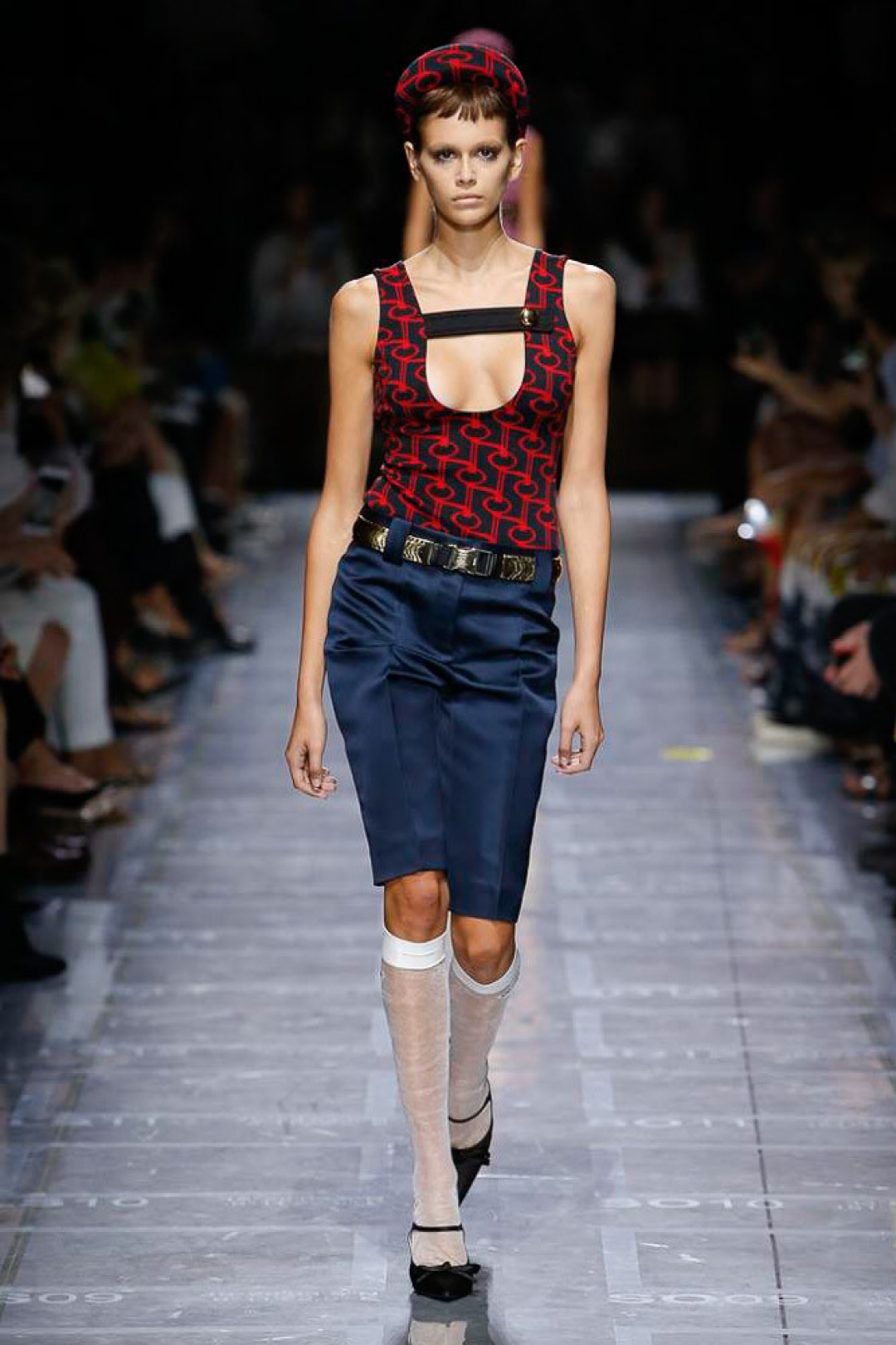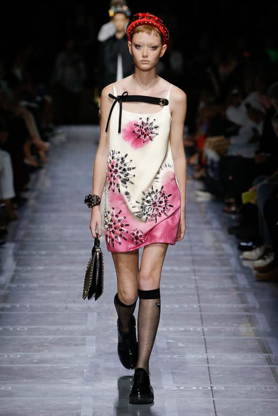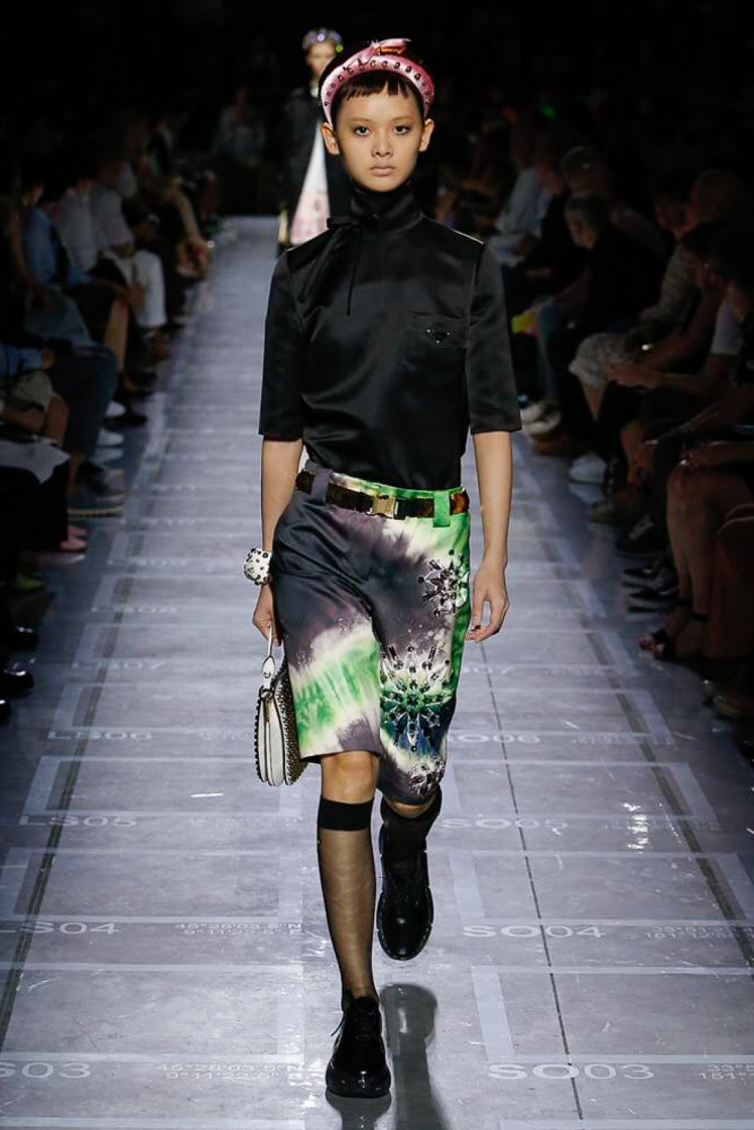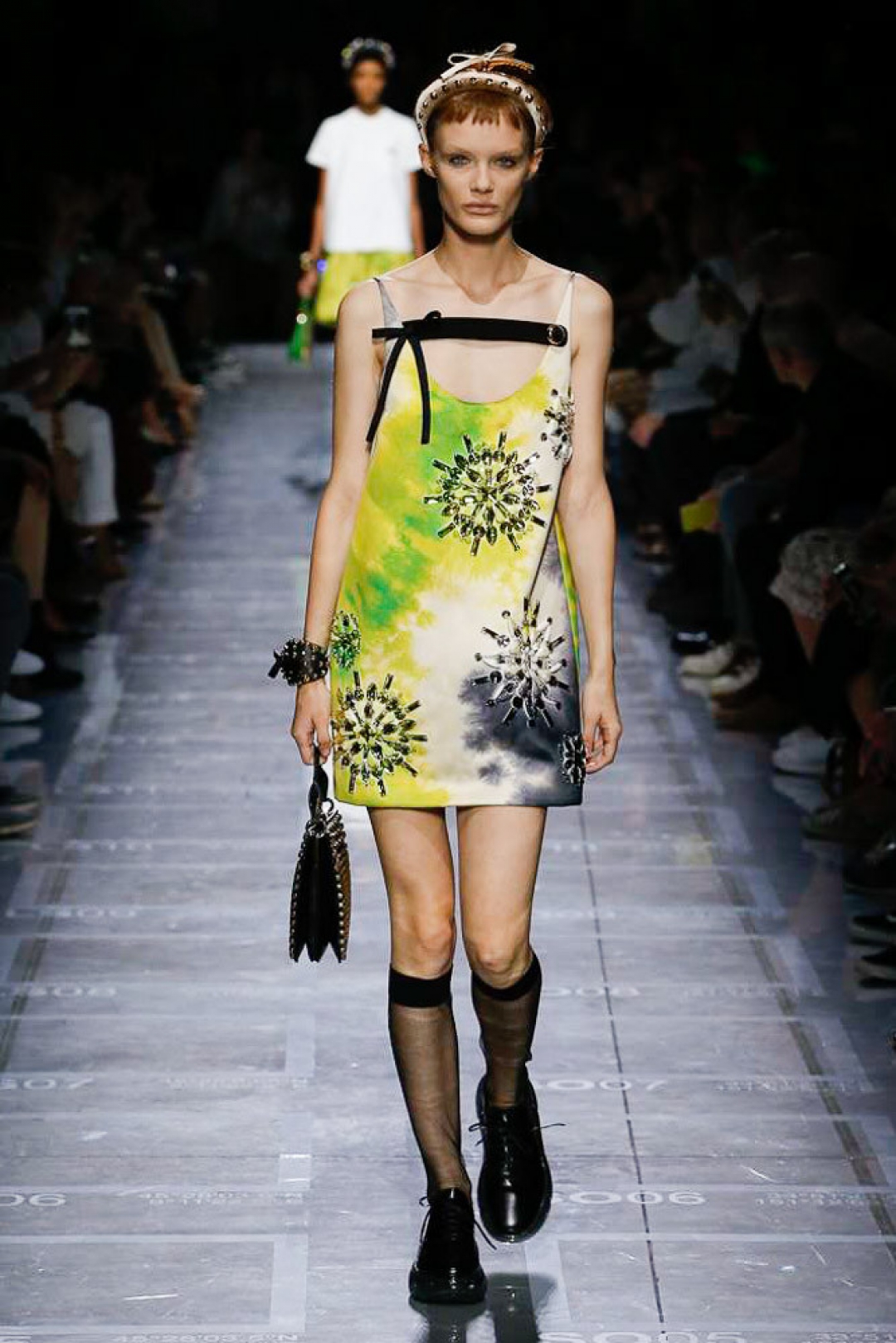 В миланском Fondazione Prada, переделанном под современный театр с партером и балконом, прошел показ весенне-летней коллекции итальянской марки. В главных ролях очередного спектакля авторства Миуччи Прады — герлскауты в шляпах-таблетках, оливковых бадлонах и атласных юбках-карандашах. Только вместо рюкзаков с печеньями в их руках были сюрреалистичные «вздутые» сумки, а вместо классических kitten heels — вязаные носки-сандалии. Если вы думали, что ботфорты-колготки и ботинки-чулки — верх фантазии современных дизайнеров, то ошибались.
