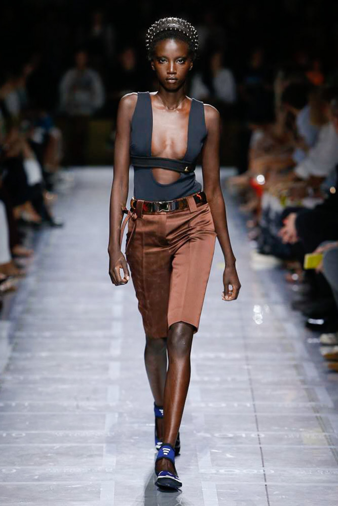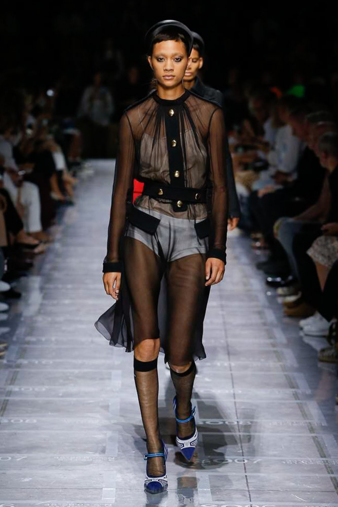 Брови-ниточки, которые в начале осени пропагандировал британский Vogue и Рианна на его обложке, —тоже не предел фэшн и бьюти-образов нового сезона. На показе Prada девушки ходили вовсе без бровей — зато со стрижкой и макияжем в стиле Твигги, вчера отметившей 69-летие. О возвращении во времена рассвета ее модельной карьеры также говорили юбки-колоколы, архитектурные жакеты и платья А-силэута. Миучча выбрала для них самый эффектный стайлинг — принтованными, почти кутюрными велосипедками.