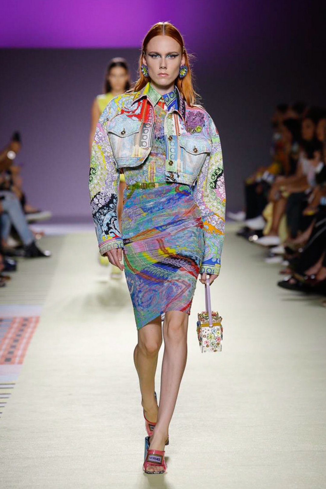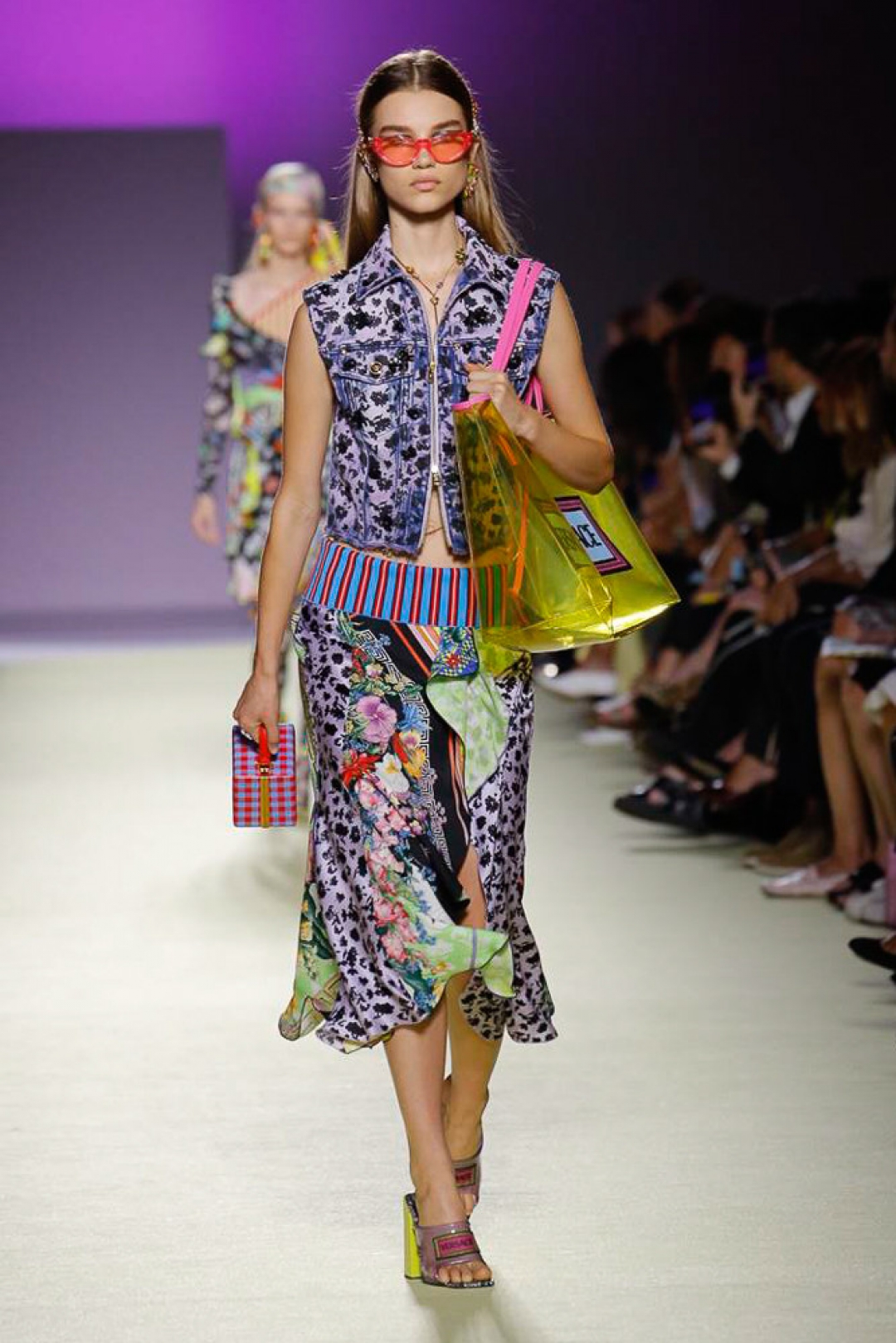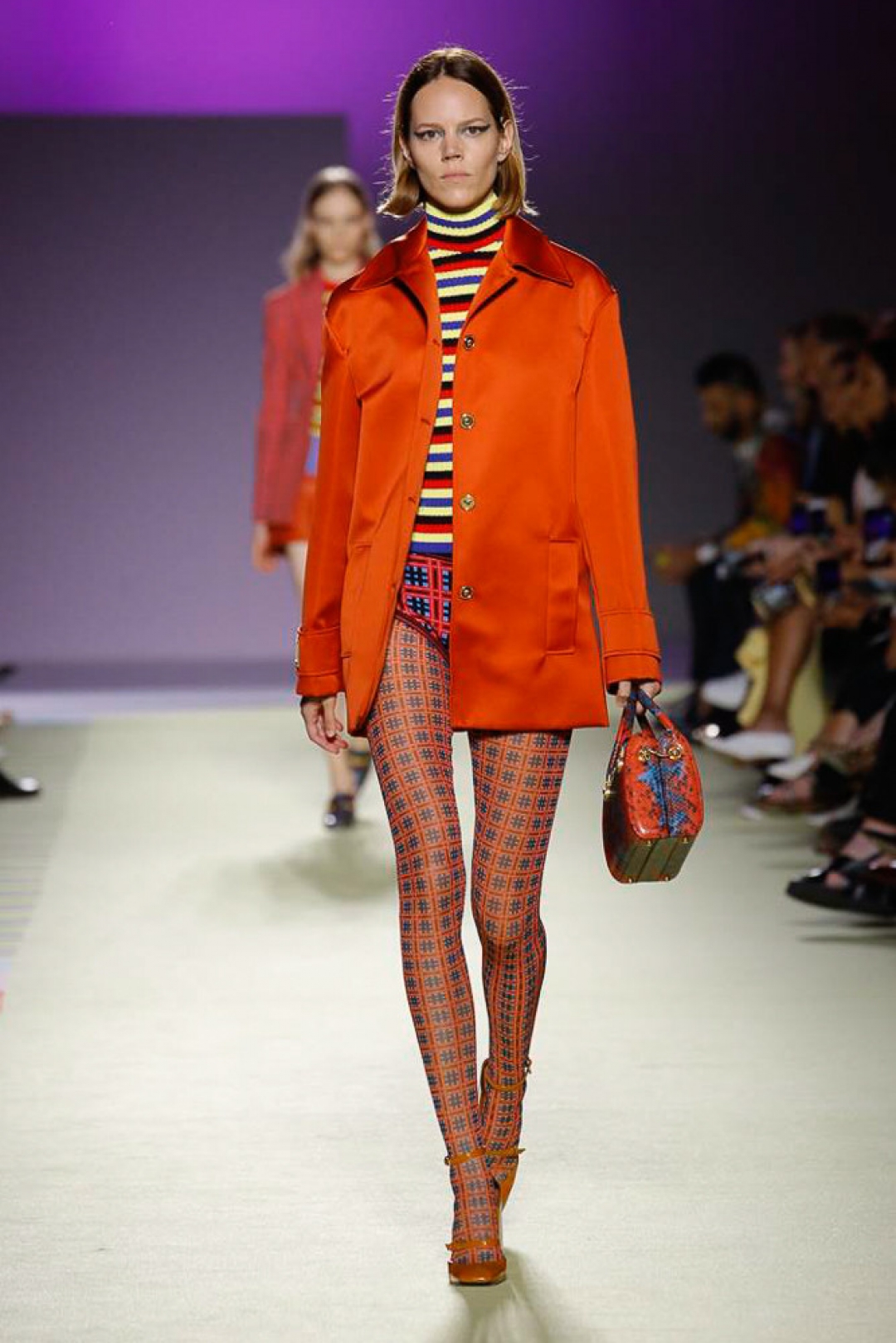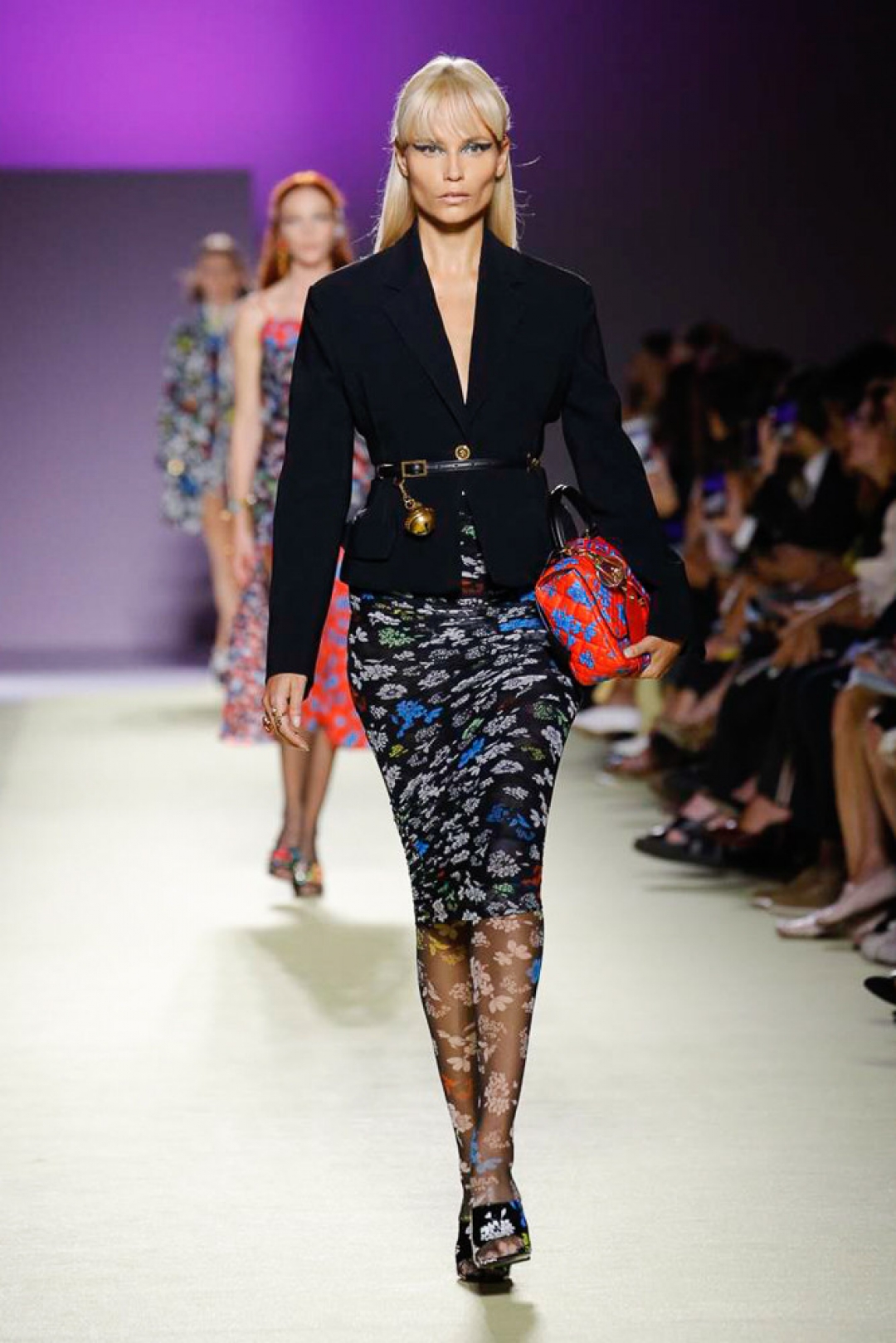 Маркетингом дело не ограничивается: Донателла перебирает архивы своего брата и делает вещи с отсылками к далекому прошлому. Но параллельно они обращены и в будущее: 60-е с костюмами из твида и шляпками-таблетками, 70-е с джинсовками «тай-дай» и фенечками вместо хороших часов, 80-е с неоновыми пати-платьями и 90-е с граженвыми тотал-блэк костюмами теперь стилизованы сумками с застежками-разетками, шлепанцами с силиковой перемычкой, гигантскими моносережками в цветок и аляпистыми (где-то чересчур) колготками.