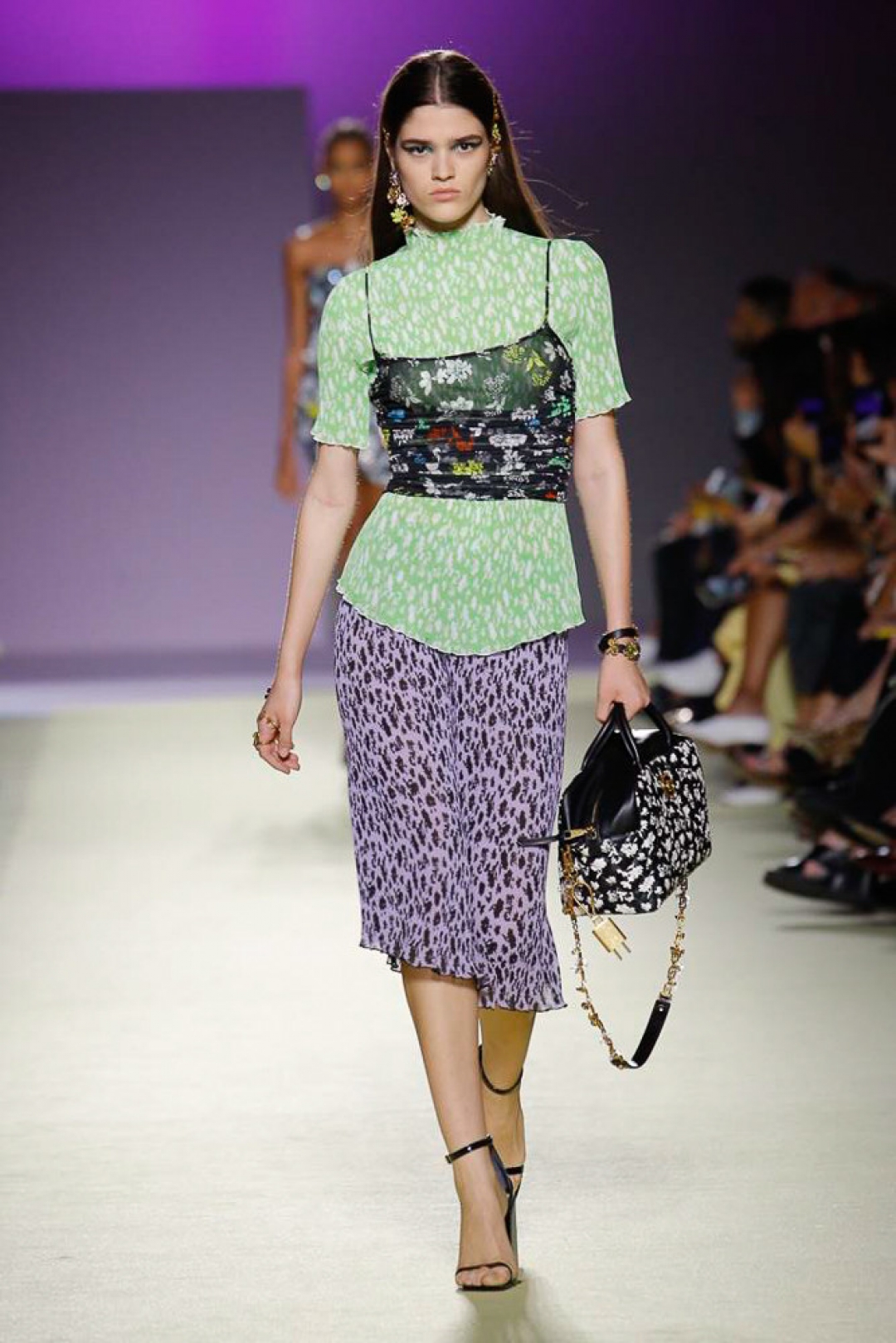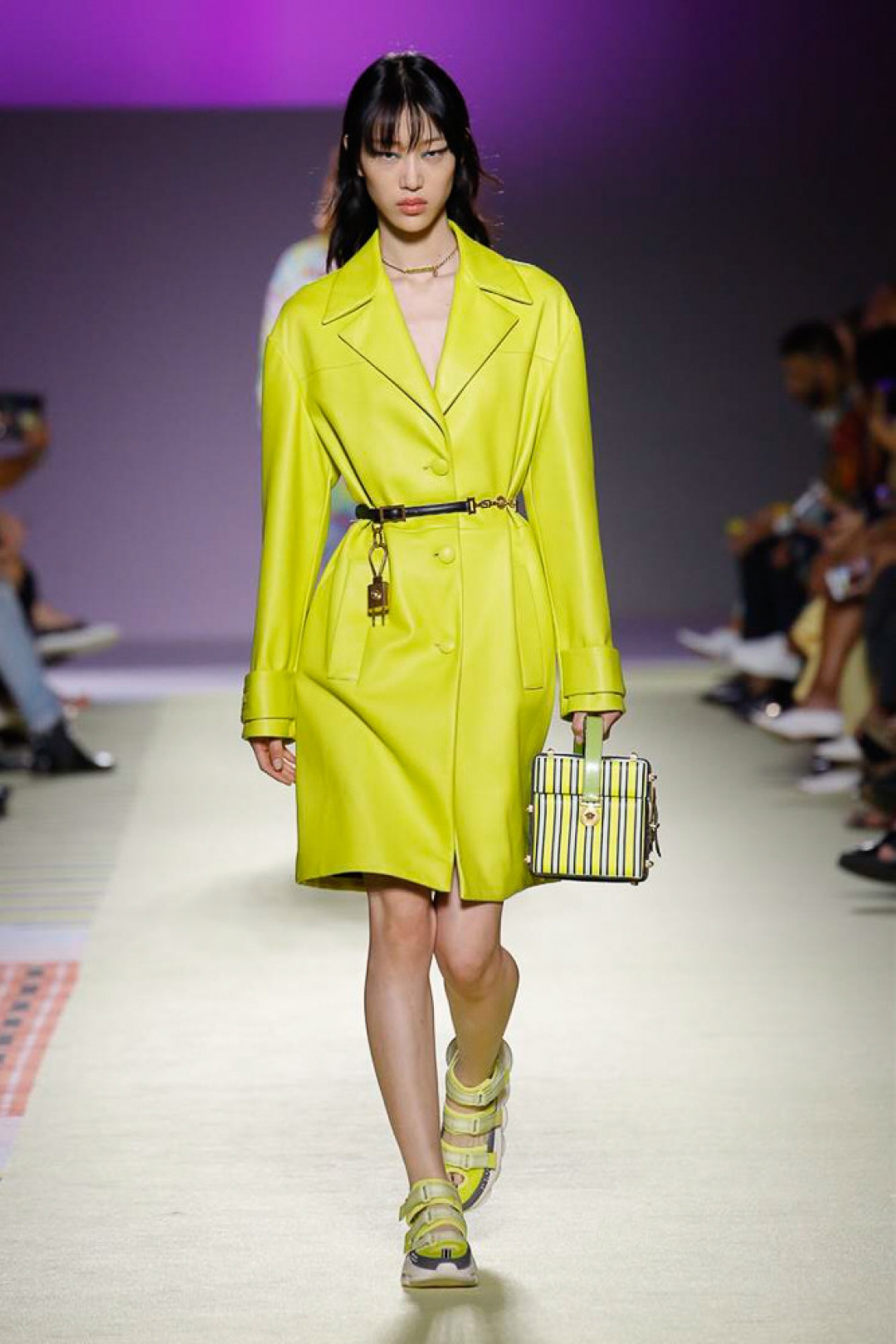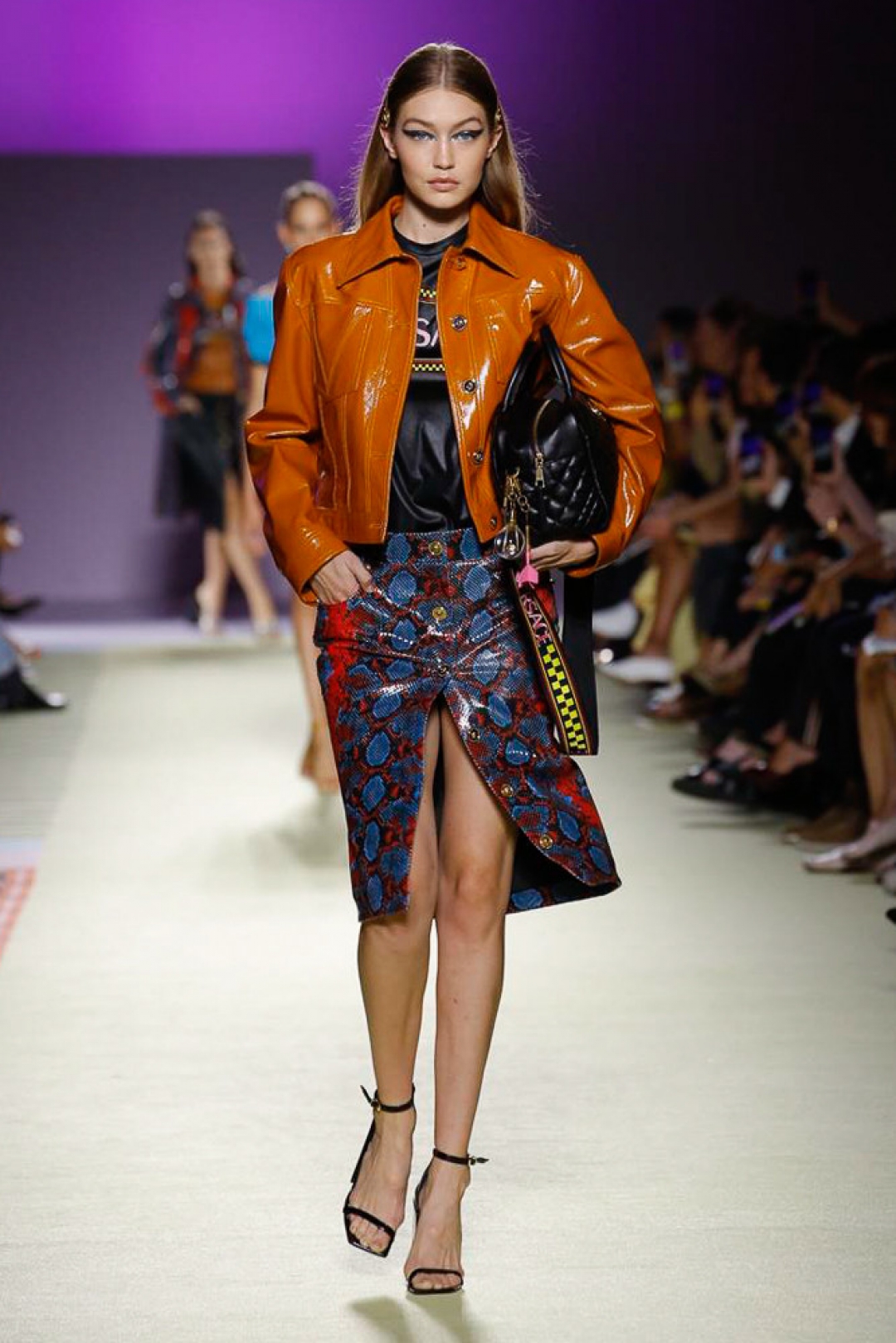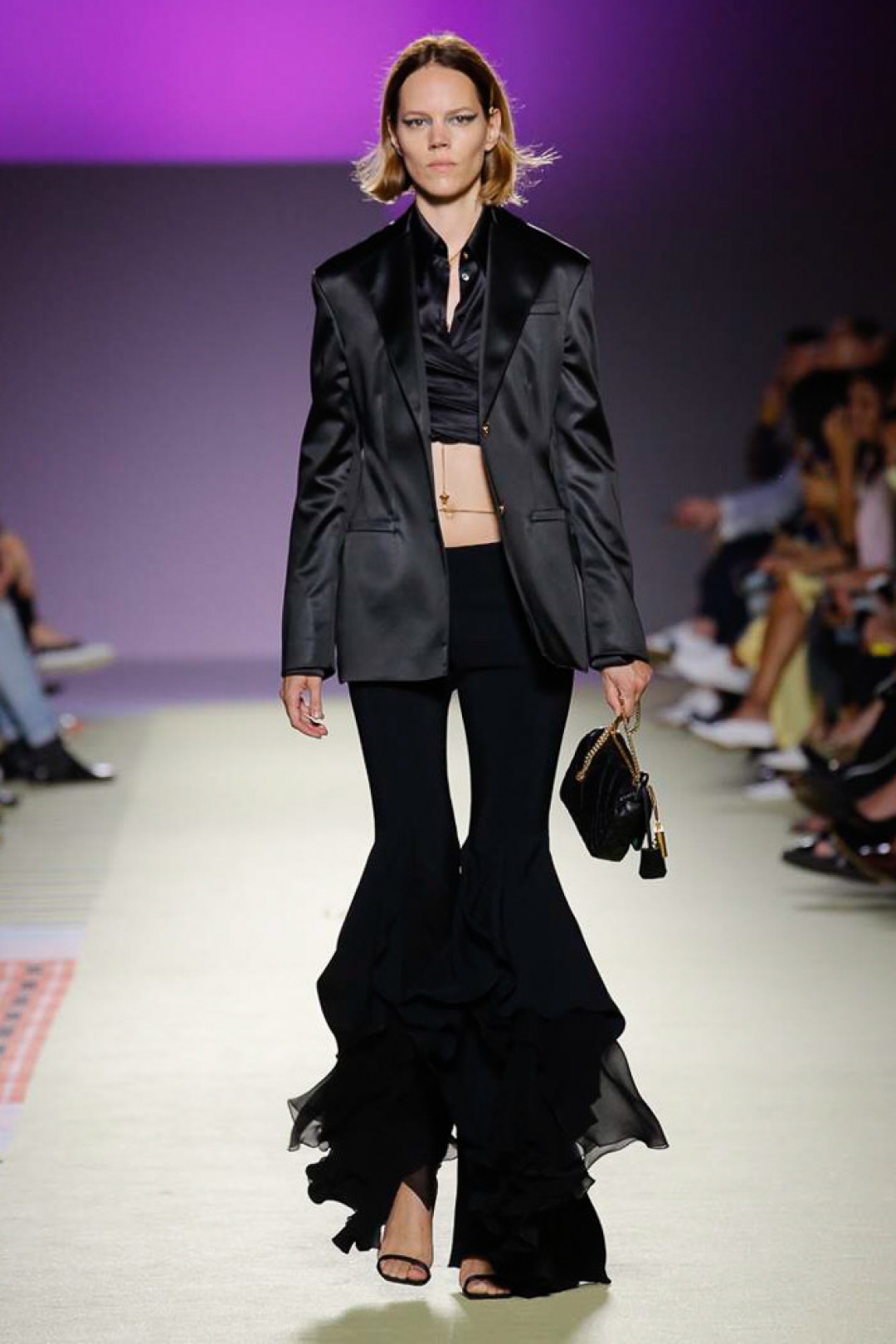 Маркетингом дело не ограничивается: Донателла перебирает архивы своего брата и делает вещи с отсылками к далекому прошлому. Но параллельно они обращены и в будущее: 60-е с костюмами из твида и шляпками-таблетками, 70-е с джинсовками «тай-дай» и фенечками вместо хороших часов, 80-е с неоновыми пати-платьями и 90-е с граженвыми тотал-блэк костюмами теперь стилизованы сумками с застежками-разетками, шлепанцами с силиковой перемычкой, гигантскими моносережками в цветок и аляпистыми (где-то чересчур) колготками.