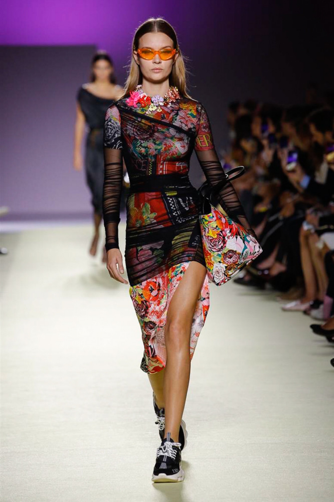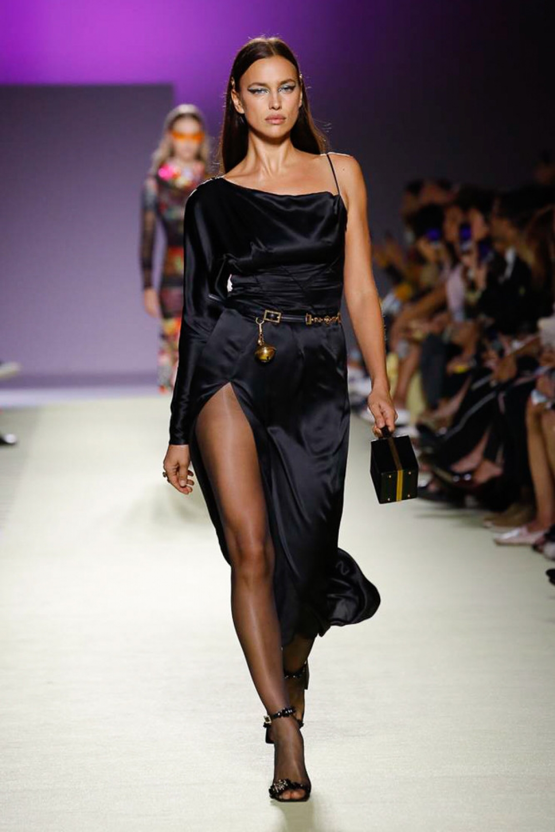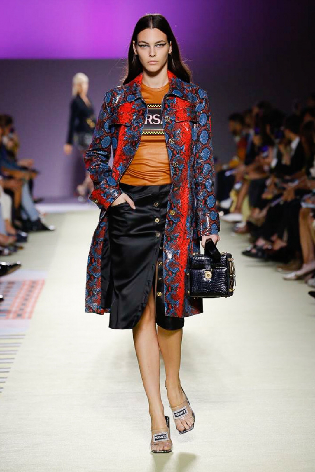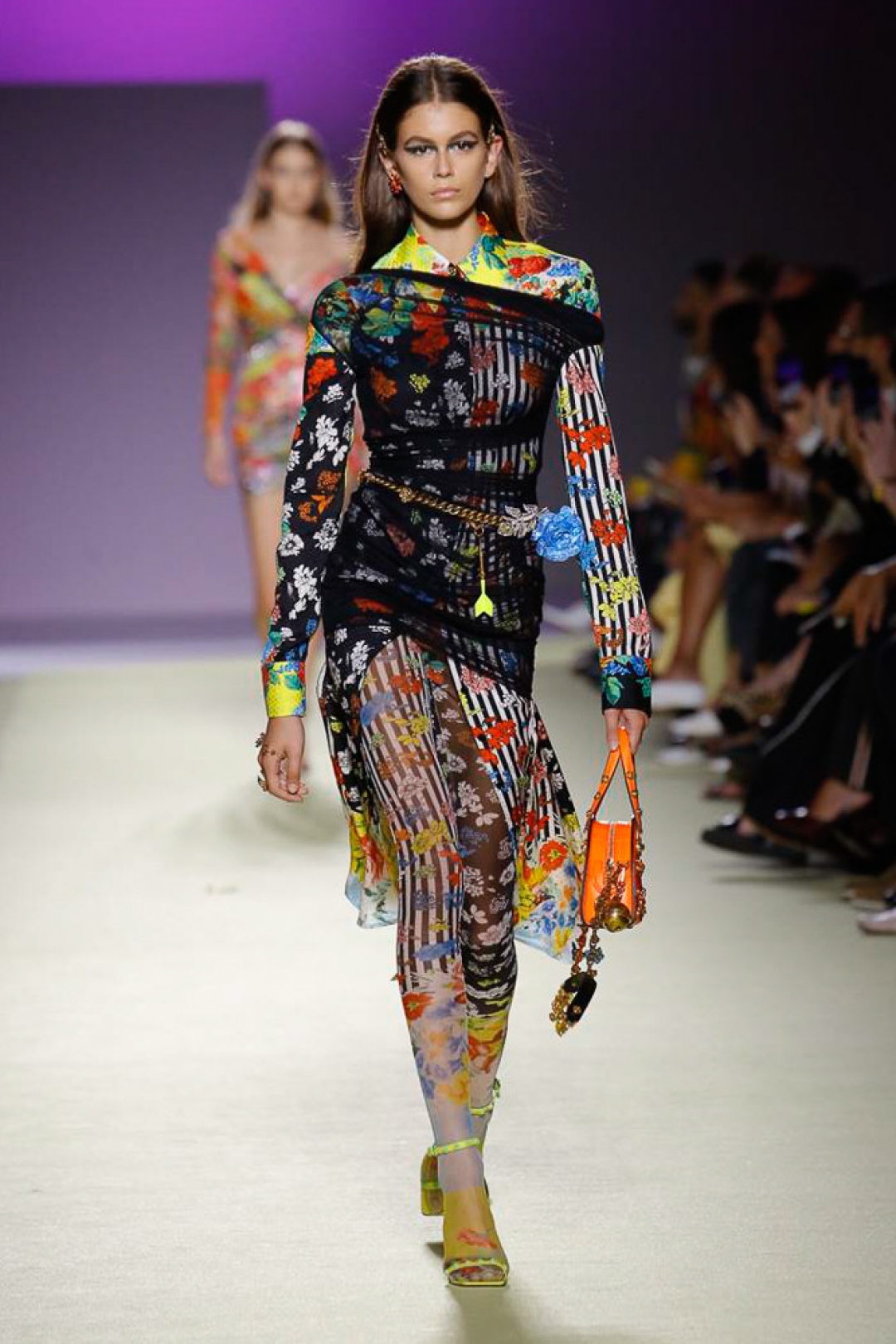 Маркетингом дело не ограничивается: Донателла перебирает архивы своего брата и делает вещи с отсылками к далекому прошлому. Но параллельно они обращены и в будущее: 60-е с костюмами из твида и шляпками-таблетками, 70-е с джинсовками «тай-дай» и фенечками вместо хороших часов, 80-е с неоновыми пати-платьями и 90-е с граженвыми тотал-блэк костюмами теперь стилизованы сумками с застежками-разетками, шлепанцами с силиковой перемычкой, гигантскими моносережками в цветок и аляпистыми (где-то чересчур) колготками.