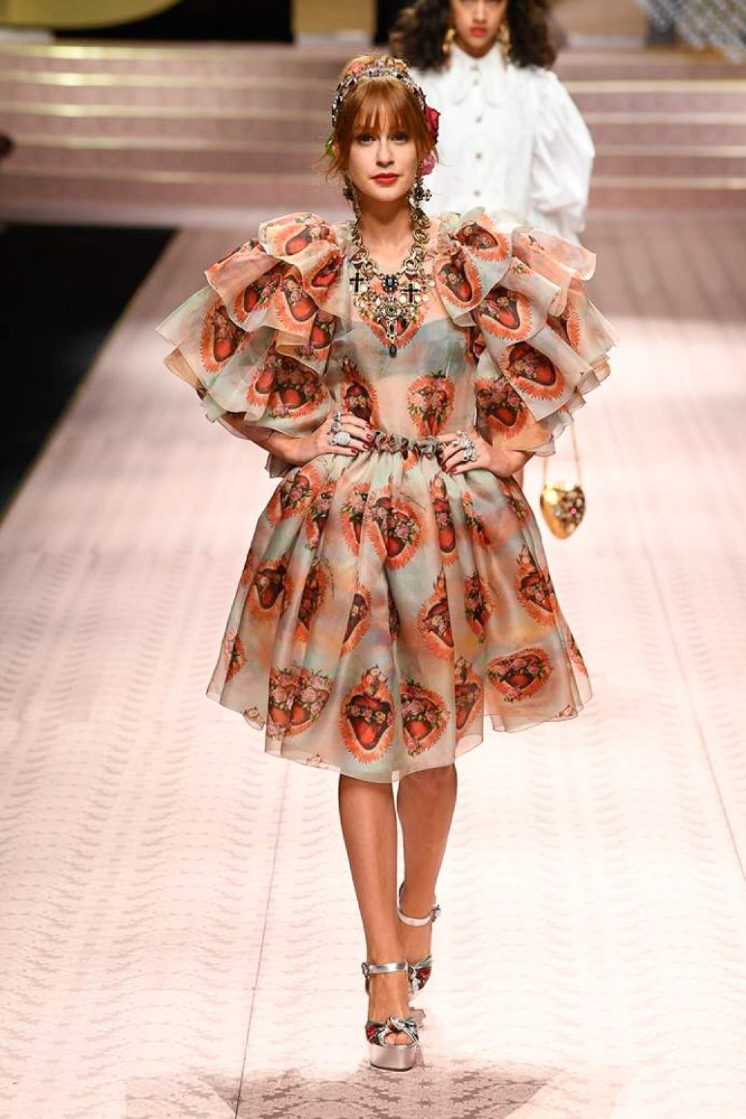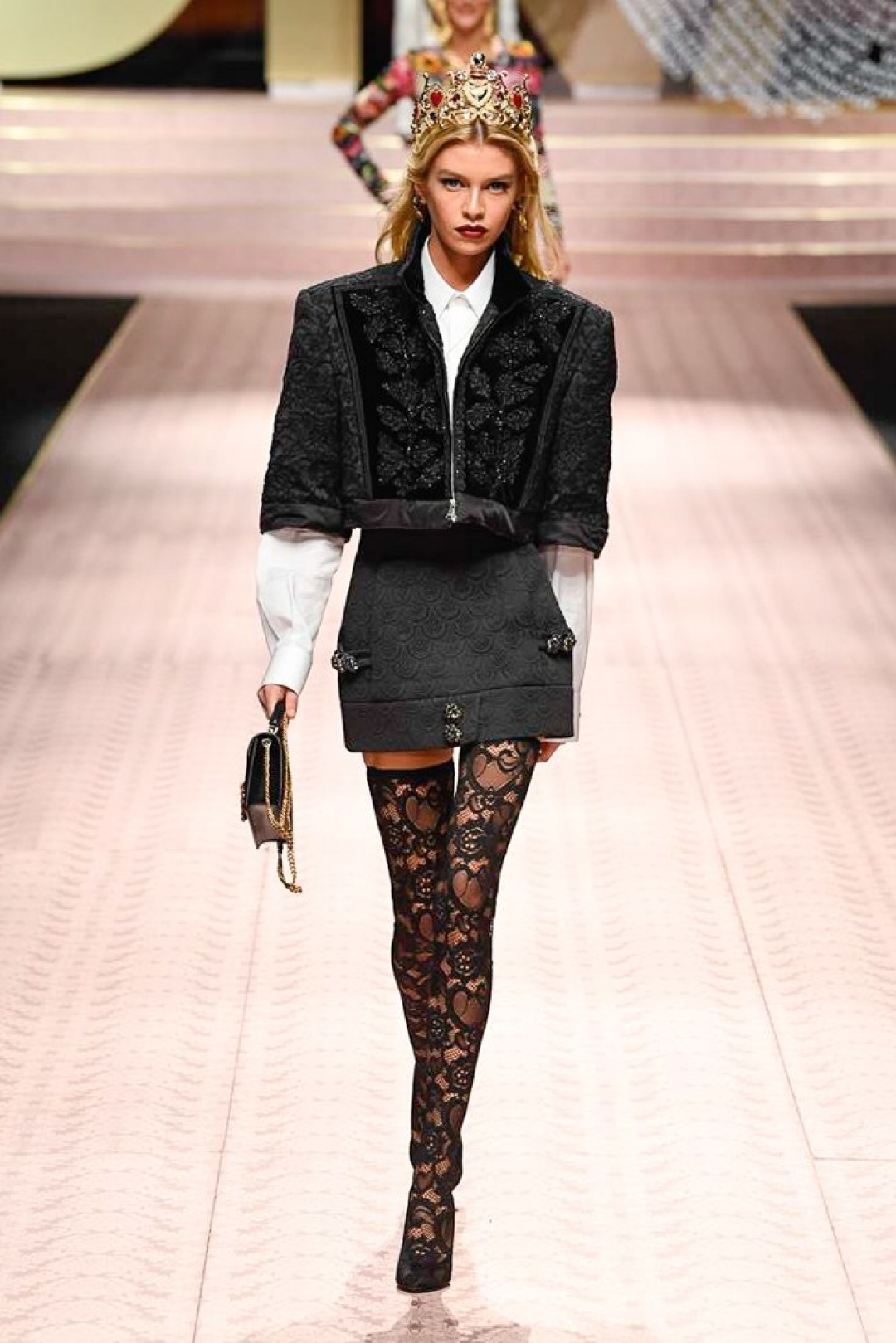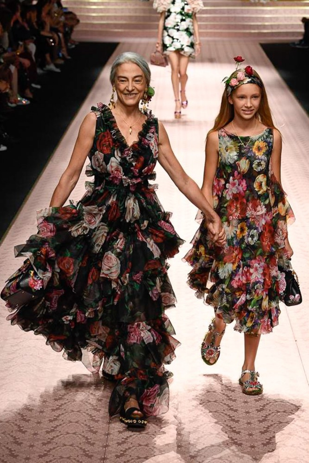 Прошедший показ Dolce & Gabbana напоминает прошлогоднее шоу Versace: в честь двадцатилетия карьеры Донателлы Версаче на подиум вышли пять супермоделей 90-х годов — Синди Кроуфорд, Наоми Кэмпбелл, Клаудиа Шиффер, Хелена Кристенсен и Карла Бруни. Теперь Хелена и Карла приняли участие в перфомансе Dolce & Gabbana, но уже в сопровождении других любимиц итальянской марки: Моники Беллуччи и Евы Герциговой, а также менее опытных моделей — Эмили Ратаковски, Леди Китти Спенсер и мамы Илона Маска, Майи.