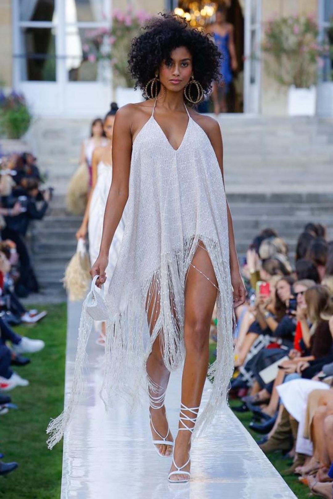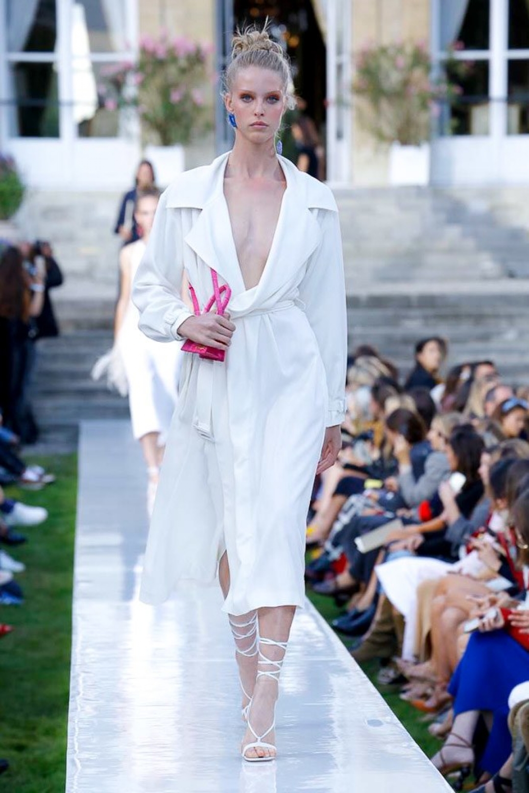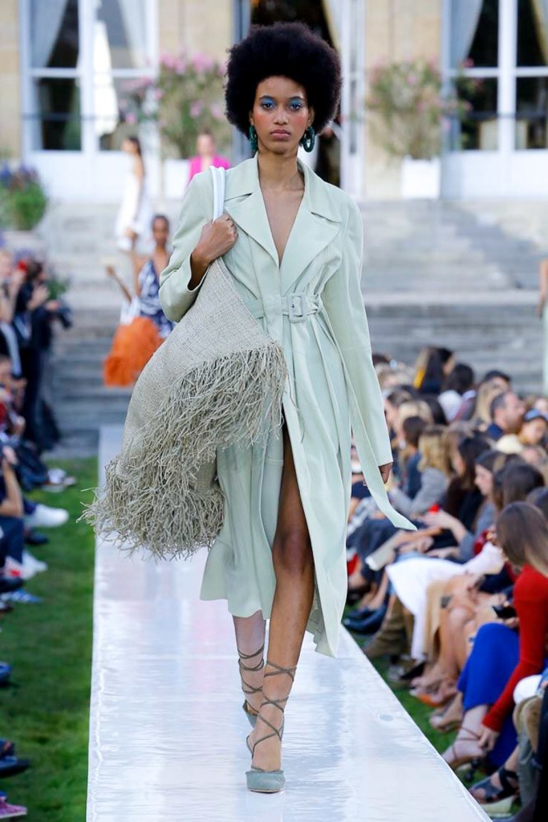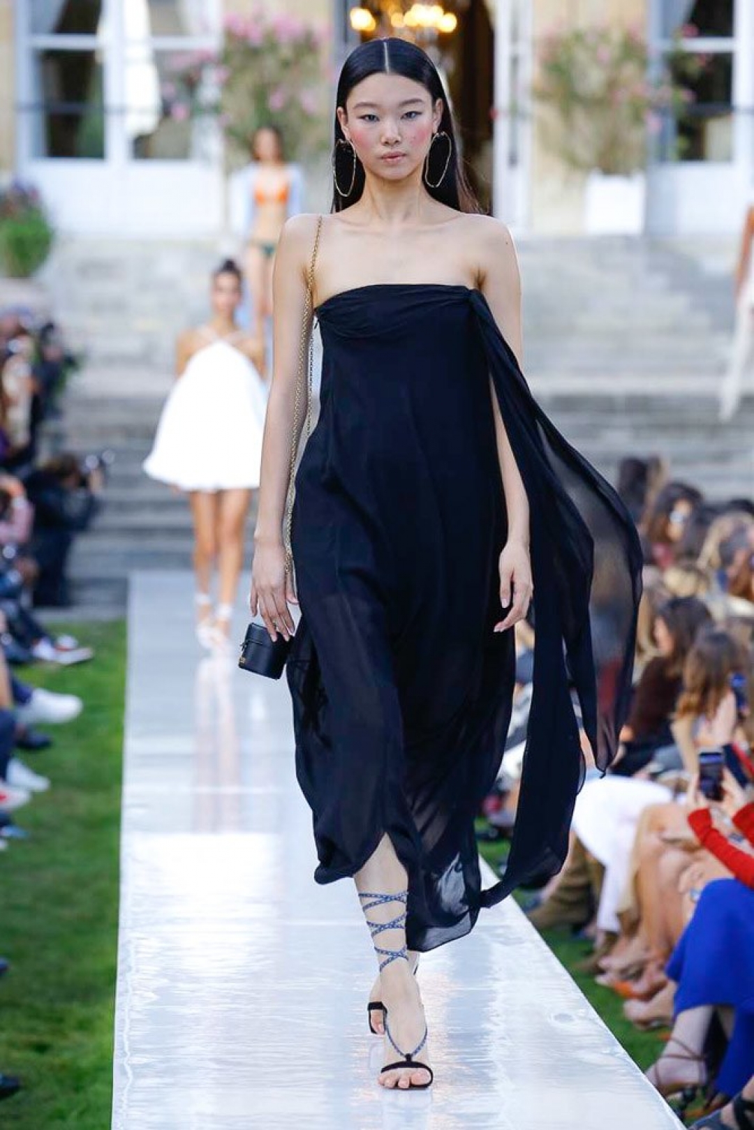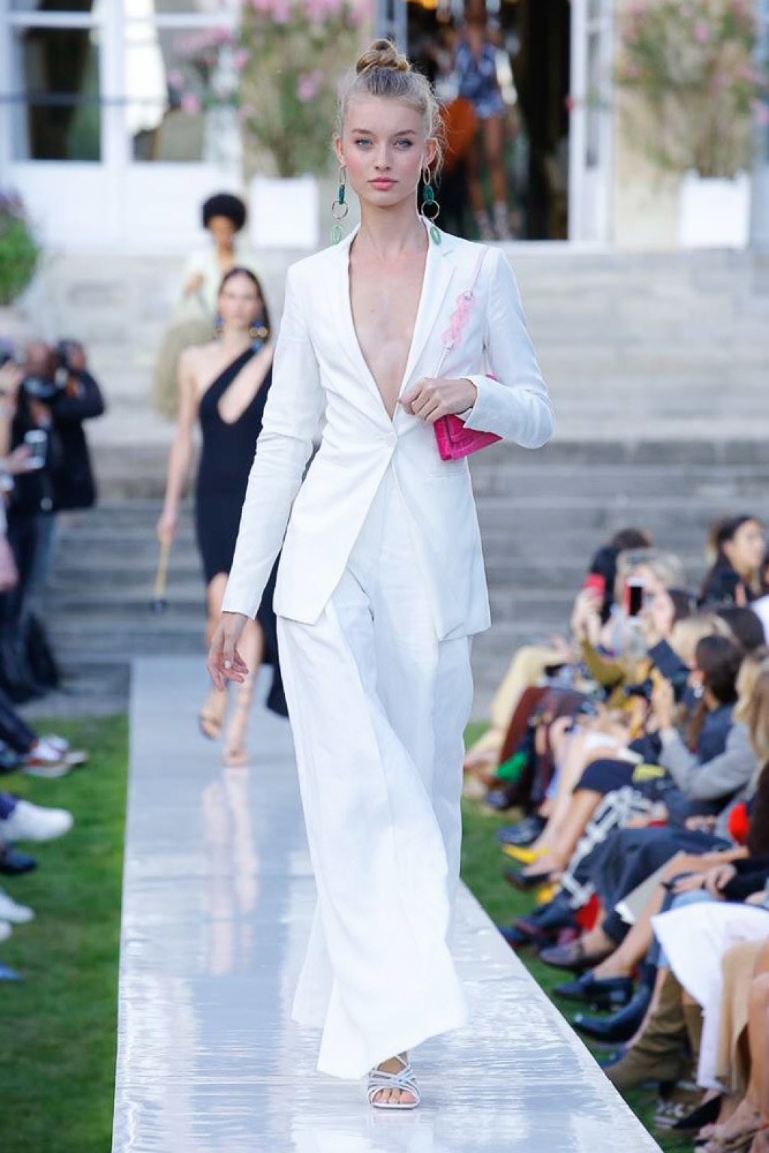 Весенне-летняя коллекция — воспоминания дизайнера о детства на юге Франции. «Я попытался визуализировать стильную женщину тех времен, — рассказывает Симон. — Она собирается пойти в казино на морском побережье, где будет танцевать и пить коктейли всю ночь». Это лучше делать в туфлях на брендированных круглых каблуках, которые повторяют гигантские моносерьги в образах и обещают стать бестселлером лета 2019-го. Мы уже записываемся в очередь за релизом, а заодно за билетами на французскую ривьеру.