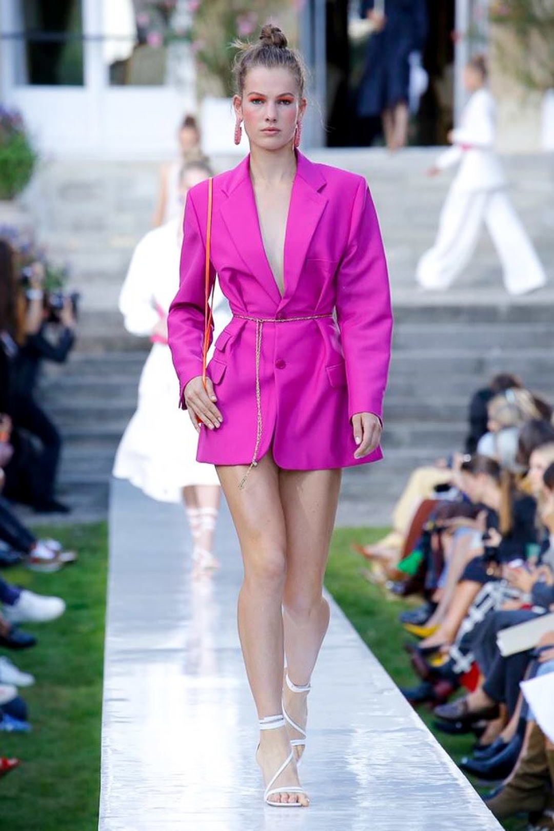 Новая коллекция Jacquemus называется La Riviera, но мы бы озаглавили ее Sex on the Beach. Топы в самых вызывающих традициях 2000-х, шорты, больше похожие на низ от купальника, платья, надетые на обнаженную грудь, и яркие сарафаны из полупрозрачных тканей. Ультрасексуальность образов Симон Порт Жакмюс уравновесил повседневными, авангардными и даже где-то даже хозяйственными аксессуарами: соломенные шопперы, гигантские сумки для пляжа и новая (поясная!) версия Chiquito — вот они, it-bags следующего сезона!