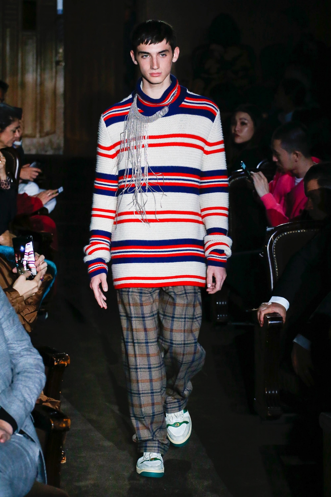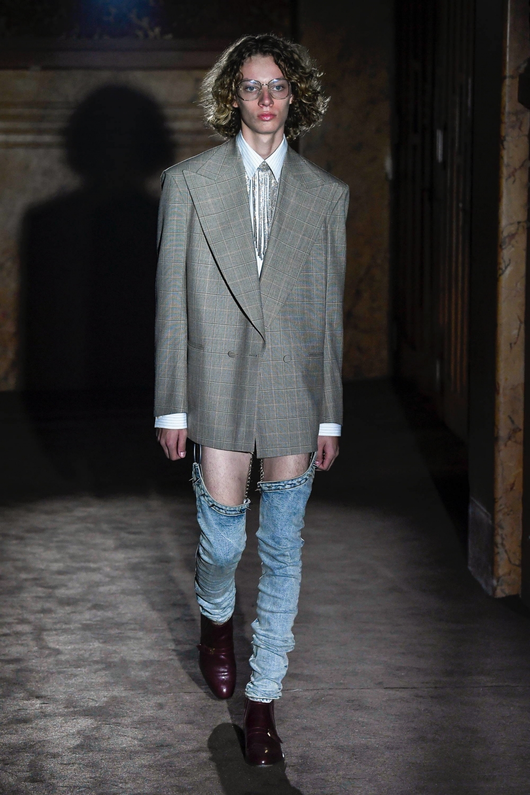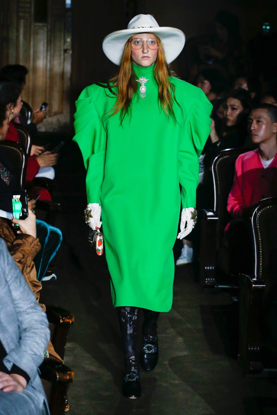 Уже второй сезон Gucci устраивают шоу за пределами Милана: круизную коллекцию Алессандро Микеле показывал на кладбище города Арль, где жил и работал Винсент Ван Гог, а весенне-летнюю — в парижском театре Le Palace, расположенном на улице Рю-дю-Фобур-Монмартр и ранее служившем ночным клубом. Несмотря на противоречивый выбор локации, в мудборде нового релиза — главные экспериментаторы итальянского театра 1970-80-х годов Лео де Берардинису и Перле Парагалло. Отсылки к их философии «театр как искусство коллективного сознания, ужаса и радости бытия» есть во взбалмошных платьях из мишуры, синтезе офисных брюк и блестящих жакетов, оранжевых боди в сочетании со «звездными» брюками и асимметричных театральных нарядах с боа.