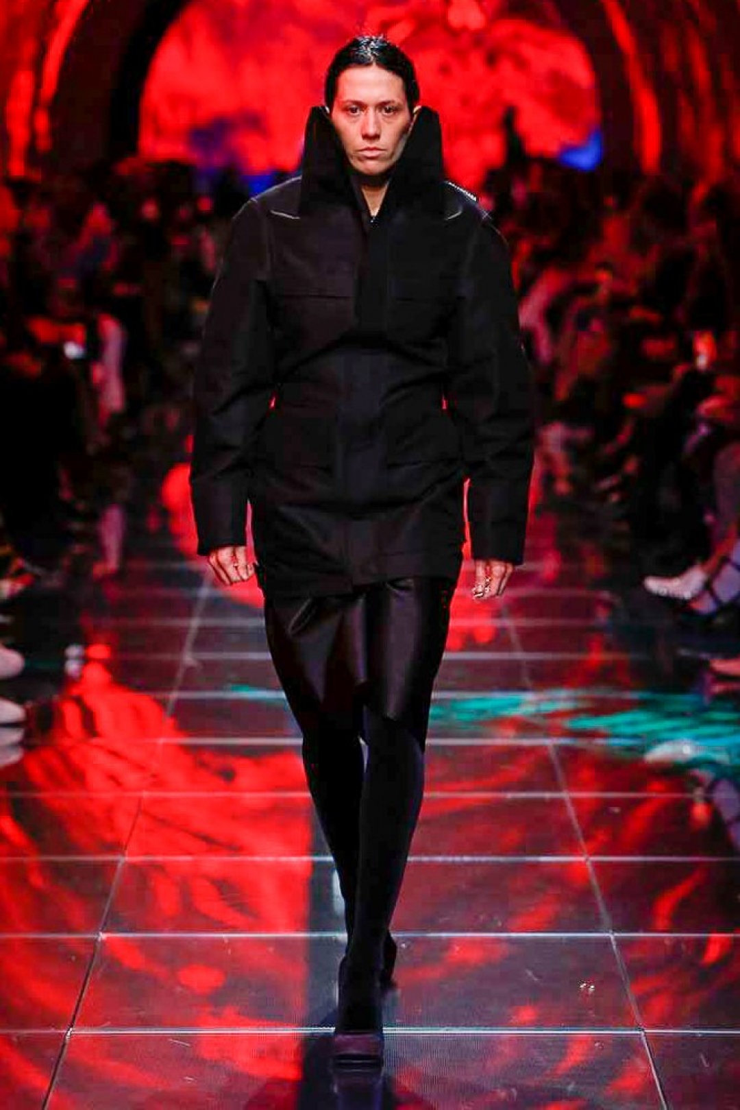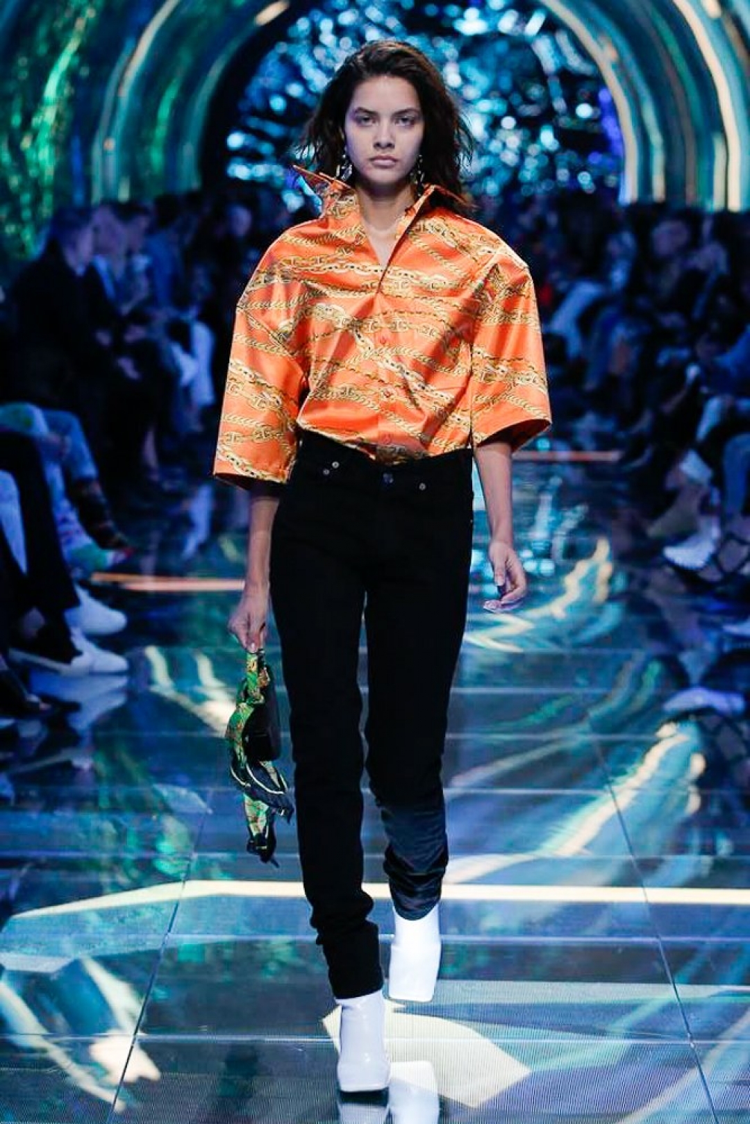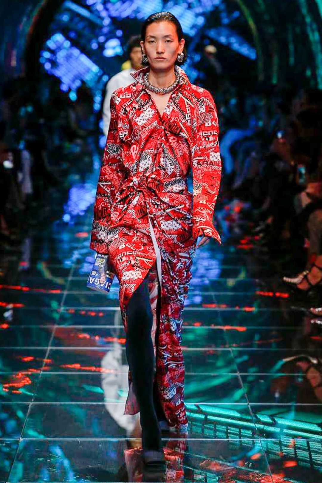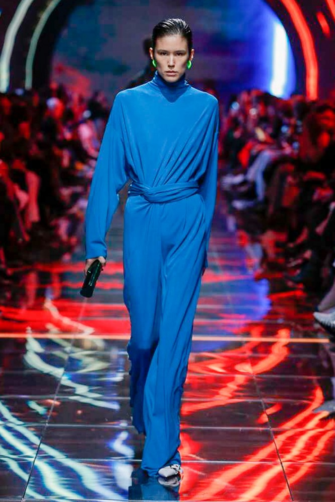 Хотя некоторые свои фишки Демна Гвасалия переносит из сезона в сезон — так, он продолжает делать «сувенирную» продукцию. В прошлых сезонах это были сумки с геолокацией и пейзажами Парижа, в следующем будут черные костюмы с вышитыми Эйфелевыми башнями. Все образы по-прежнему стилизованы крупными украшениями: «цепными» ожерельями или гигантскими серьгами-клипсами. А еще в большинстве выходов есть визуально деформирующие фигуру вещи — пальто с «феминистскими» плечами, рубашки с объемными рукавами, блузы с воротниками-стойками и драпированные платья.