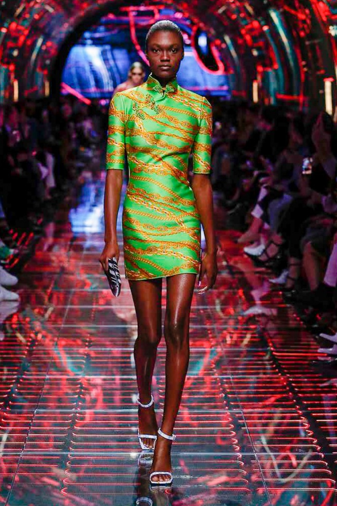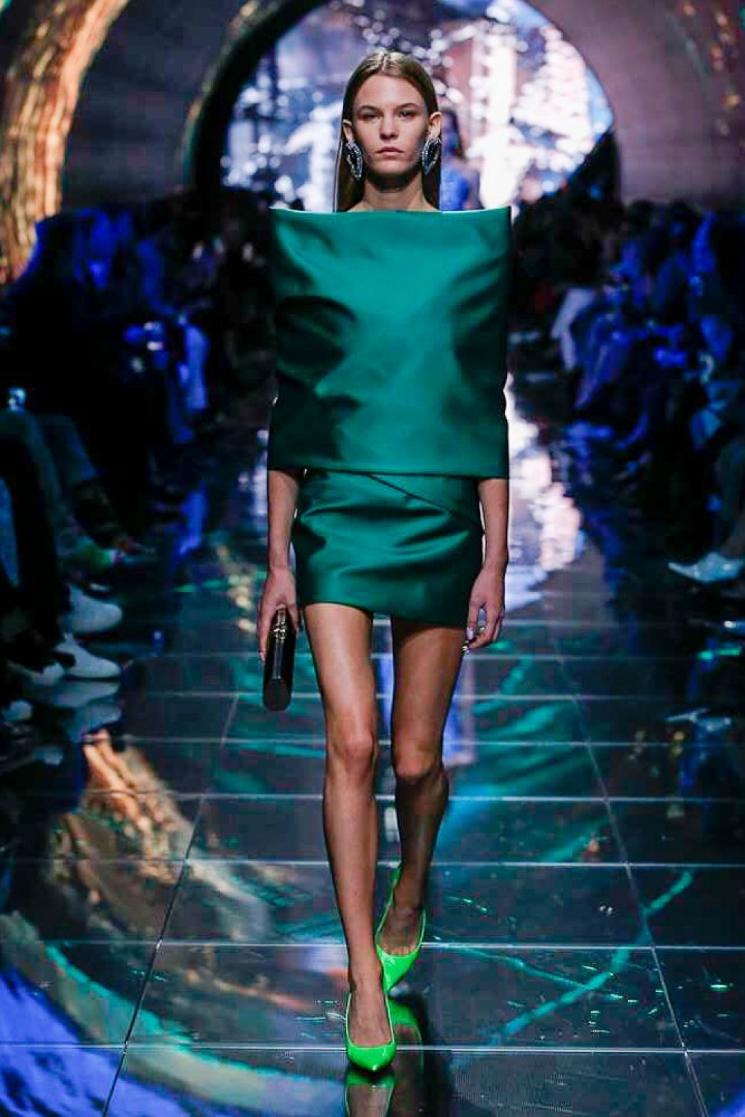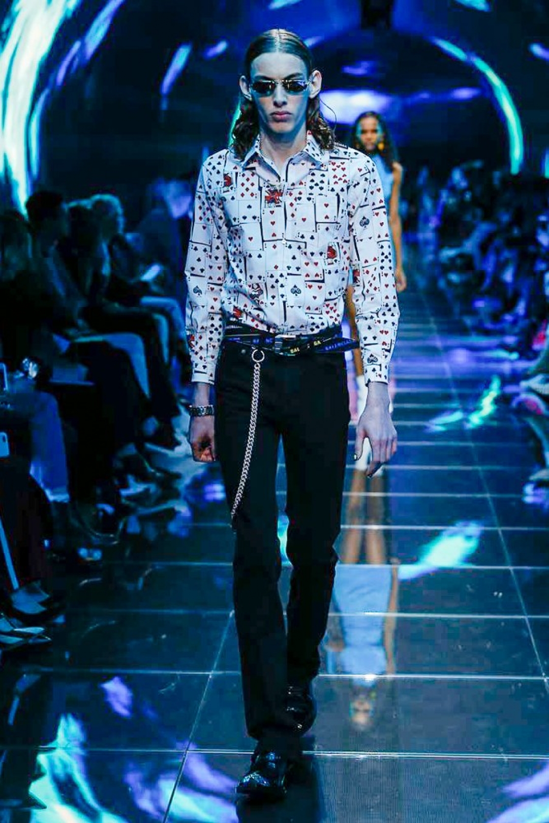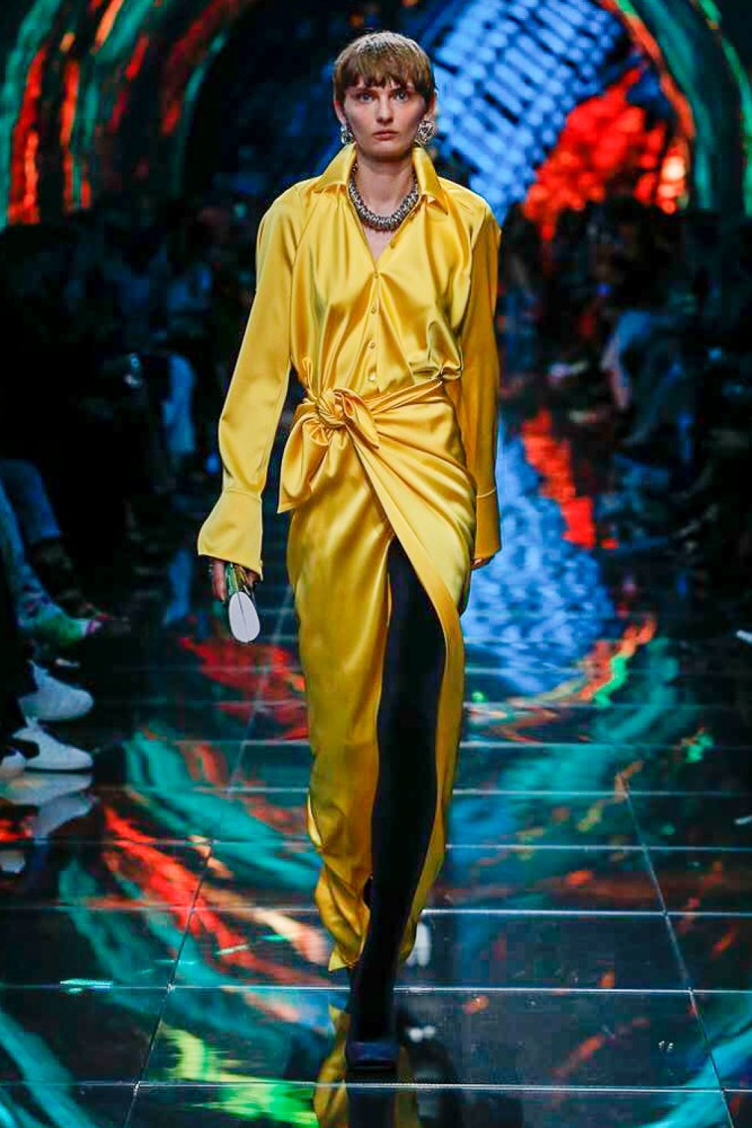 Хотя некоторые свои фишки Демна Гвасалия переносит из сезона в сезон — так, он продолжает делать «сувенирную» продукцию. В прошлых сезонах это были сумки с геолокацией и пейзажами Парижа, в следующем будут черные костюмы с вышитыми Эйфелевыми башнями. Все образы по-прежнему стилизованы крупными украшениями: «цепными» ожерельями или гигантскими серьгами-клипсами. А еще в большинстве выходов есть визуально деформирующие фигуру вещи — пальто с «феминистскими» плечами, рубашки с объемными рукавами, блузы с воротниками-стойками и драпированные платья.