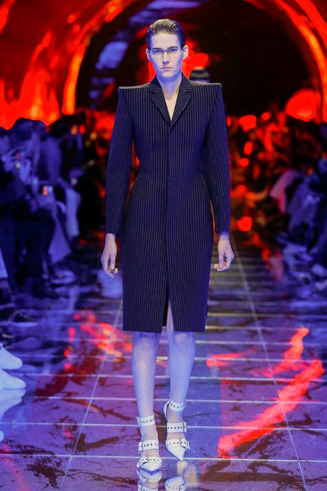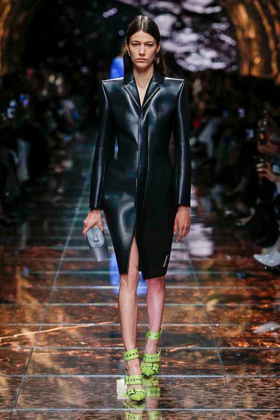 Тенденции, которые уже вырисовываются на следующий сезон, Демна использует очень аккуратно: платьев из платков, как у Burberry и Dries Van Noten, в его коллекции нет, зато кожаные ремни, которыми Alexander Wang оборачивал талию, а Saint Laurent — голову, вошли в декор остроносых туфель. Кажется, они снова перетягивают на себя внимание с кроссовок, особенно если носить их вместе с брендированными черными колготками (они у нового Balenciaga тоже появились!).