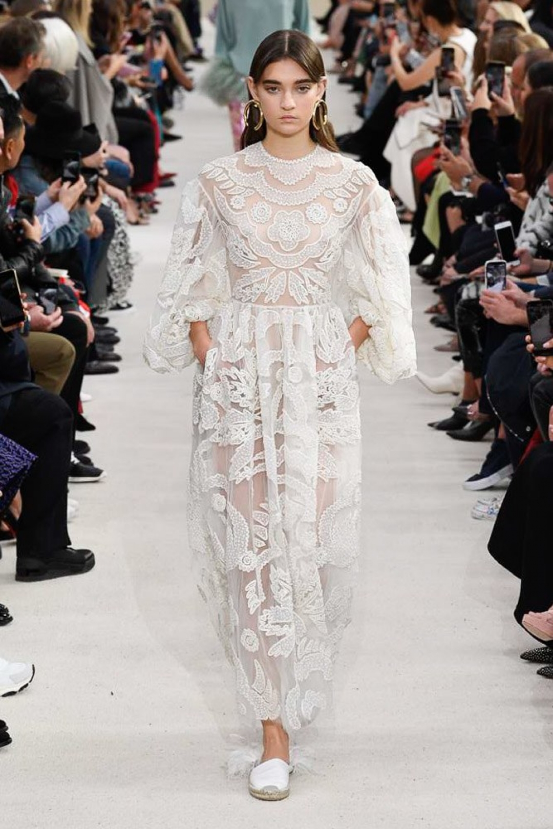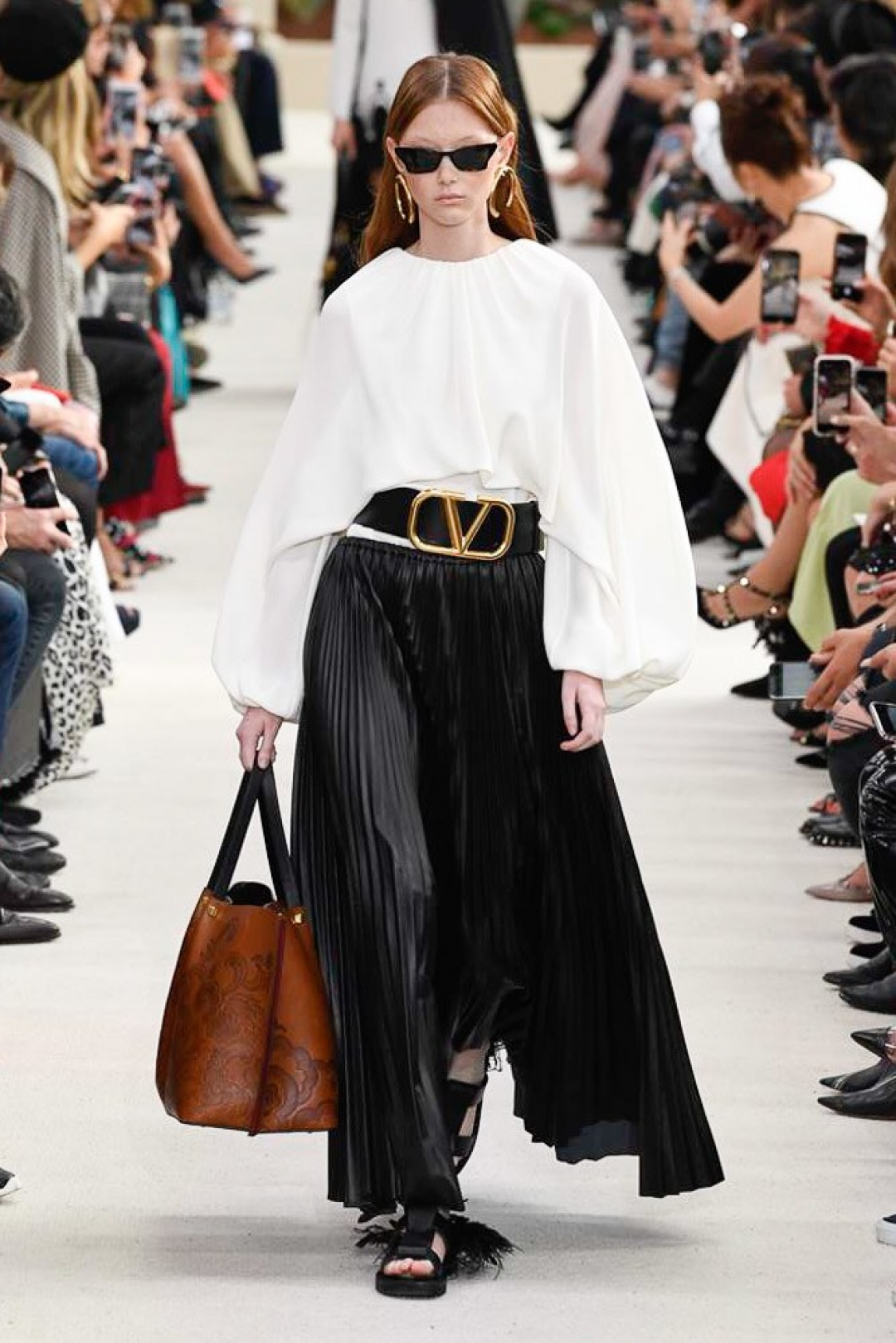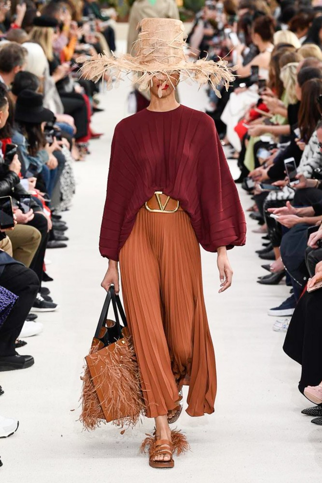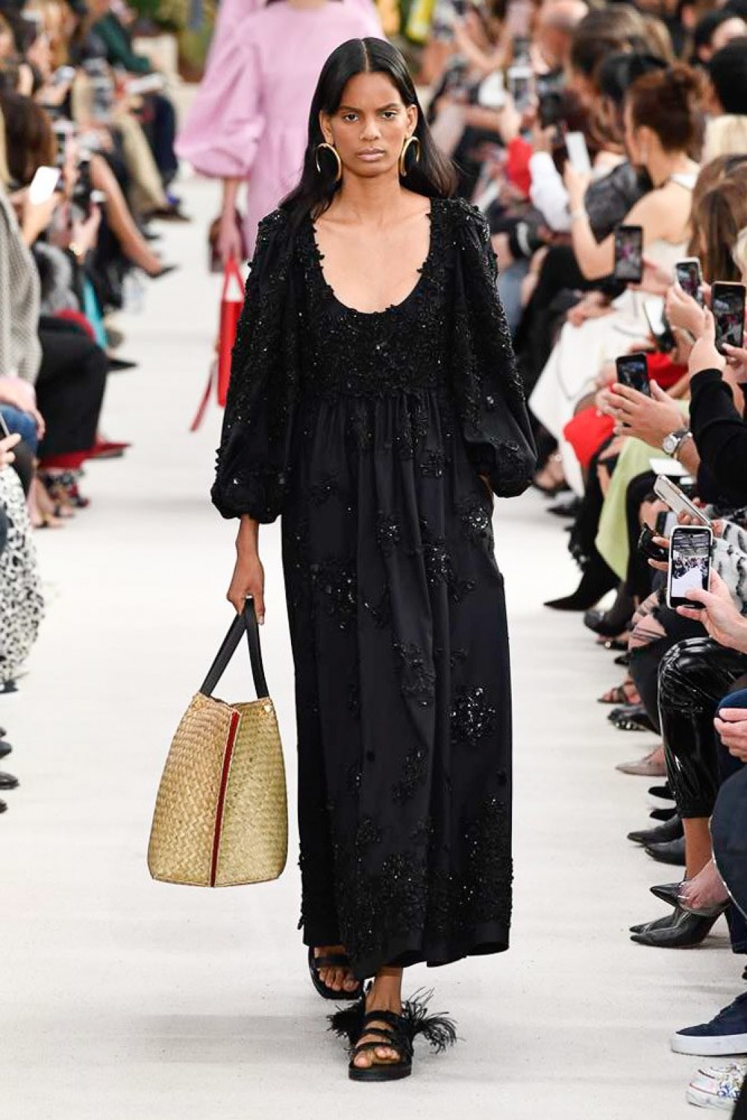 Новая коллекция Пьерпаоло Пиччоли для Valentino заставляет ждать следующего лета не столько из-за тепла, сколько из-за модных новинок: черных платьев с бахромой, надетых на голое тело, кружевных костюмов, стилизованных гигантскими серьгами-кольцами, и оверсайзовых блуз, дополненных соломенной шляпой еще более экстравагантной, чем у Jacquemus.