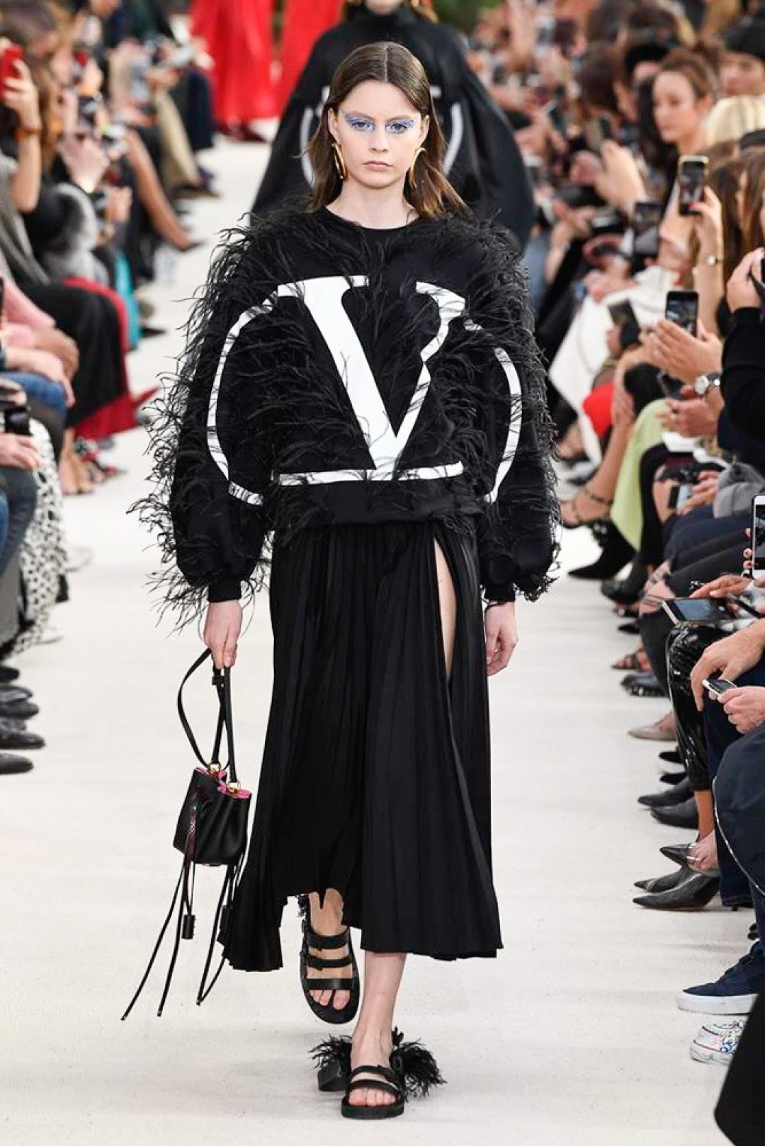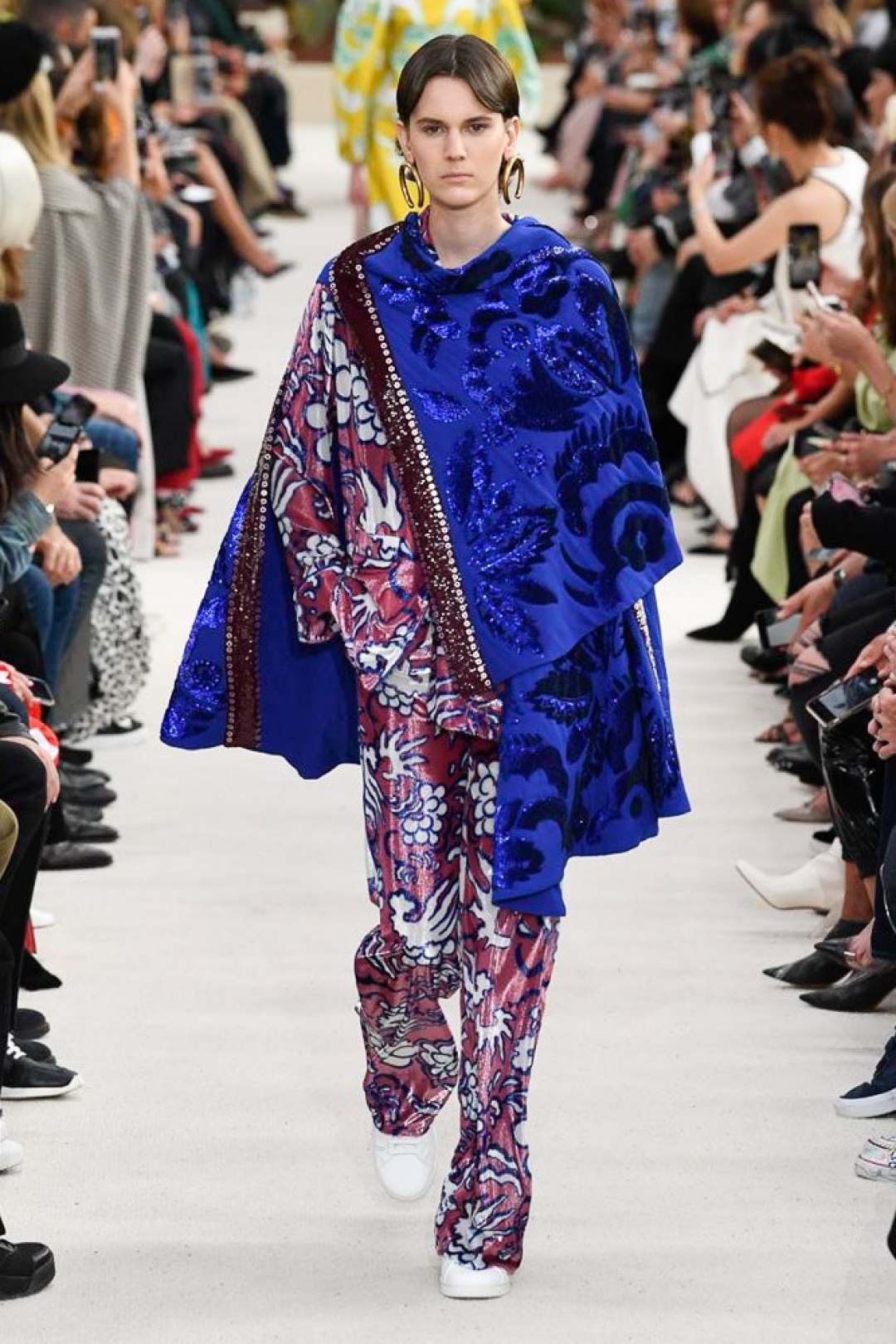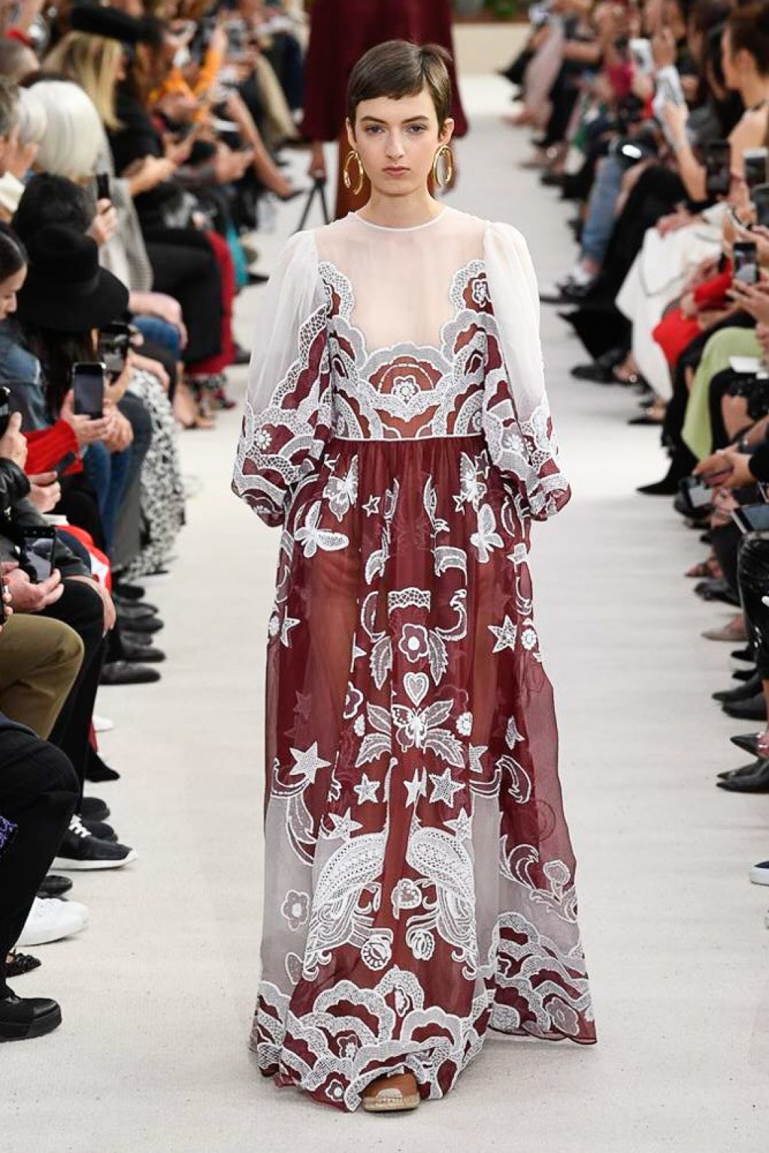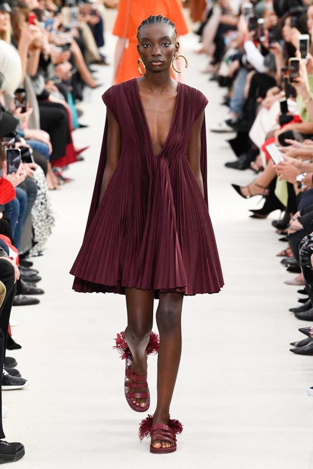 Новая коллекция Пьерпаоло Пиччоли для Valentino заставляет ждать следующего лета не столько из-за тепла, сколько из-за модных новинок: черных платьев с бахромой, надетых на голое тело, кружевных костюмов, стилизованных гигантскими серьгами-кольцами, и оверсайзовых блуз, дополненных соломенной шляпой еще более экстравагантной, чем у Jacquemus.