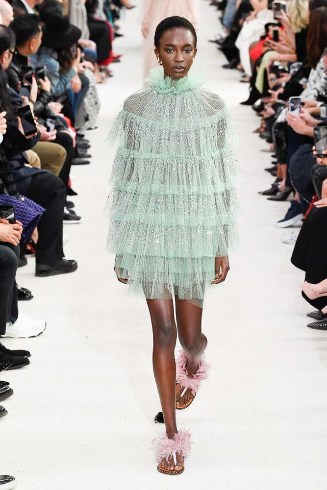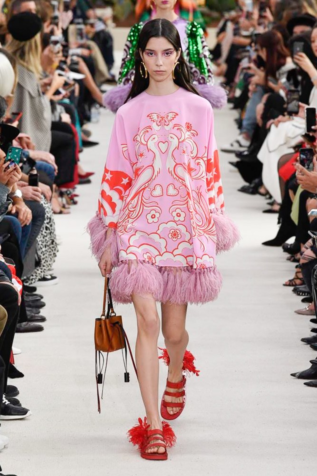 Тем не менее парижский показ делился на части не по атмосфере нарядов, а по их цветам и принтам: начав с черных вечерних платьев (между прочим, идеальных для Петербурга!) и продолжив красными (ключевыми для ДНК бренда) сарафанами, Пиччоли завершил шоу сине-желто-голубыми выходами из пайеток, страз и перьев. Уверены, большинство из них уже скоро появятся на красной дорожке — например, на новых любимицах Valentino: Тэнди Ньютон, Леди Гаге и Эмберд Херд.
