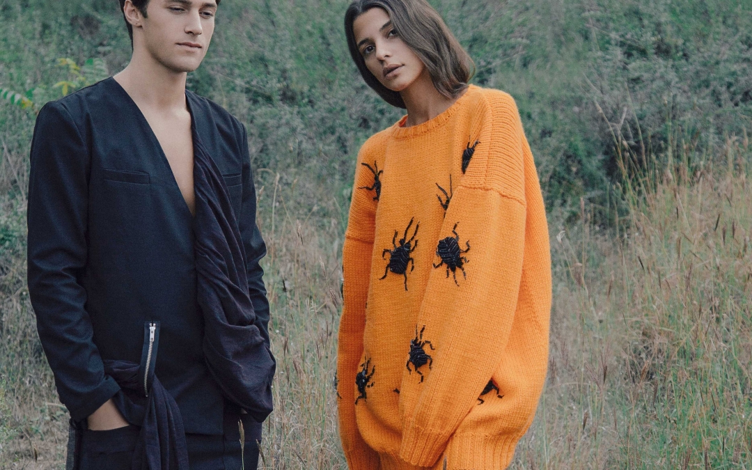Познакомившись на грузинском конкурсе Benext Fashion Design Contest, дизайнеры Анка Одишелидзе и Ани Цинцкиладзе объединись сначала для коллаборации, а после и для общего бренда BLIKVANGER. В основной коллекции — выходные платья, спортивные костюмы и дутые пуховики, которые, по словам девушек, в Грузии очень хорошо продаются. В капсульных релизах — авангардная обувь, сюрреалистичные кардиганы и вязаные свитеры стоимостью до 400 долларов. «Мы вяжем их вручную в течение нескольких дней, а также украшаем брошами в виде насекомых, — рассказывает Ани. — Каждый сезон это то мухи, то пауки, то жуки — главное, чтобы они цепляли взгляд окружающих».