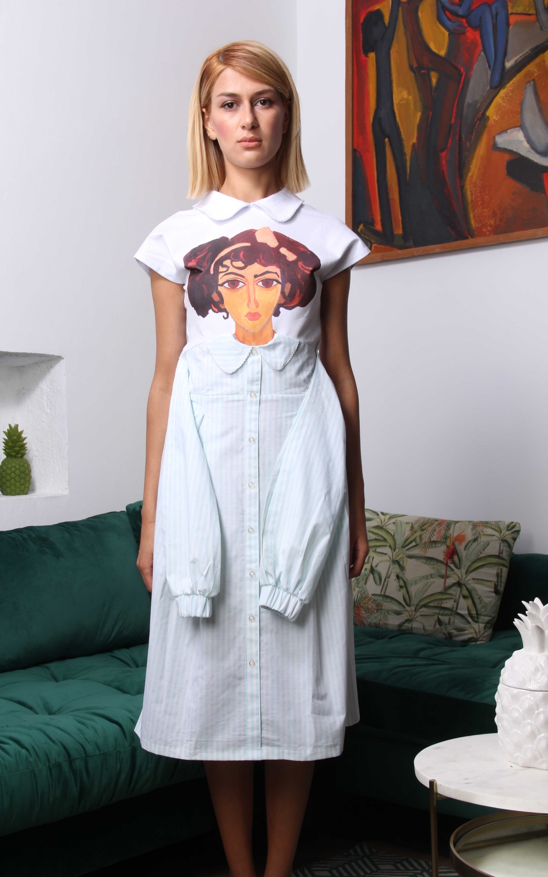 В одежде Вагана все гармонично: casual-коллекцию, представленную на Pitti Super, он сделал по мотивам дедушкиных картин. На платьях, рубашках и удлиненных жилетах разместились портреты бабушки, мамы и тети дизайнера, а отдельные элементы с полотен — глаза и фоновые узоры — превратились в фурнитуру и красочные принты. «По таким деталям меня и знают в Армении, — рассказывает Ваган. — Кто-то придерживается минимализма, кто-то — эстетики вечного праздника, а я люблю соединять фирменные силуэты и дорогие сердцу картинки».