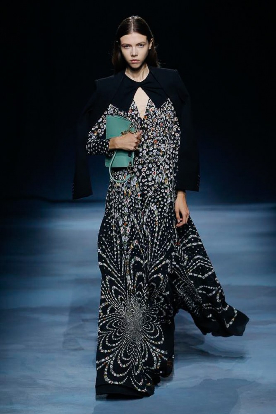 Во многом на изменение кодов бренда повлияла статусная клиентка в лице Меган Маркл: Клэр прикладывает руку почти ко всем ее образам в роли герцогини Сассекской. Закрытые платья «политической» длины и показанные пиджаки, надетые в следующий раз не на голое тело, а на рубашку, мы в будущем видим как раз на Маркл. В то время как розовые «разлетайки», комплекты с пайеточным верхом и наряды-кольчуги из финальных выходов визуально примеряем на Кейт Бланшетт, Руни Мару и Джулианну Мур.