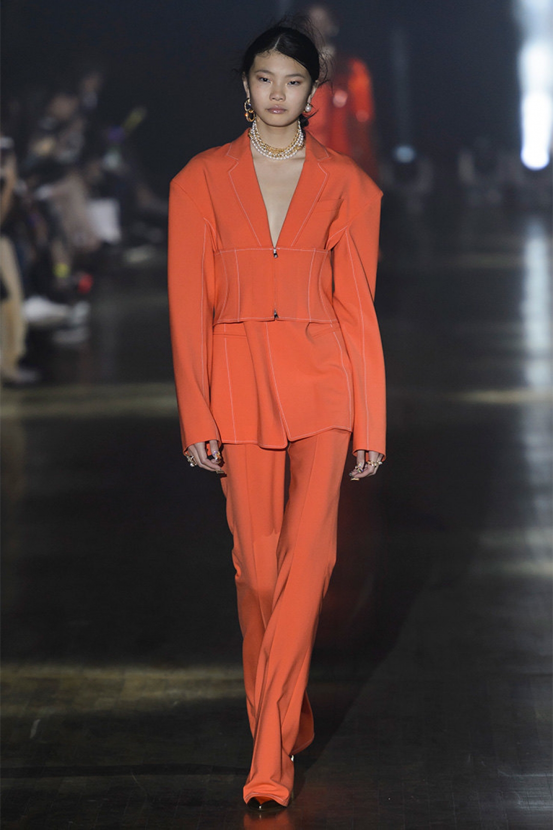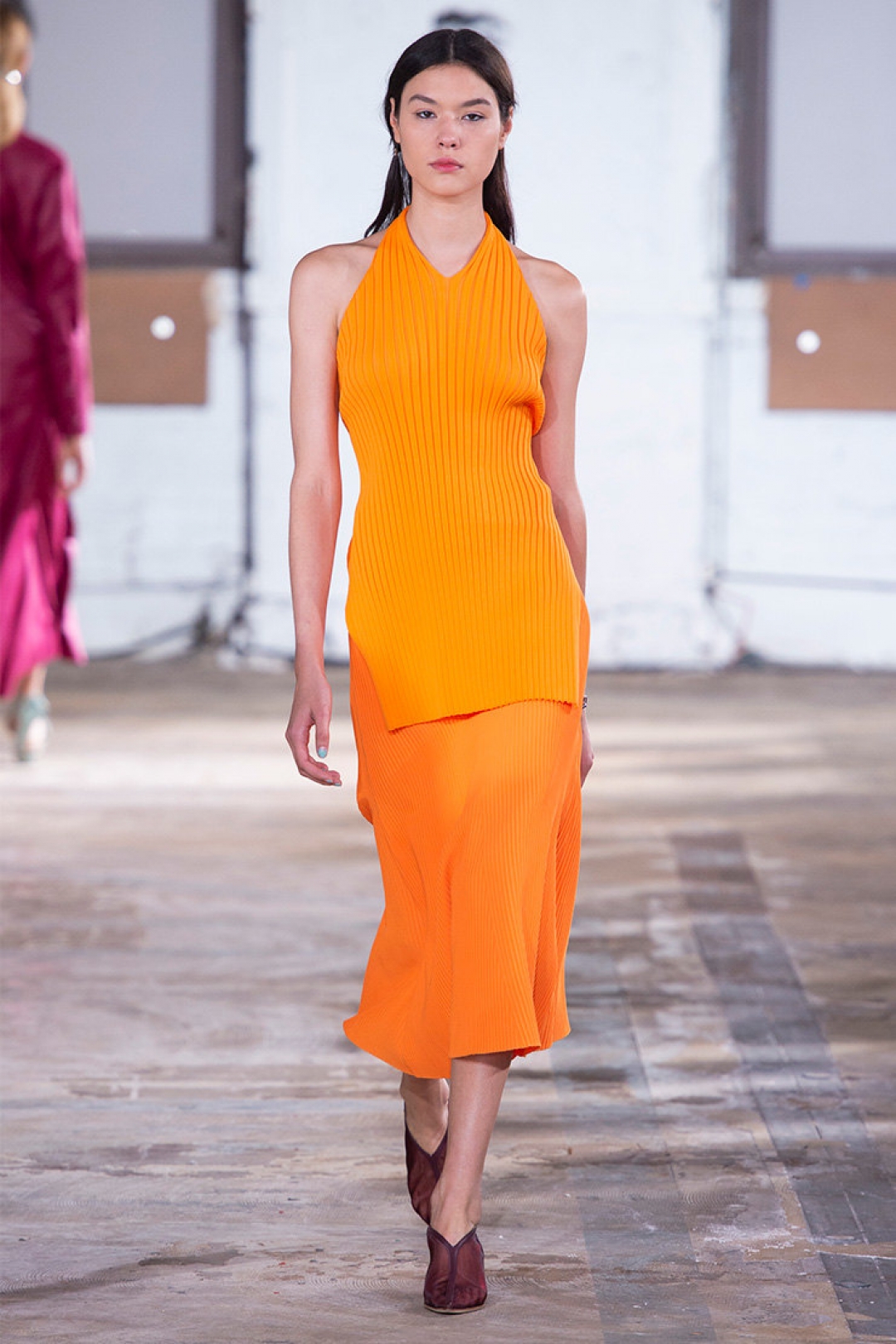 Красный гренадин, который был популярен в прошлом году, поблек: теперь его место в шкафу занял оранжевый. И чтобы не делать клиенток похожими на героинь сериала Дженджи Коэна, дизайнеры окрашивают в яркий цвет интеллигентные костюмы, консервативные платья и топы из трикотажа.