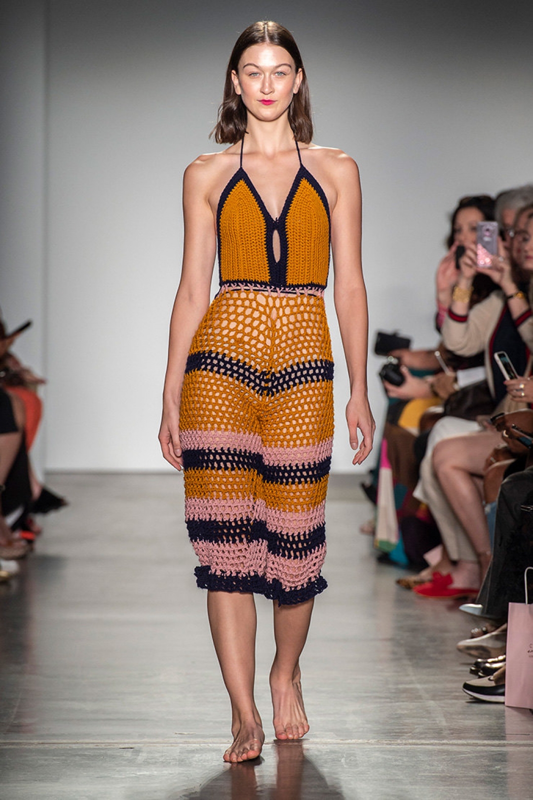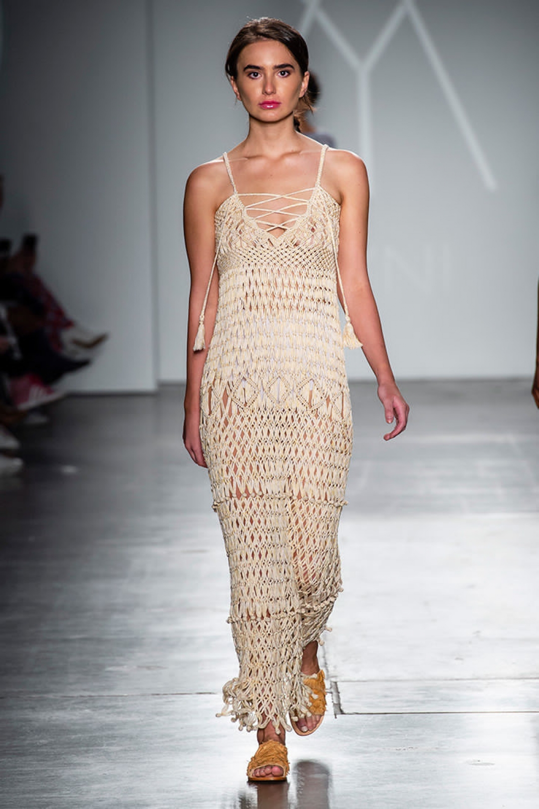 Несмотря на то, что плетеные сумки попали в out-тренды, в топе все еще держатся платья, напоминающие результат бабушкиного макраме. Чтобы они не выглядели слишком олдскульно (читайте: ветхо), Oscar de la Renta, Michael Kors и Rodarte сочетают наряды с кутюрной обувью в бусинах.