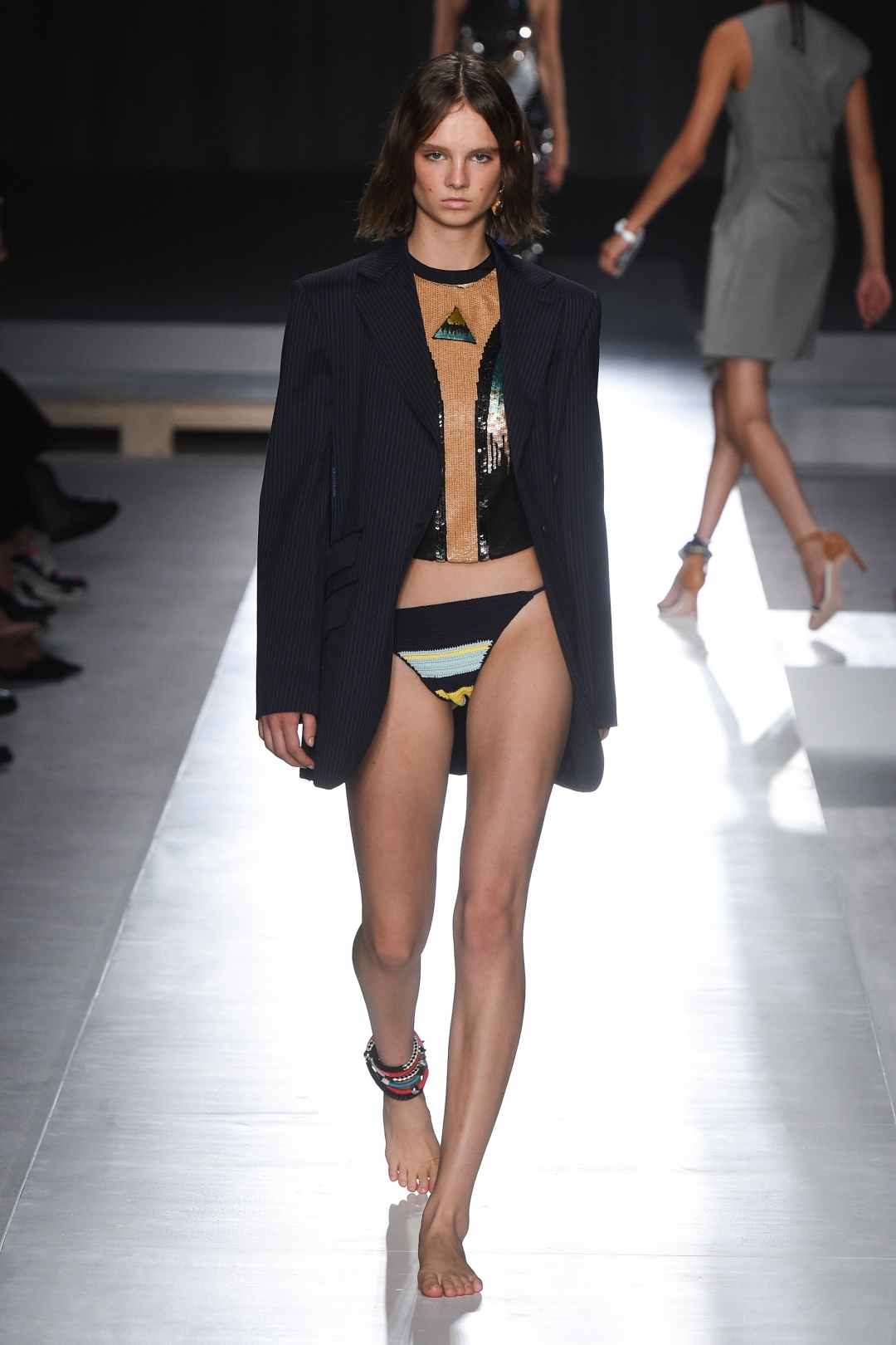 Но и в повседневной жизни! Chanel комбинирует купальник с джинсами, Sportmax — с деловым пиджаком, Jacquemus — с длинным кардиганом, а Altuzarra — с рубашкой-платьем. Но истинное положение дел нам показали в Saint Laurent: модели вышли в купальниках в финальной части показа, где обычно представлены платья для торжественных вечеров.