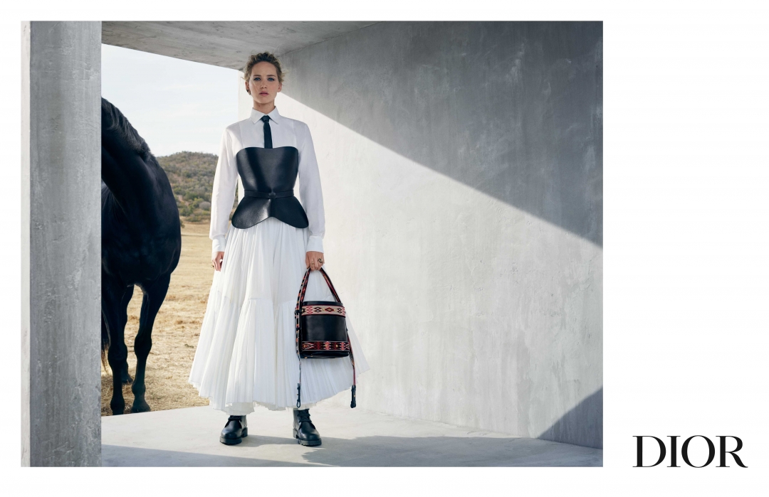 «Почему мне нравятся эскарамуза? Они занимаются очень мужским делом — родео. Но делают это в традиционных, очень женственных и красивых нарядах», — рассказывала арт-директор Мария Грация Кьюри, одевшая Лоуренс в плиссированное платье, кожаный корсет и пальто, будто бы расписанное шариковой ручкой. В руках оскароносной актрисы — обновленная сумка-Saddle, которую бренд сделал при Джоне Гальяно, а рядом — чистокровный арабский скакун, который участвовал в майском перфомансе дома. Кажется, мы нашли одну из красивейших съемок сезона — спасибо голландской фотохудожнице Вивиан Сассен.