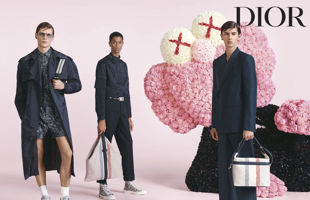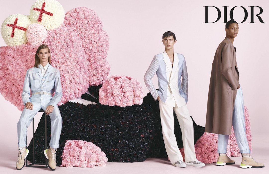 Бывший креативный директор Louis Vuitton Ким Джонс показал свою первую мужскую коллекцию для Dior в июне этого года — теперь французский бренд опубликовал рекламную кампанию со всеми знаковыми образами с шоу. Как и на показе, прошедшем в исторических казармах Республиканской гвардии, на фоне мужчин в брендированных свитшотах, двубортных пиджаках, костюмах с насекомыми и тренчами из ткани туаль де жуи красовалась гигантская скульптура от американского художника KAWS. Глазастый персонаж украшен черными, розовыми и белыми пионовидными розами, как отсылка к женственности представленной мужской коллекции.