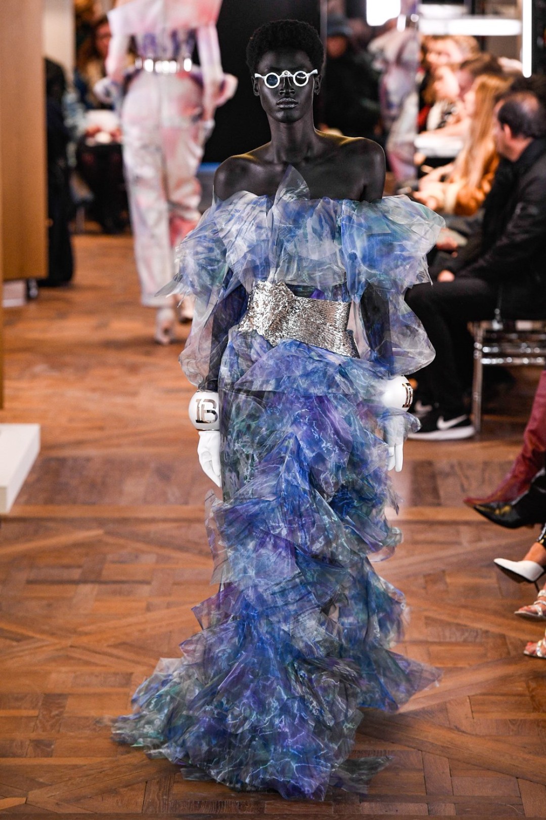 О том, что дизайнер перелистывал архив, говорят драпировки, кейпы, бусины и перья, которые так обожал Пьер Бальмен и которые Ольвье Рустен замешал с граффити, джинсами и головными уборами из металла. Их для кутюрного показа французского дома сделала кампания House of Malakai, известная иисусоподобной тиарой для выступления Бейонсе на «Грэмми» и переливающимися ободками Ники Минаж. «Конечно, бренд славится своей остротой, сексуальностью и гламуром, — объясняет Рустен. — Но здесь речь идет, скорее, о возвращении к элегантности Франции. Все, что вы видите, дает ощущение присутствия Пьера Бальмена. И это незаменимое чувство!»