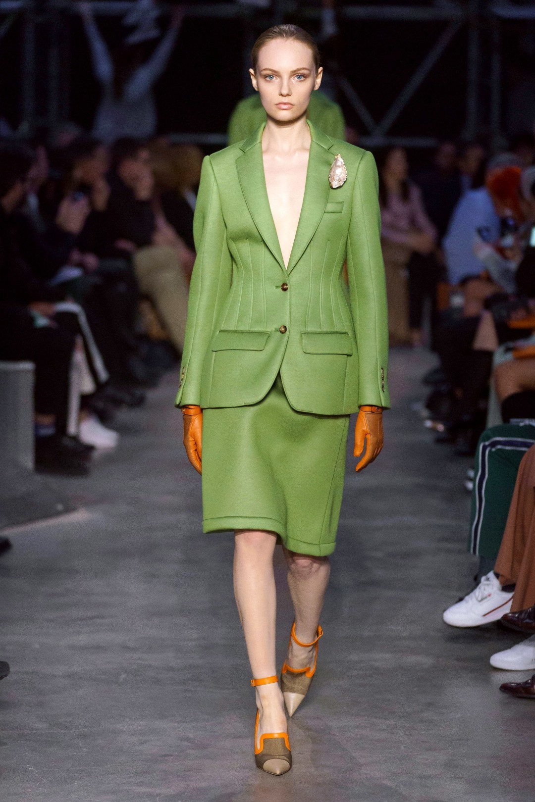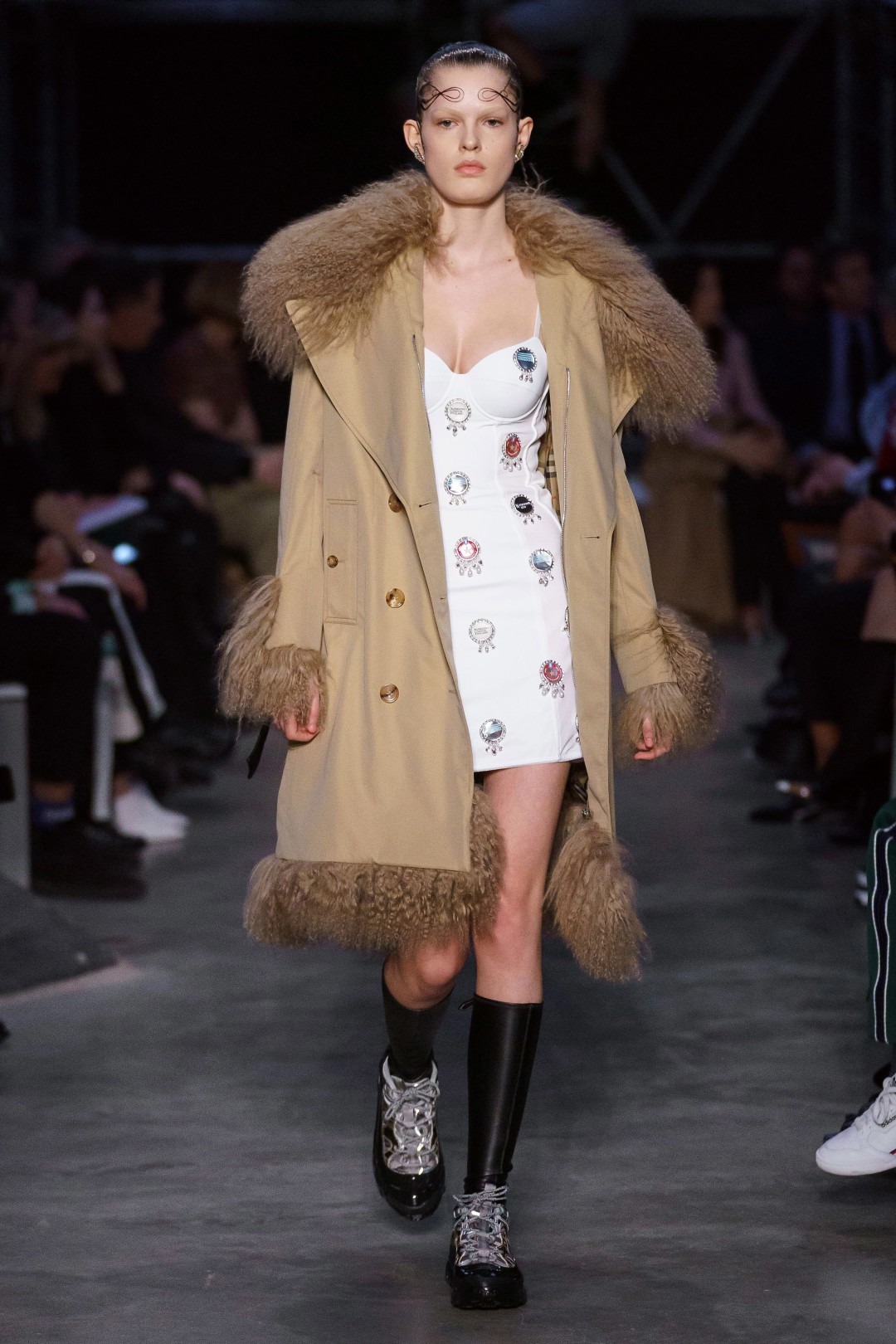 Рикардо Тиши показал вторую коллекцию для Burberry, тематически разделенную на несколько частей. В первой — со спортивным корсетом, розовой толстовкой, удлиненной футболкой, меховым бомбером и дутой курткой со шлейфом в виде британского флага — новый креативный директор бренда обращается к миллениалам и звездам стритстайла. Во второй — с клетчатыми платьями, классическими костюмами, песочными дафлкотами и фирменными тренчкотами — к прогрессивным любителям классики. А в третьей — с кружевными комбинациями, блестящими брюками, кожаными жилетками и сетчатыми платьями в перьях — к гостьям красных дорожек, которые с приходом Тиши стали чаще выбирать Burberry для своих выходов.