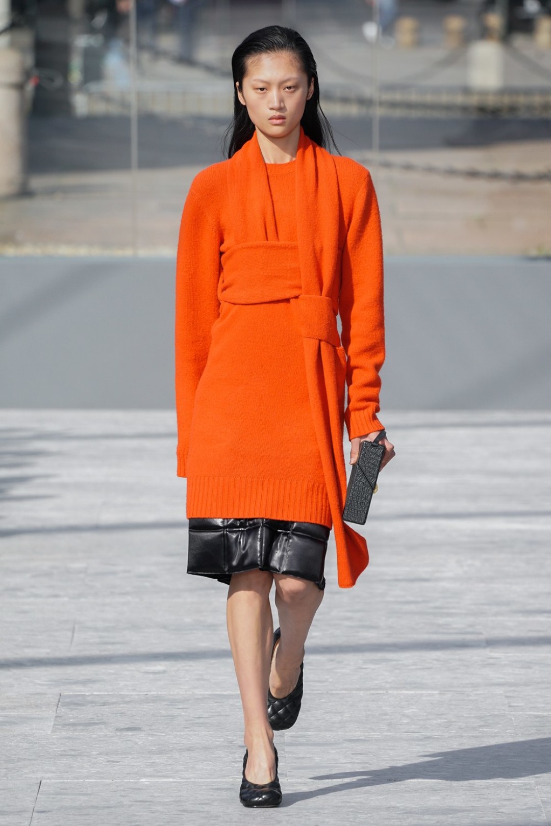 Стопроцентные бестселлеры будущего — это стеганое пальто, джемпер с золотой цепочкой, переливающееся платье-рубашка и миниатюрная сумка-кейс. А еще — ярко-оранжевое трикотажное платье, которое вместе с желтым пальто из pre-fall коллекции Bottega Veneta заставят ждать следующий осенне-зимний сезон.