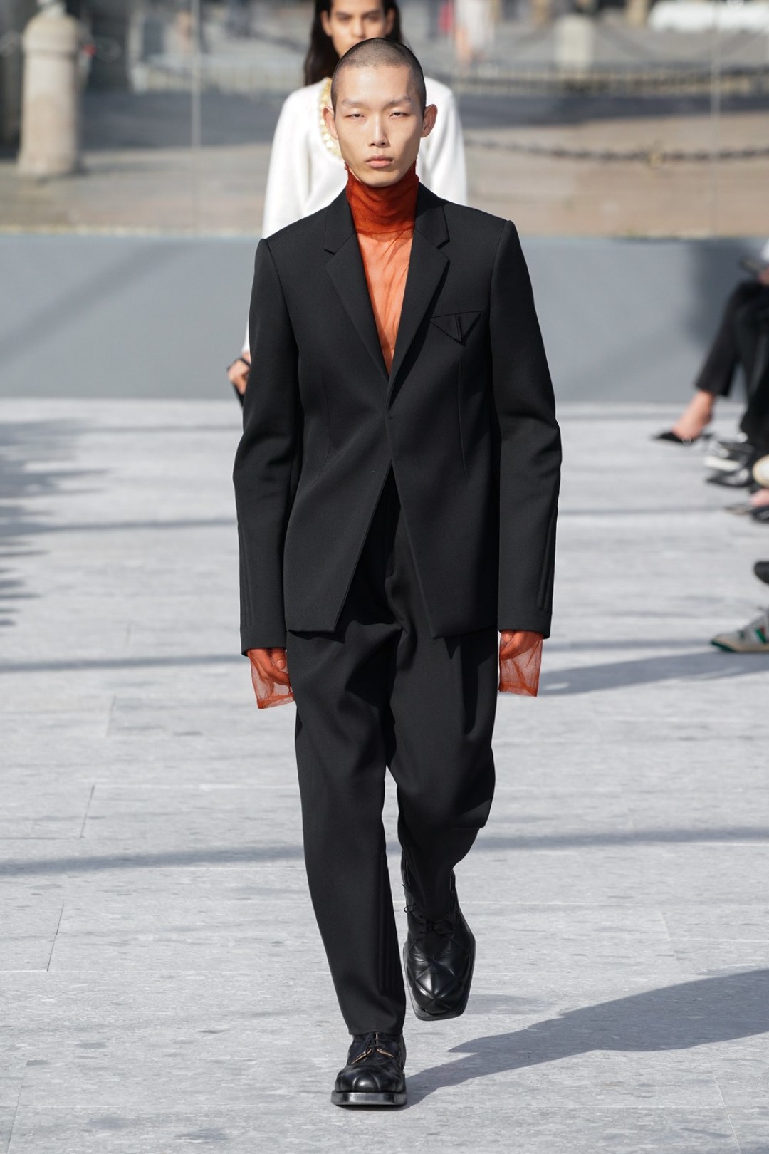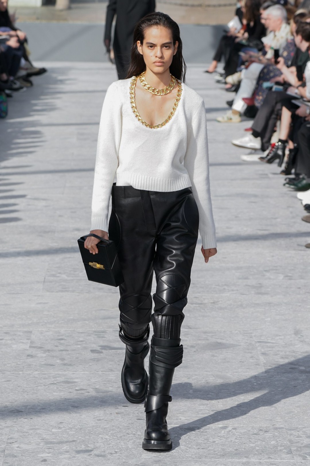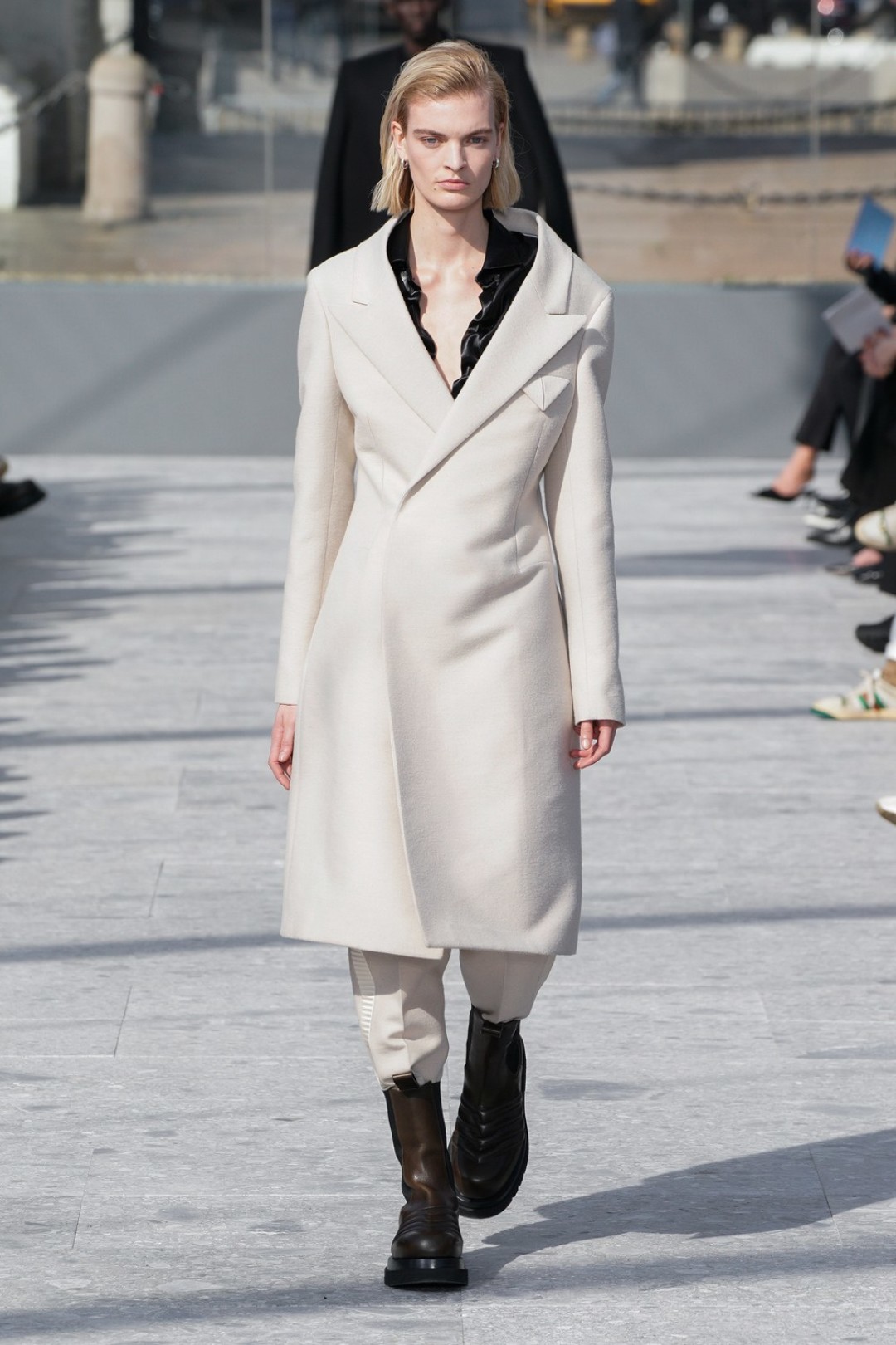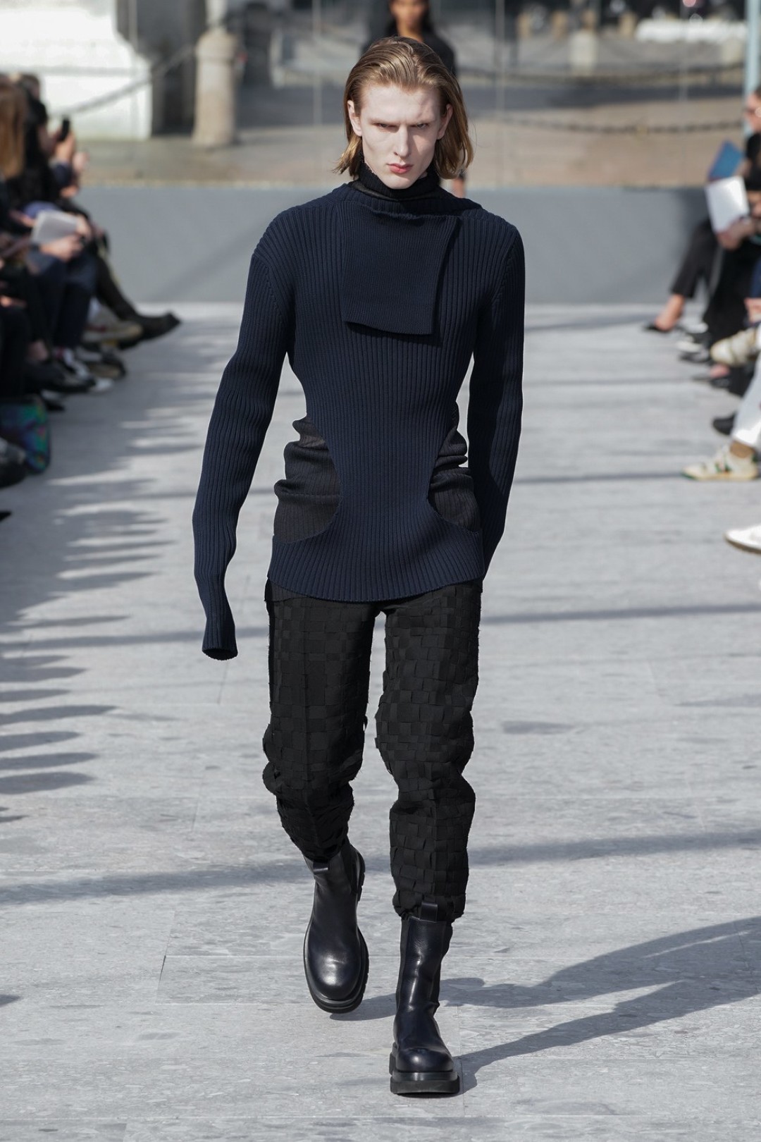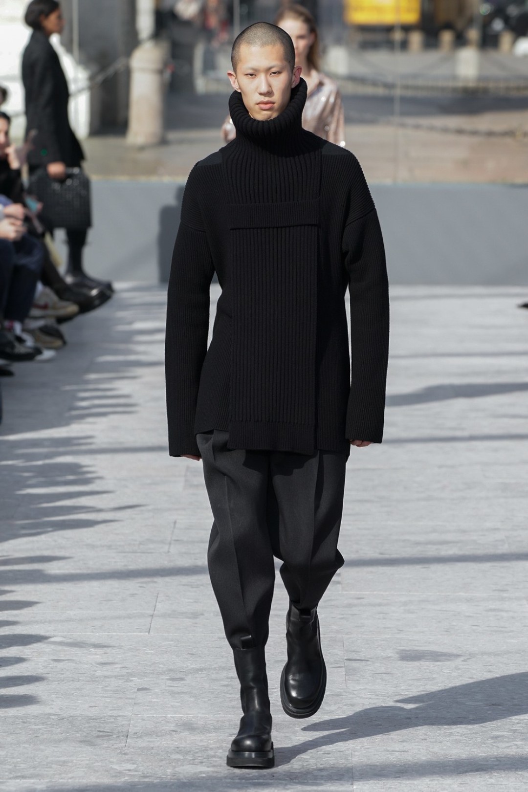 Если первый лукбук Дэниела Ли напоминал Celine времен Фиби Файло (дизайнер несколько лет проработал под ее менторством), то первая подиумная коллекция, показанная сегодня в Милане, больше похожа на Helmut Lang. Скандинавский минимализм, выраженный в кожаных пальто, мужских свитерах и костюмах свободного кроя, перекликался с гиперболизированным футуризмом, показанным через кожаные брюки, челси на высокой платформе и комбинезоны, напоминающие экипировку Star Wars.