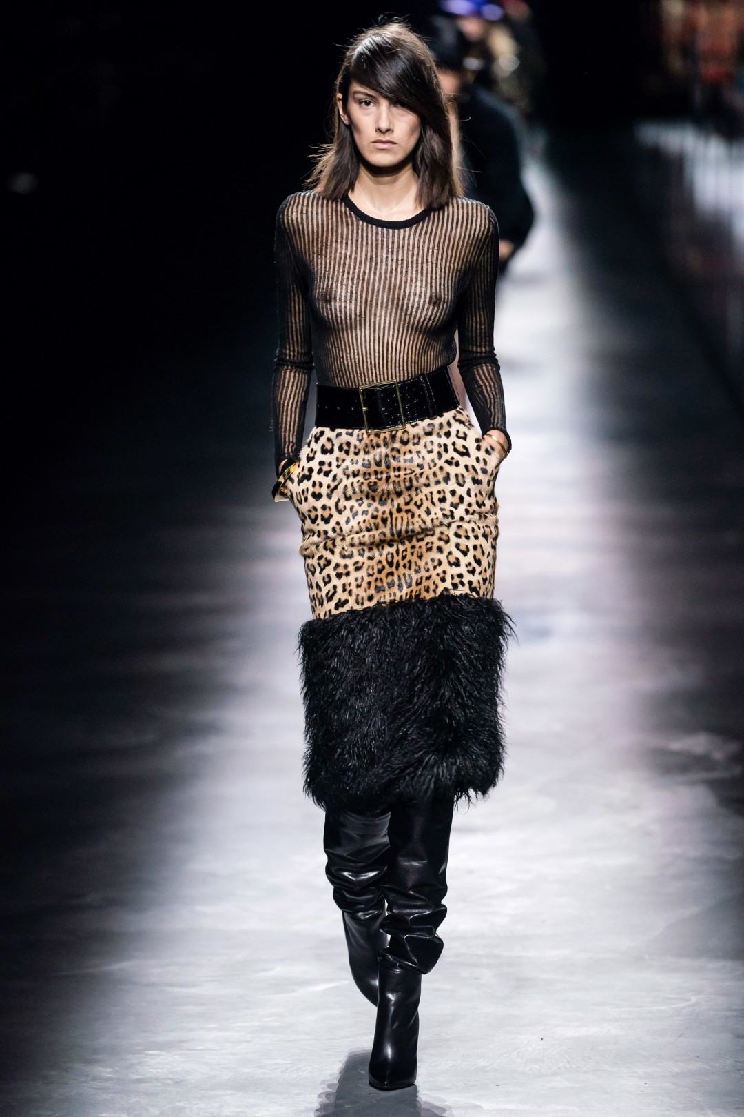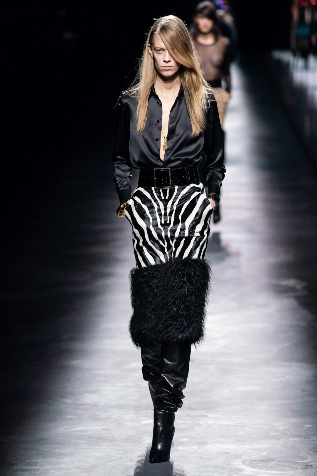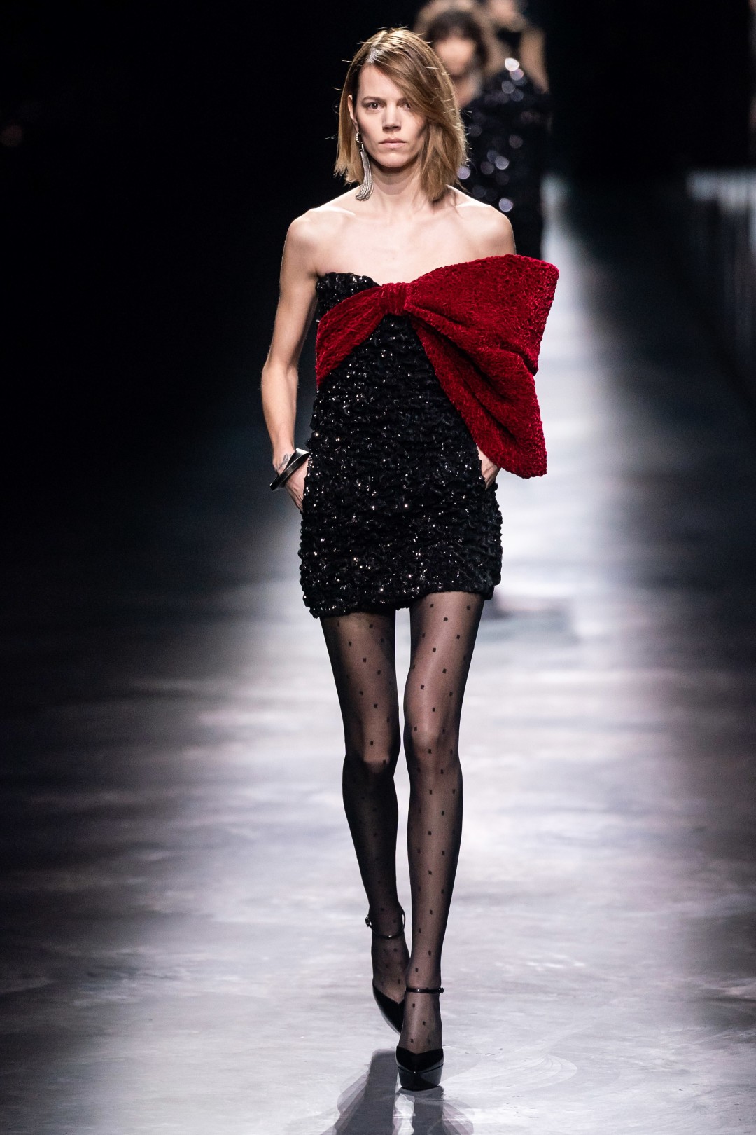 В Париже прошел показ осенне-зимней коллекции Saint Laurent — с не по погоде короткими платьями, юбками и шортами, а также костюмами, надетыми на голое тело. В этот раз Антони Вакарелло вдохновлялся «звездной» историей модного дома — образами Ива Сен-Лорана для Катрин Денев (например, леопардовой сорочкой с фотографии творческого дуэта от Хельмута Ньютона), для Бетти Катру (длинными юбками с завышенной талией и комплектами в стиле сафари) и для Бьянки Джаггер (белым костюмом с ее свадьбы с Миком Джаггером).