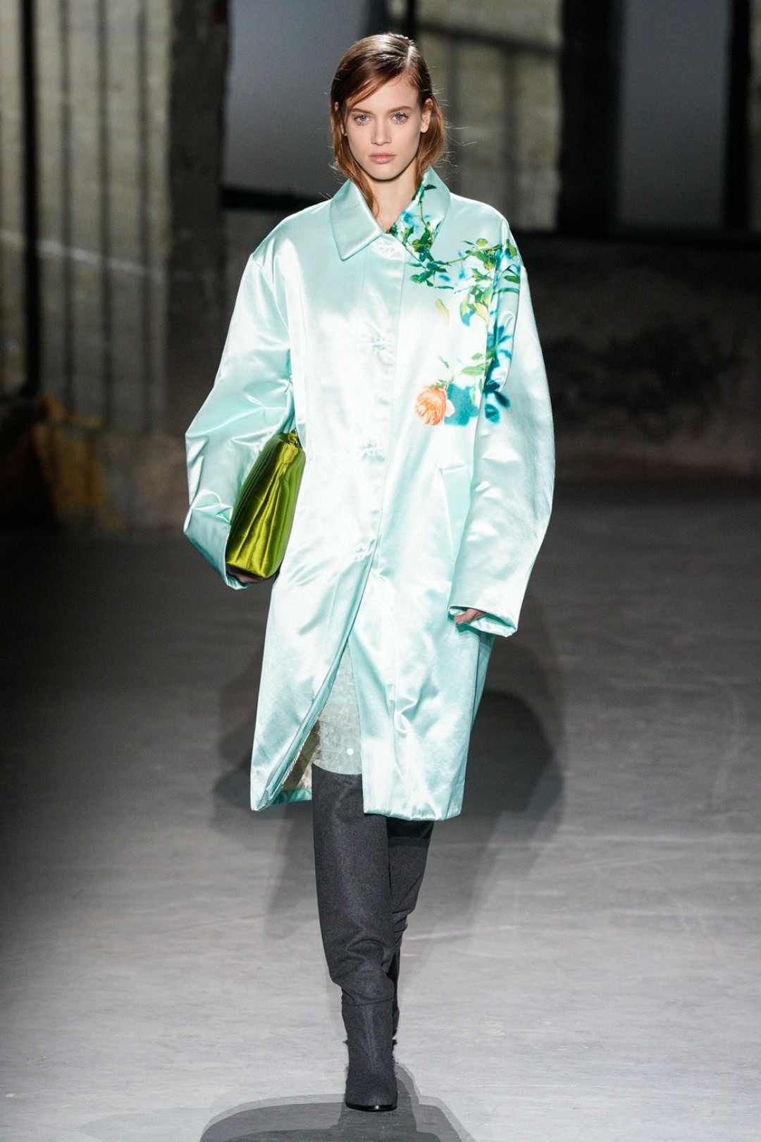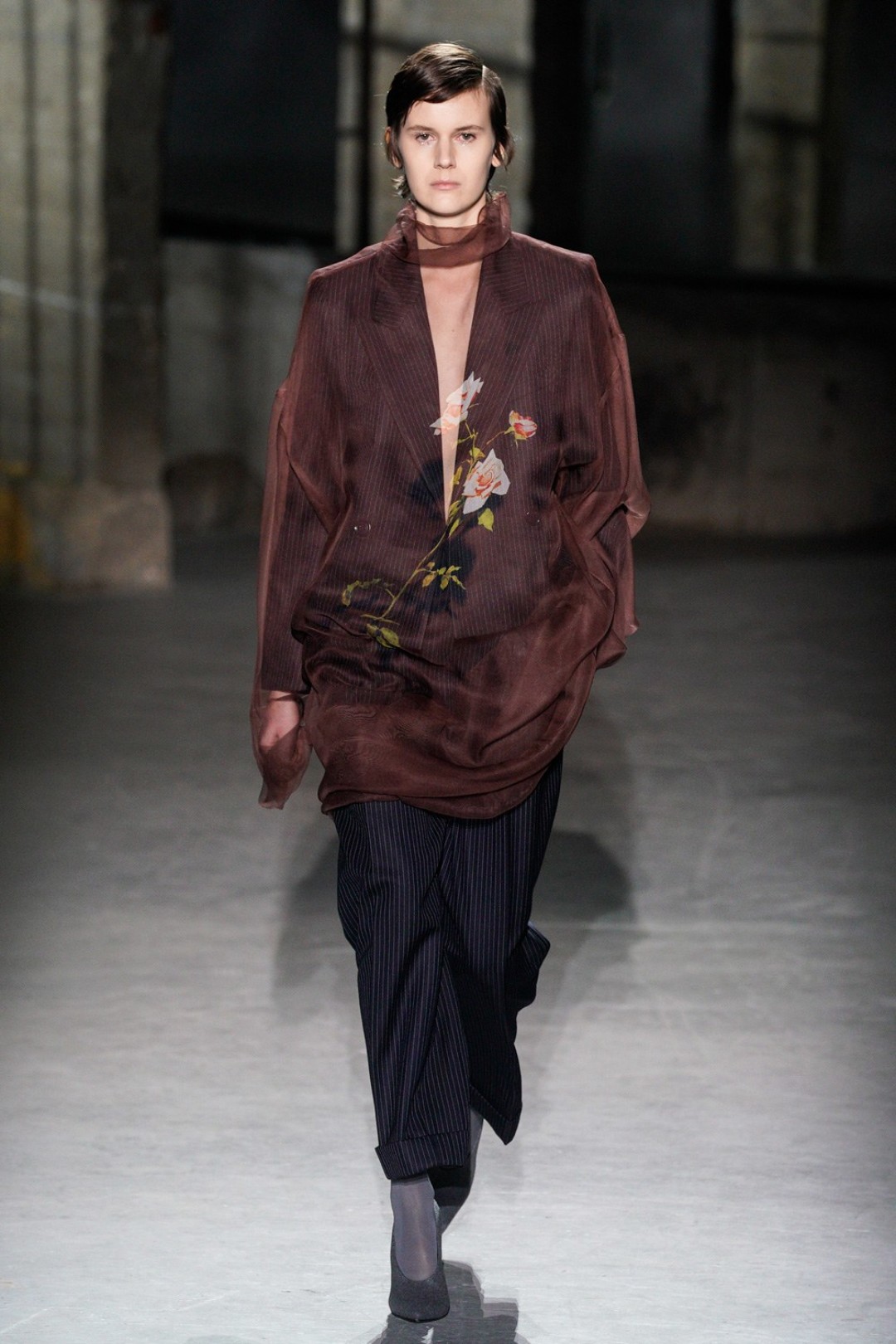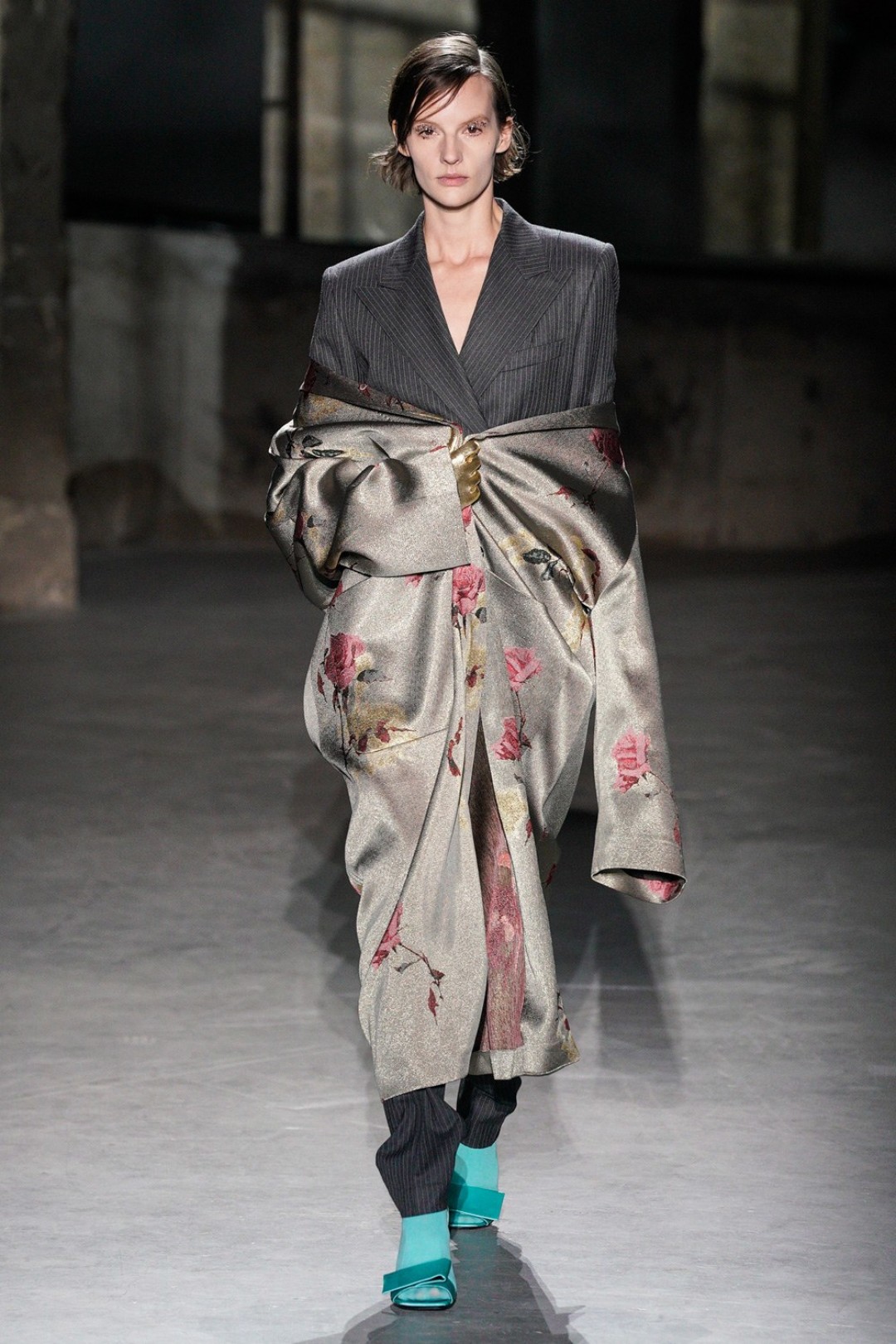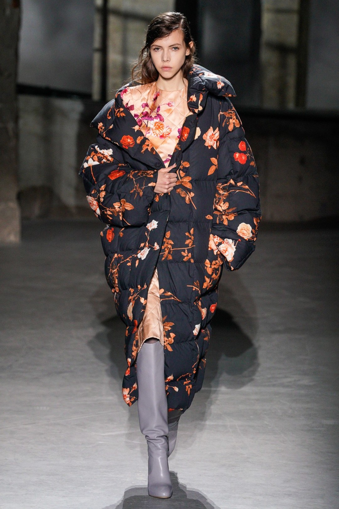 Бельгийский дизайнер Дрис ван Нотен вновь показал идеальную коллекцию для Петербурга: в ней пуховики будто бы из инстаграма @itsmaysmemes усыпаны осенней листвой и розовыми бутонами, а шерстяные костюмы заботливо дополнены стеганой накидкой-шарфом.