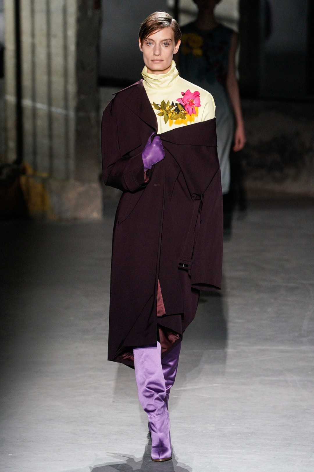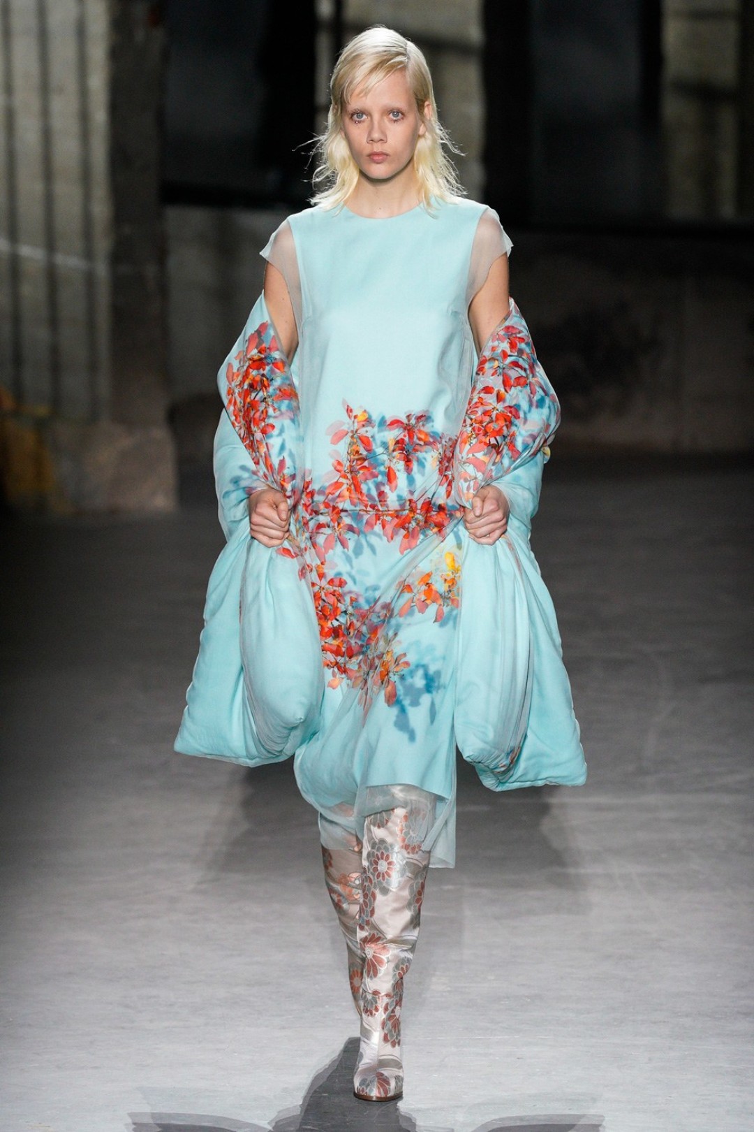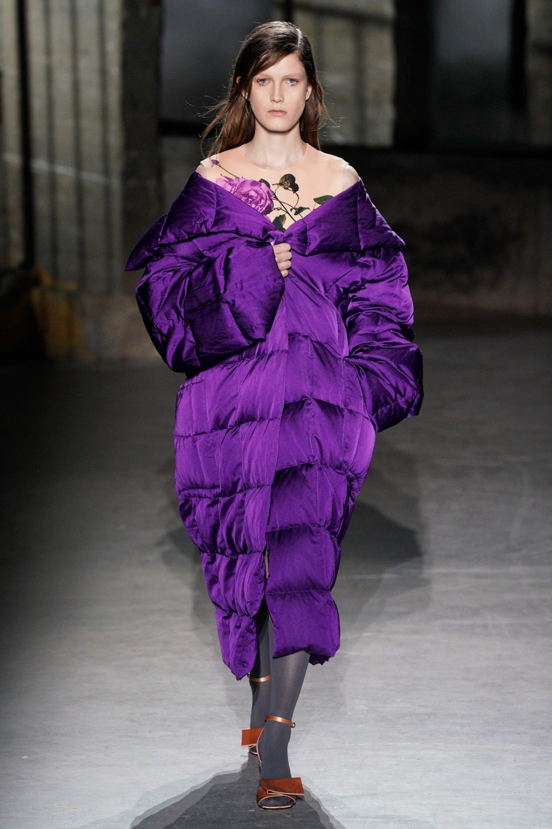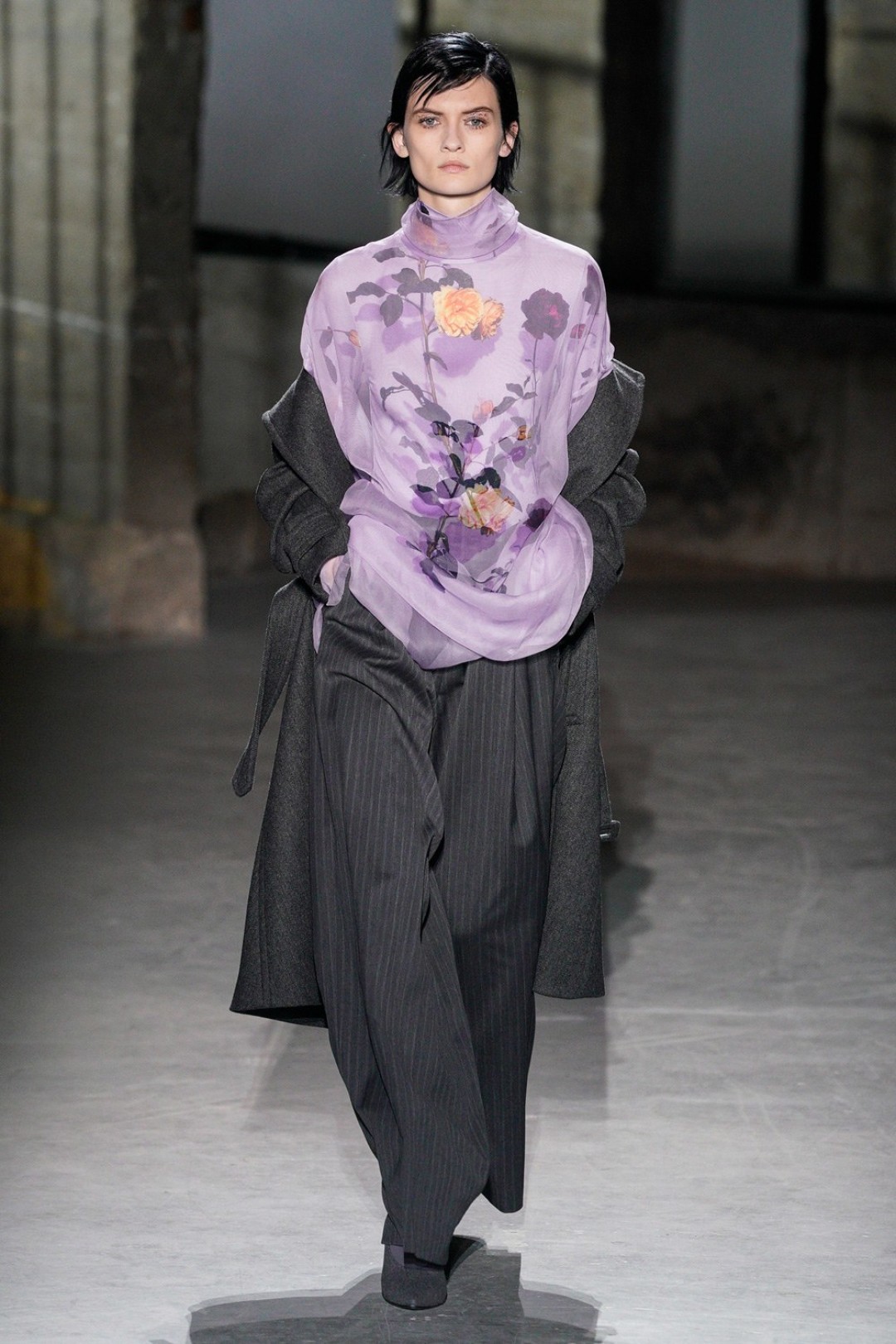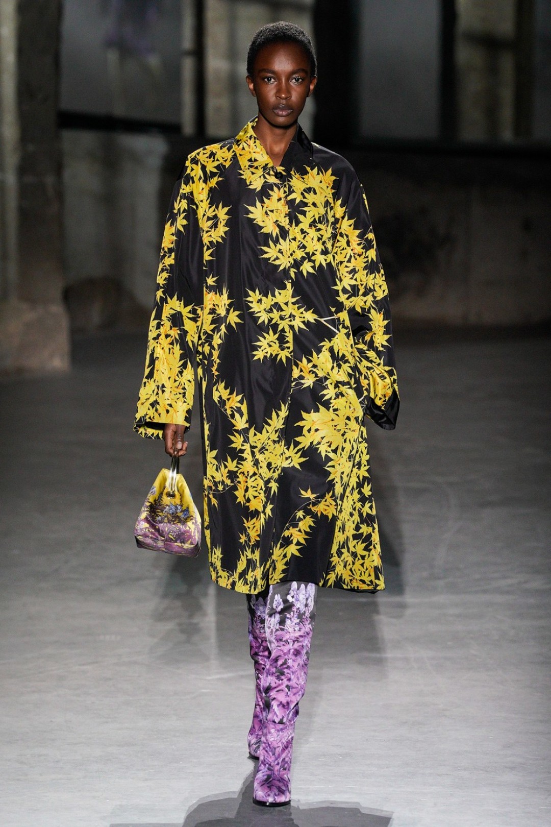 Бельгийский дизайнер Дрис ван Нотен вновь показал идеальную коллекцию для Петербурга: в ней пуховики будто бы из инстаграма @itsmaysmemes усыпаны осенней листвой и розовыми бутонами, а шерстяные костюмы заботливо дополнены стеганой накидкой-шарфом.