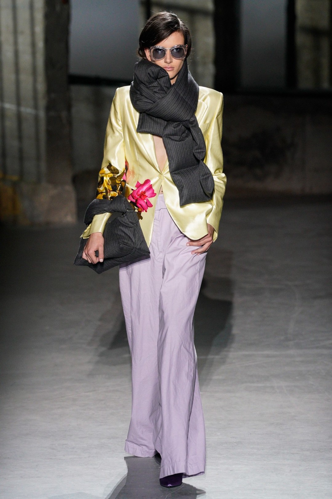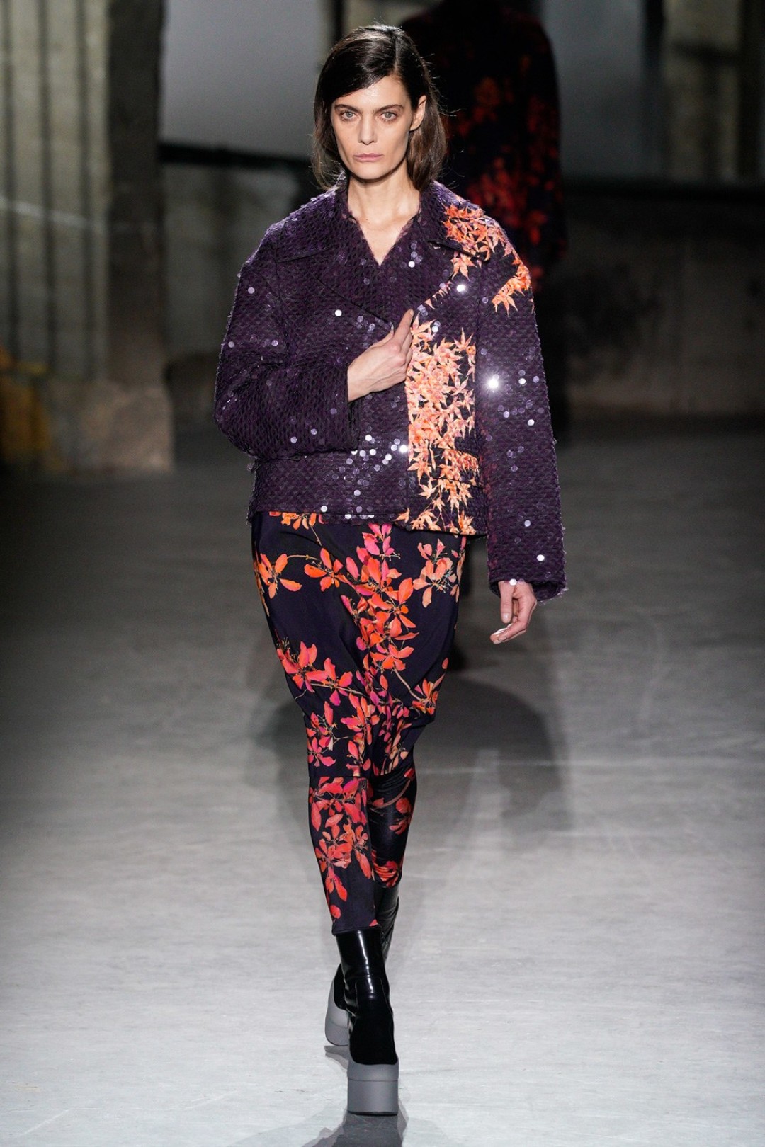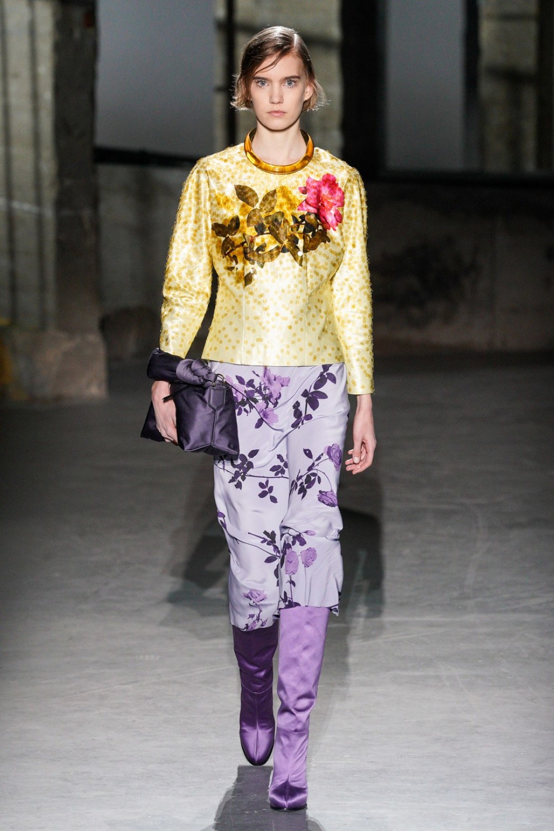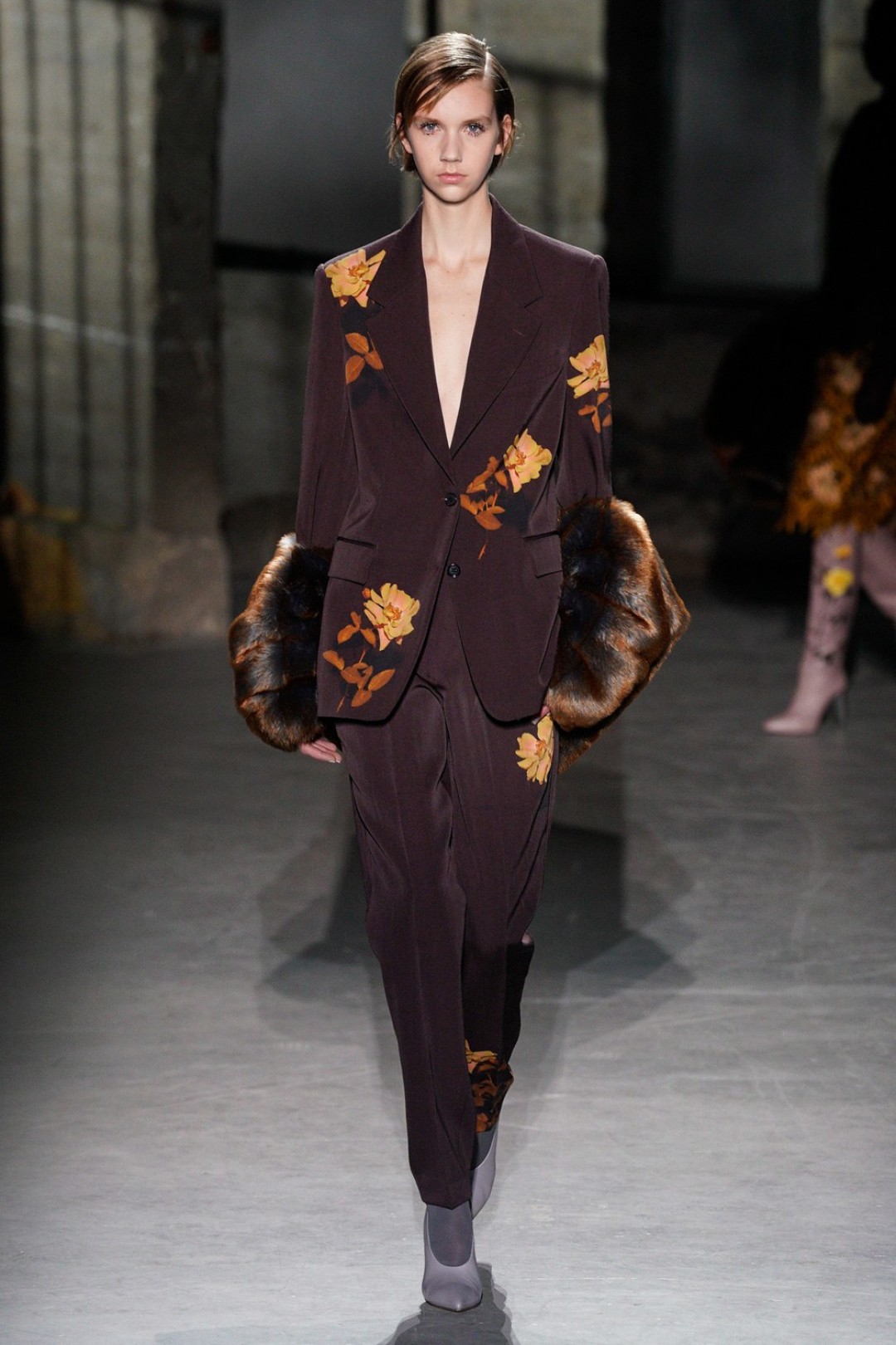 Бельгийский дизайнер Дрис ван Нотен вновь показал идеальную коллекцию для Петербурга: в ней пуховики будто бы из инстаграма @itsmaysmemes усыпаны осенней листвой и розовыми бутонами, а шерстяные костюмы заботливо дополнены стеганой накидкой-шарфом.