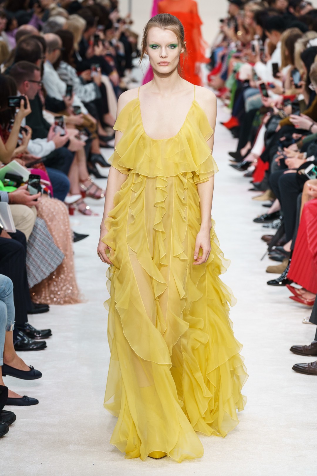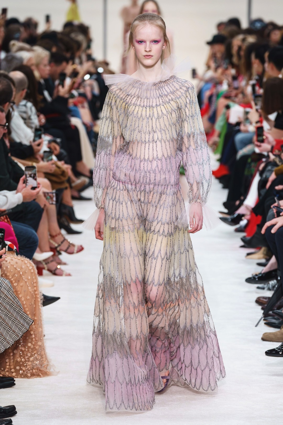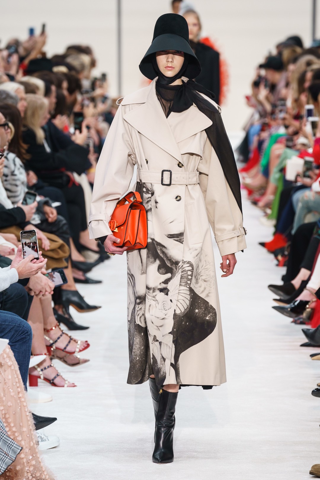 На коктейльные платья, летние комбинезоны, минималистичные жакеты и шляпы-колпаки креативный директор Valentino нанес коллажи от дизайнера Undercover Джуна Такахаши, который уже сотрудничал с французским брендом в рамках мужской коллекции. А архитектурные пальто, белоснежные шубы и бадлоны с кружевными вставками «облепил» цитатами Роберта Монтгомери, который также предоставил для показа свою знаменитую инсталляцию «The people you love become ghosts inside of you, and like this you keep them alive» («Люди, которых вы любите, становятся призраками внутри вас. И таким образом вы делаете их живыми»)