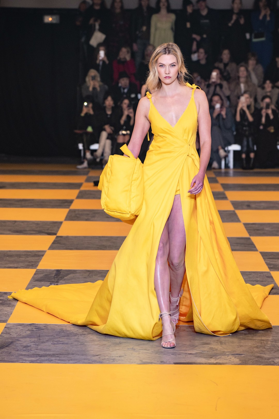 Если присутствие автоспорта в моде было актуально пару сезонов назад (вспоминаем коллаборацию Tommy Hilfiger и Джиджи Хадид и коллекцию Александра Вэнга для собственного бренда), то настоящую тенденциозность показу придавали стеганые сумки-подушки, комплекты с имитацией туаль де жуи, переливающиеся кепки-каски и брюки с эффектом тай-дай. Именно за ними мы выстроимся в очередь в следующем сезоне — ну, и за фирменными кроссовками с бирками, конечно!