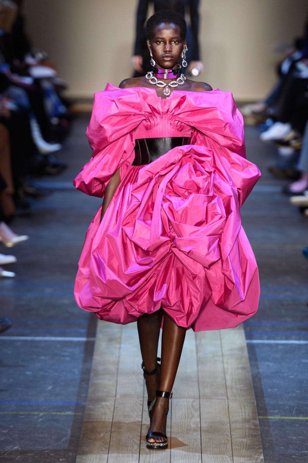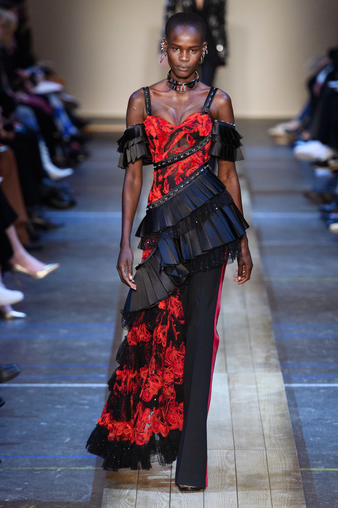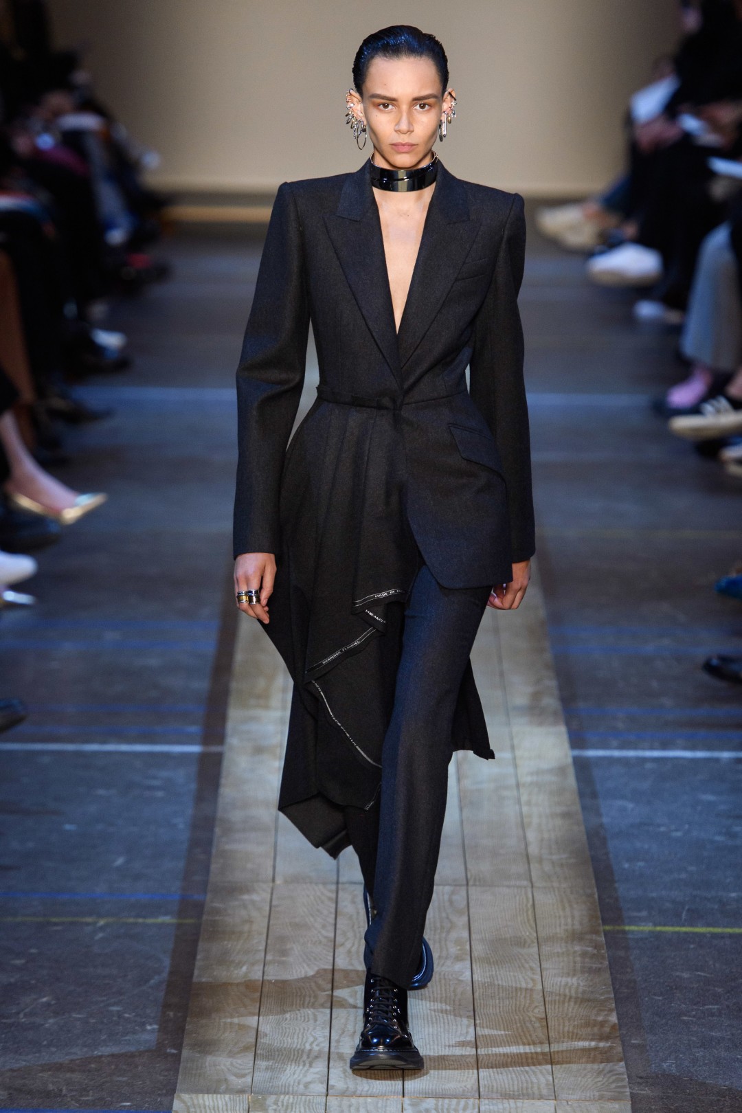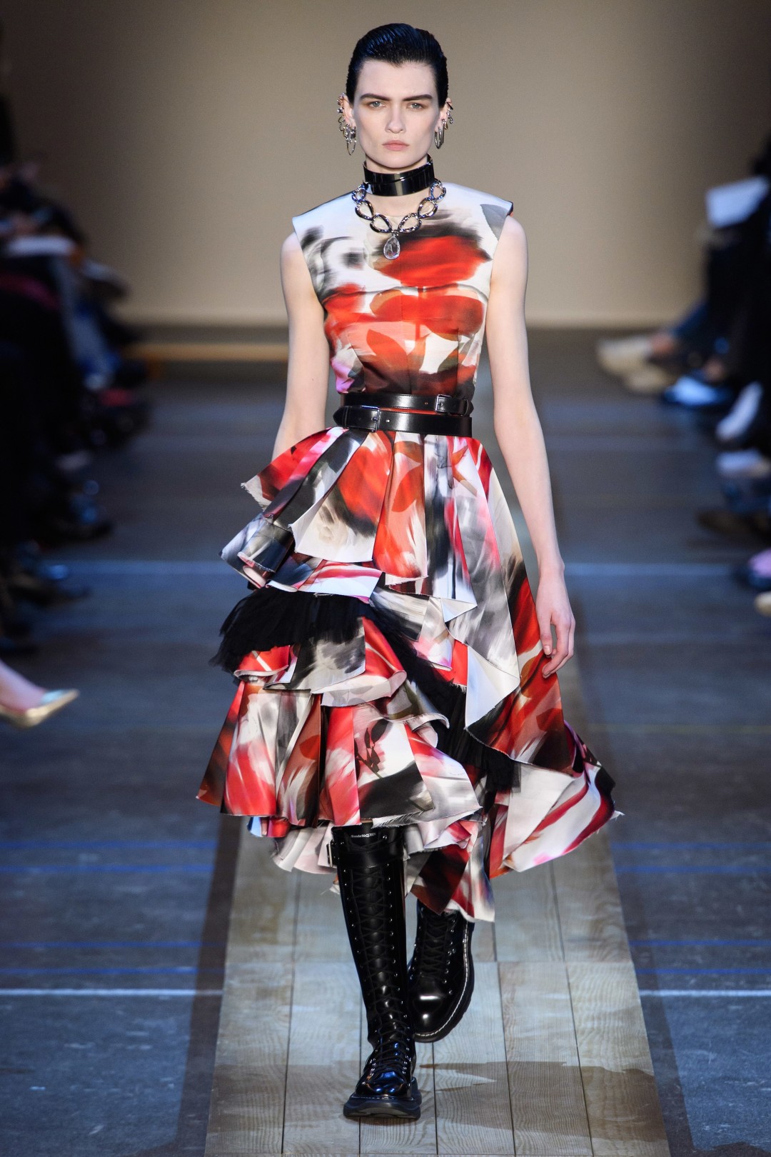 В парижском Лицее Карно, где в 2005 году Александр Маккуин презентовал коллекцию по мотивам фильмов Альфреда Хичкока, состоялось шоу преемницы дизайнера — Сары Бертон. На этот раз она акцентировала внимание не столько на вещах, сколько на местах их создания: перед показом команда Alexander McQueen выложила в Instagram процесс подготовки коллекции с геотегами фабрик William Halstead, John Foster, Bower Roebuck, Savile Clifford и Joshua Ellis, а вместо стульев разложила рулоны их тканей.