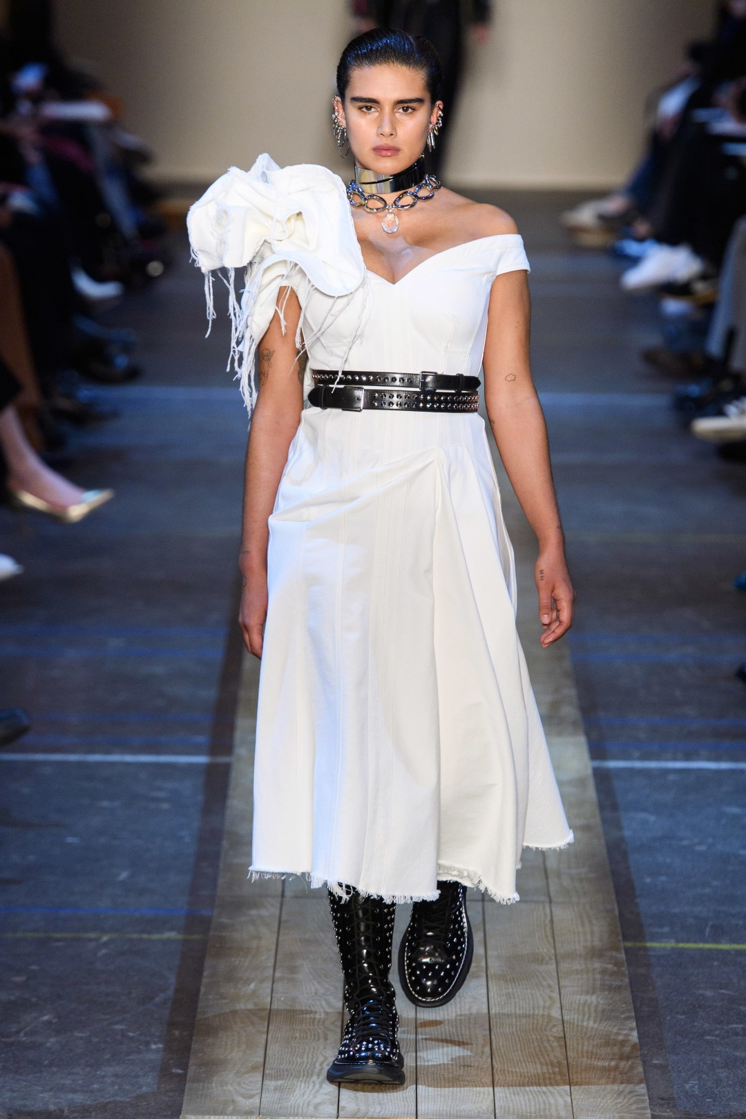 Главной частью мудборда стала как раз таки индустриальная история Северной Англии — места, где родилась и выросла Сара Бертон. «Я отвезла свою команду на эти заводы, в пейзаж, который я помню с самого детства. — рассказывала креативный директор Alexander McQueen после шоу. — Сердце коллекции вдохновлено тканями, которые мы видели, взаимодействием человека с машиной»