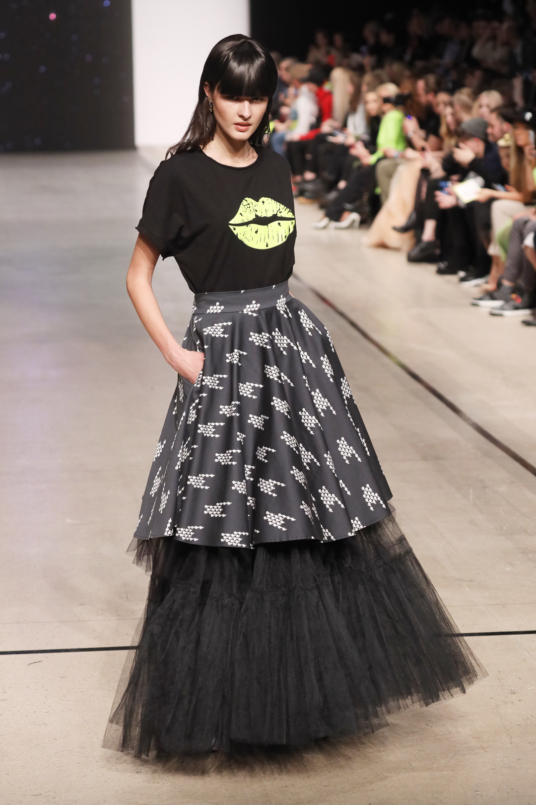 Мэган Виртанен: Эту коллекцию можно не комментировать вообще — там, где уже ничего не может быть сделано, остается только явить молчаливое принятие и запить его пустырником или валерьянкой. Однако соцсети всколыхнуло обсуждение: дизайнер и ее муза Ольга Бузова выясняют, кто именно является автором «эксклюзивного принта» в виде губ неоновых оттенков. Подсказки из зала в духе «подобные идеи были еще у Эльзы Скиапарелли», «Ив Сен-Лоран в 1971 году», «у Прада в 2000-м мелькало» — не принимаются. Да и зачем? В данном случае посмотреть на разворачивающуюся драму будет на несколько порядков интереснее, чем непосредственно на вещи.