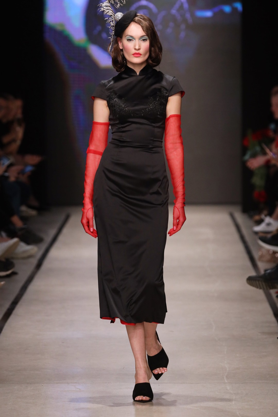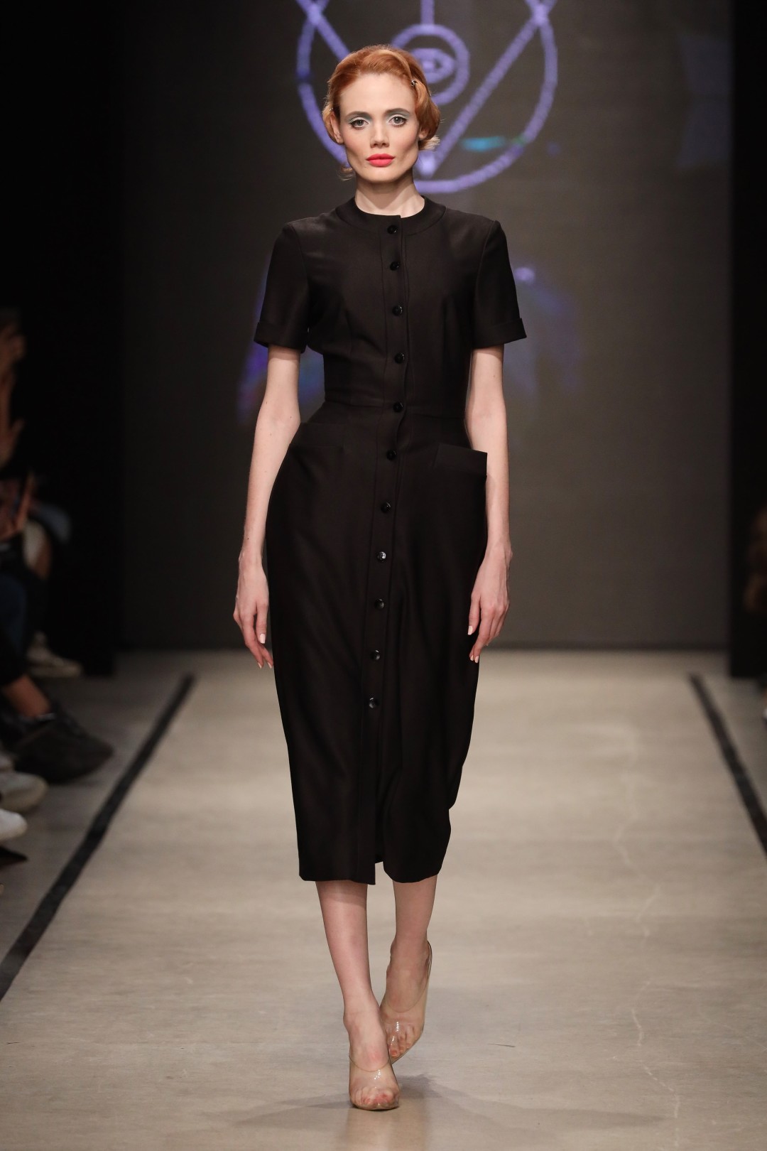 Мэган Виртанен: Это помесь модного журнала образца 1952 года с любительской театральной постановкой «Семейки Адамс». Но в целом — неплохие черные платья, которые будут хорошо продаваться, а вечерний наряд с пайетками — так вообще потенциальный хит предновогодних корпоративов. Но все как-то без огонька, даже метла не спасает, а тема летучих мышей оказалась незаслуженно не раскрыта. Шляпки и прочие аксессуары, кажется, вовсе подбирали в последний момент по принципу «что найдется», и это дополнительно вызывает в памяти низкобюджетные нуары 1950-х, если вообще не одиозные фильмы Эдварда Вуда.