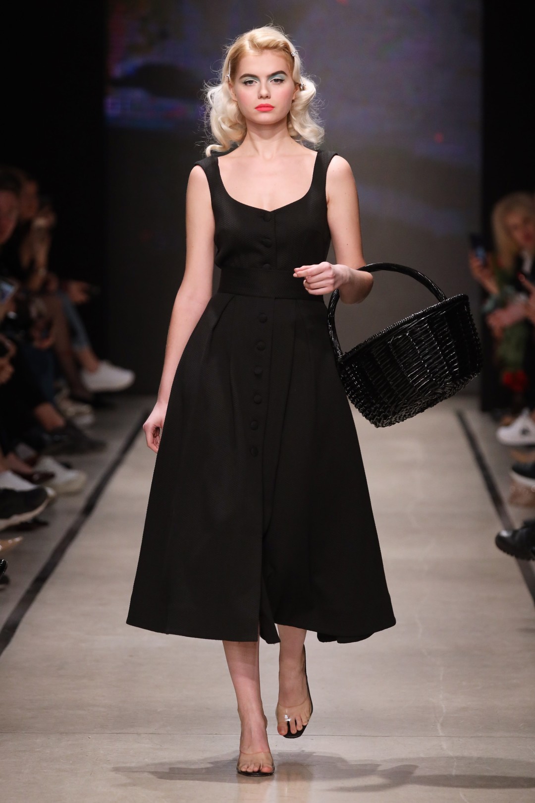 Юлия Большакова: В коллекции легко считываются коды времени — узкая талия, большие плечи, бархат, фуксия, принцесса Диана. 1980-е сейчас на волне, поэтому это стопроцентное попадание в тенденции. Но в показе 2019 года мне бы хотелось видеть меньше стилизации, больше привязки к сегодняшнему дню. Этого можно было бы добиться, к примеру, при помощи классных причесок.