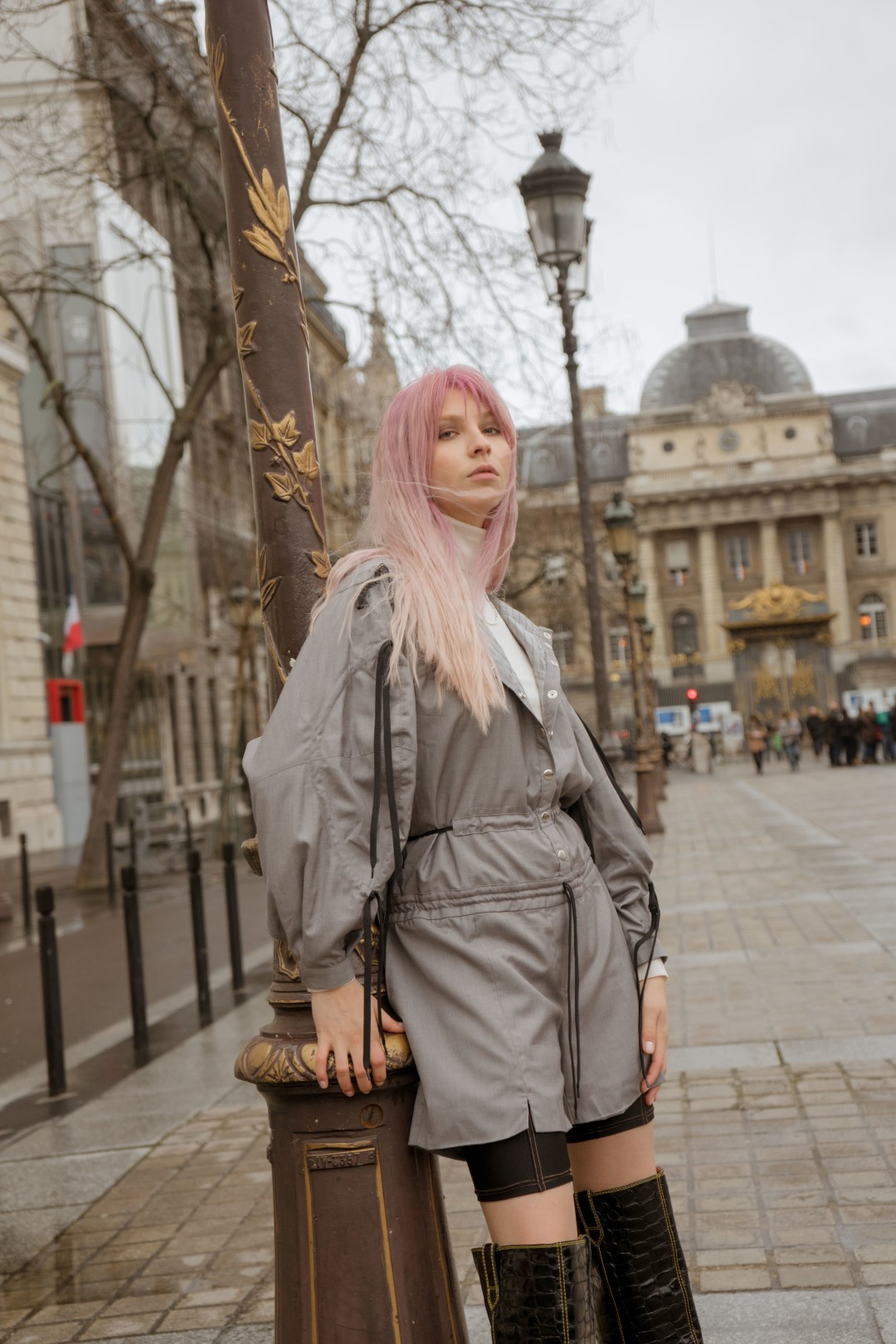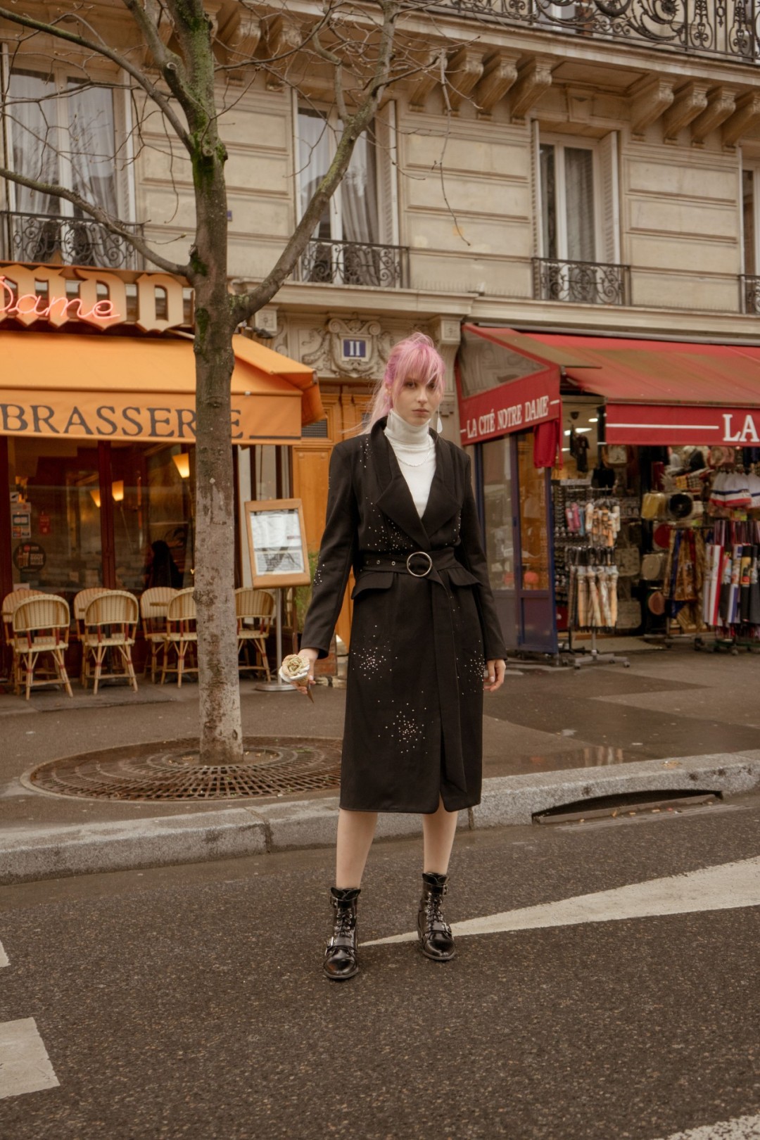 После своего первого показа в Петербурге, в съемочном павильоне киностудии «Ленфильм», дизайнер Юрий Питенин отвез весенне-летнюю коллекцию в прогулку по Парижу. Непромокаемые комбинезоны, велосипедки с контрастной отделкой, пальто с вышивкой бисером и платья с анималистичным принтом команда бренда Saint-Tokyo сняла на фоне Пале-Рояль и сгоревшего Нотр-Дама.