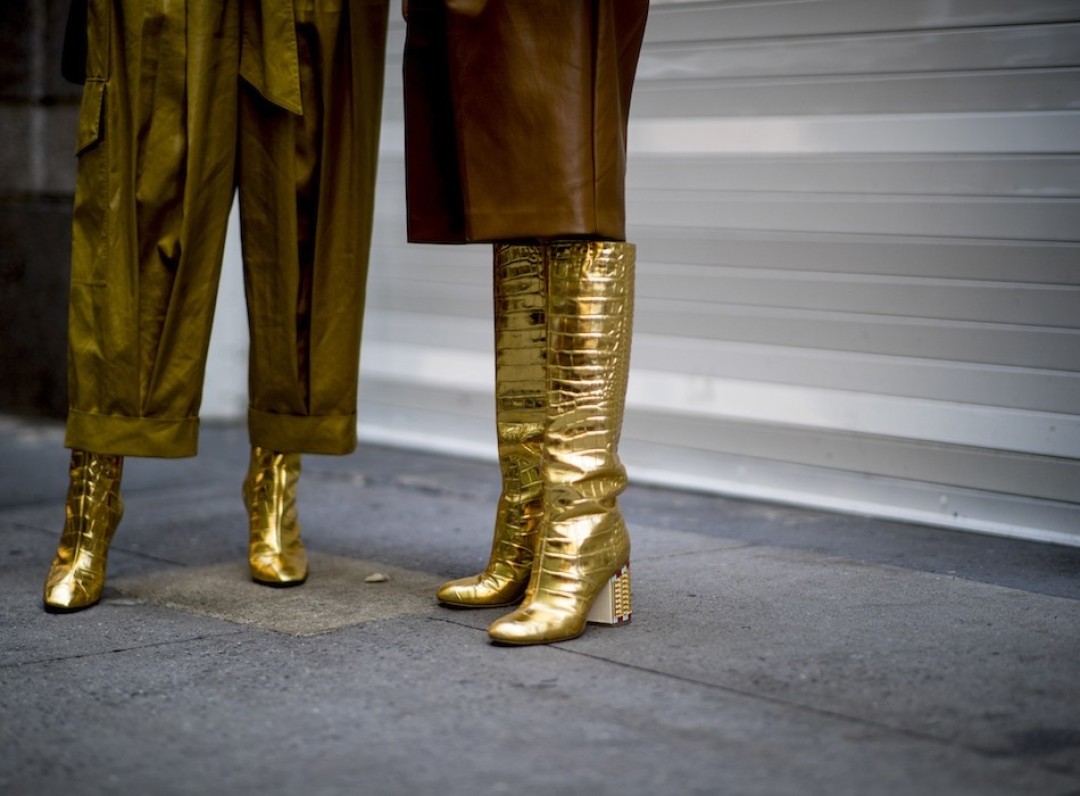 50 оттенков бежевого с одной стороны, фуксия, золото, молодая зелень - с другой, а также кожа, объемные рукава и широкие пиджаки.