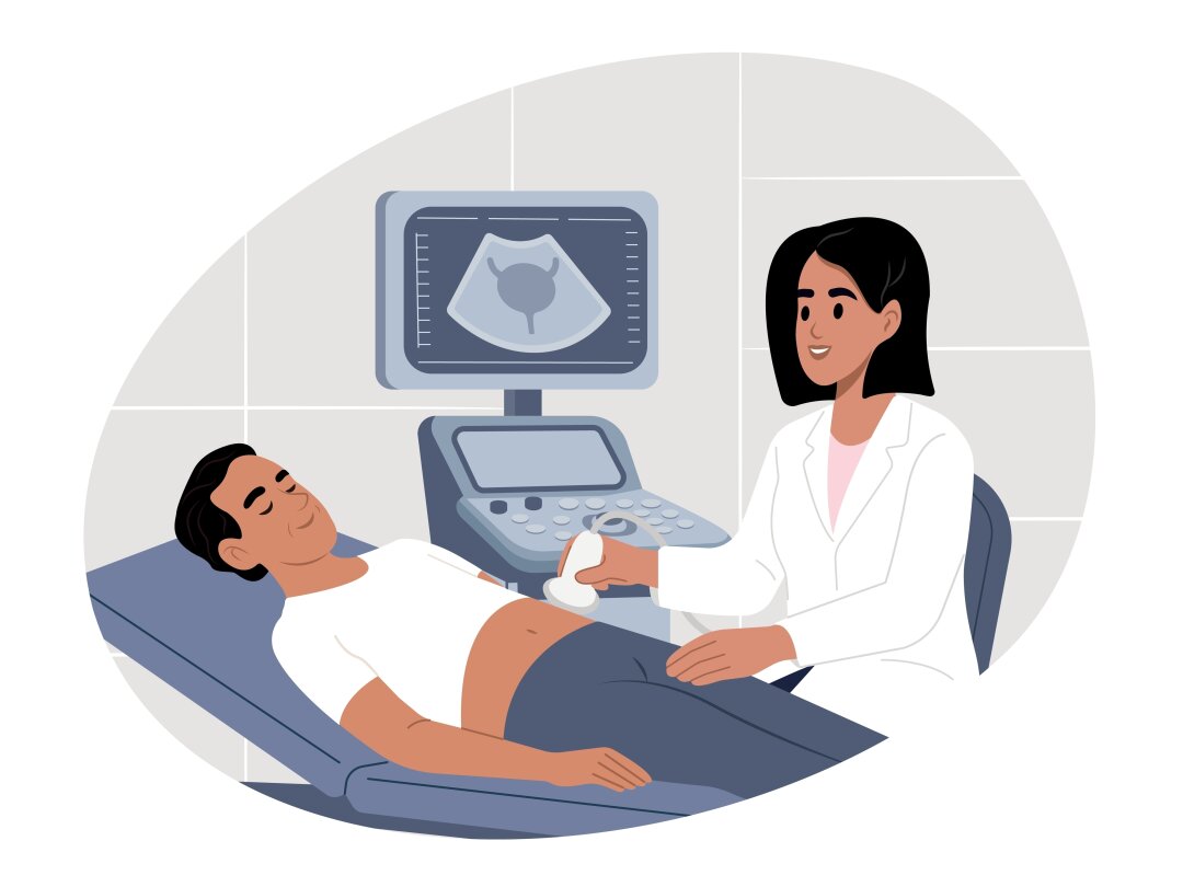 При подозрении на рак простаты далее проводится дообследование в объеме МРТ органов малого таза с внутривенным контрастированием, биопсия простаты.