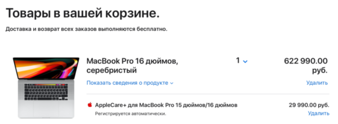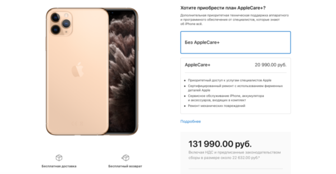 Стоимость подключения расширенной гарантии варьируется от 2990 рублей (AirPods) до нескольких десятков тысяч рублей (29 990 рублей за MacBook Pro). С AppleCare+ ремонт дисплея iPhone обойдётся в 1990 рублей, а любая поломка Apple Watch — в 4990 рублей.