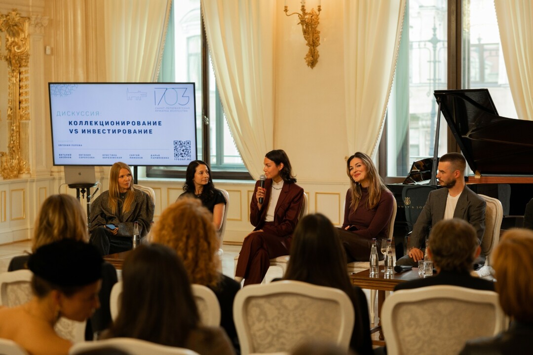 Во встрече приняли участие эксперты арт-рынка, ведущие петербургские коллекционеры, искусствоведы, галеристы, представители бизнеса и творческих кругов. В качестве модератора выступила Евгения Попова — сооснователь некоммерческого арт-фонда Popov Foundation, коллекционер и меценат.