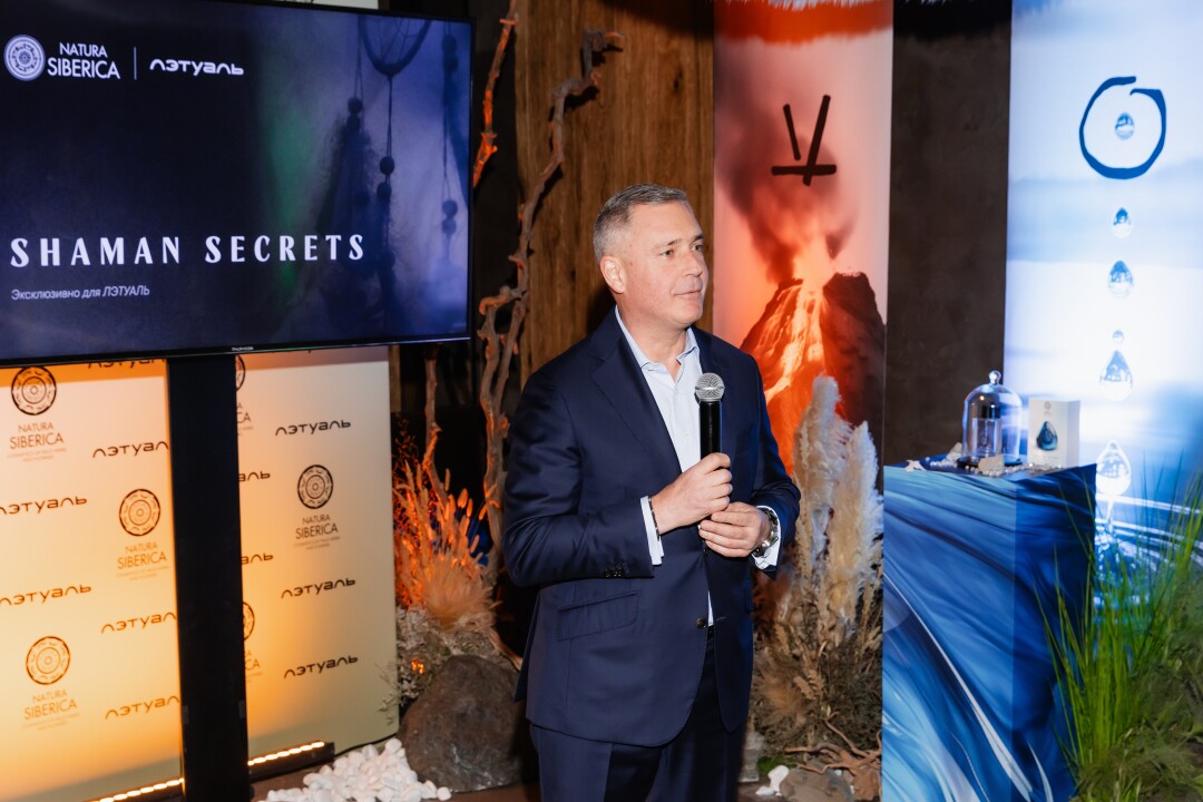 Во время ужина гостей угостили авторским меню, вдохновленным природными стихиями, а также сет коктейлем, названным в честь парфюмерных композиций: Flying Water, Mystery Fire, Voice of Wind, Historical Earth. Кульминацией вечера стала презентация ароматов Shaman Secrets: «Бренд Natura Siberica вдохновляется силой, красотой и масштабом сибирской природы. Мы рады представить вам нашу новую коллекцию Shaman Secrets, в которой 4 стихии, 4 аромата: воздух, земля, вода и огонь. Философия этой коллекции, философия этих ароматов связана с традициями, обрядами древних народов Сибири. Мы постарались уловить взаимосвязь, умение гармонично жить со всеми четырьмя стихиями, подпитываться от них энергией. Эти четыре стихии символизируют преемственность, связь времен, и я надеюсь, что нам удалось передать эту философию в наших новых продуктах», – рассказал генеральный директор косметической компании Сергей Быковских.