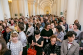 В Арапском зале и Ротонде Зимнего дворца состоялось открытие выставки «Высочайшего двора служители». Директор Эрмитажа Михаил Пиотровский и заведующий отделом истории Эрмитажа Вячеслав Федоров выступили с приветственным словом, рассказав об экспозиции, в которой представлено 252 комплекта костюмов с аксессуарами - бальные платья, парадные мундиры, охотничьи и карнавальные костюмы, детская одежда и даже предметы интимного гардероба - белье и утренние платья аристократов. Посетители смогли ознакомиться с нарядами членов императорской семьи, знати и придворных служителей XVIII - начала ХХ века из коллекции Государственного Эрмитажа.