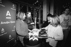 Генеральным партнером мероприятия выступил «Альфа-Банк». В ожидании показа гости узнавали о новых предложениях банка для премиум клиентов и распаковывали шоколадки с пожеланиями (все конфеты заряжены на финансовый успех, проверено!). В знак долгосрочного партнерства и крепкой дружбы с «Собака.ru» сотрудники банка изготовили логотип-собаку из банковских карт. Сувенир остался охранять благополучие редакции.