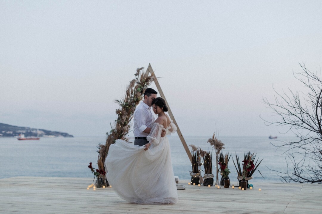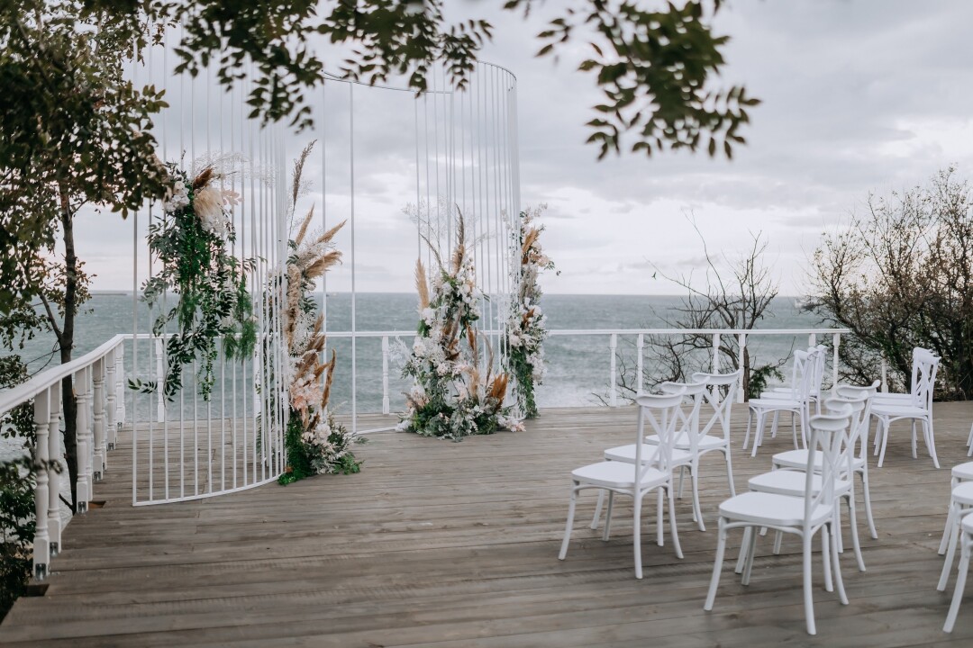 Для выездной церемонии предусмотрена удобная площадка возле веранды. На фоне моря жених и невеста говорят слова любви — все как в красивом кино, и это ваша свадьба! Только вы, ваши гости и волны.