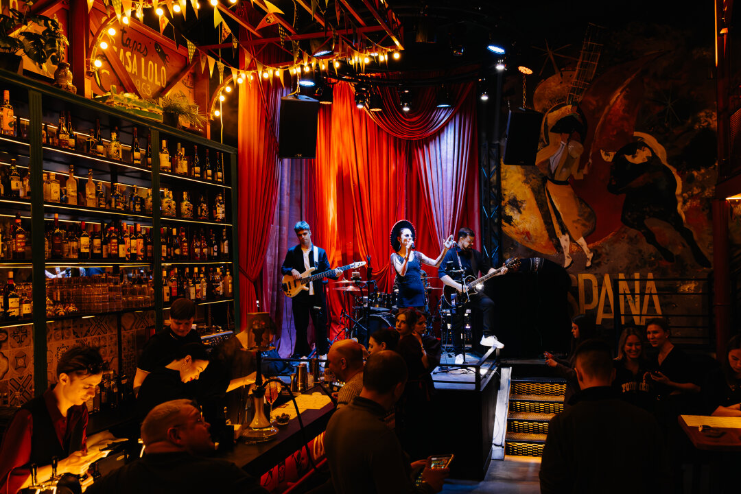 Два этажа бара – это калейдоскоп красок, звуков и вкусов. Тематические картины и смелые граффити на стенах, винтажные испанские пластинки и гитара, уютные книжные уголки и солнечные оттенки создают неповторимую атмосферу, вдохновленную культурой Испании. А в центре внимания – большая сцена, где регулярно проходят живые выступления, наполняющие пространство энергией и драйвом.