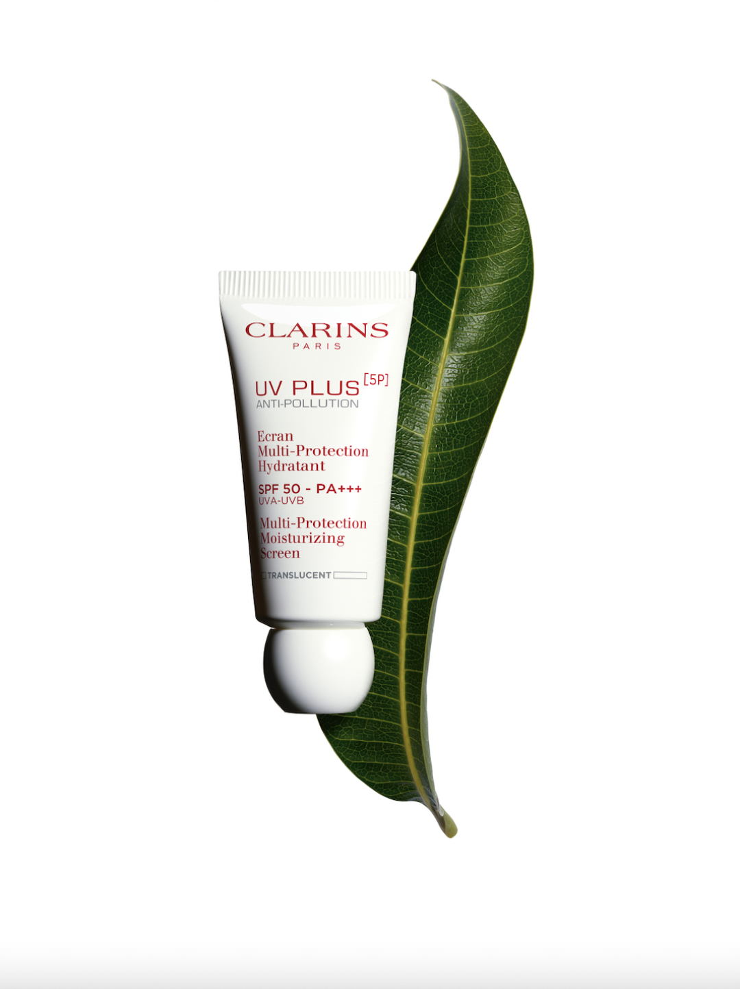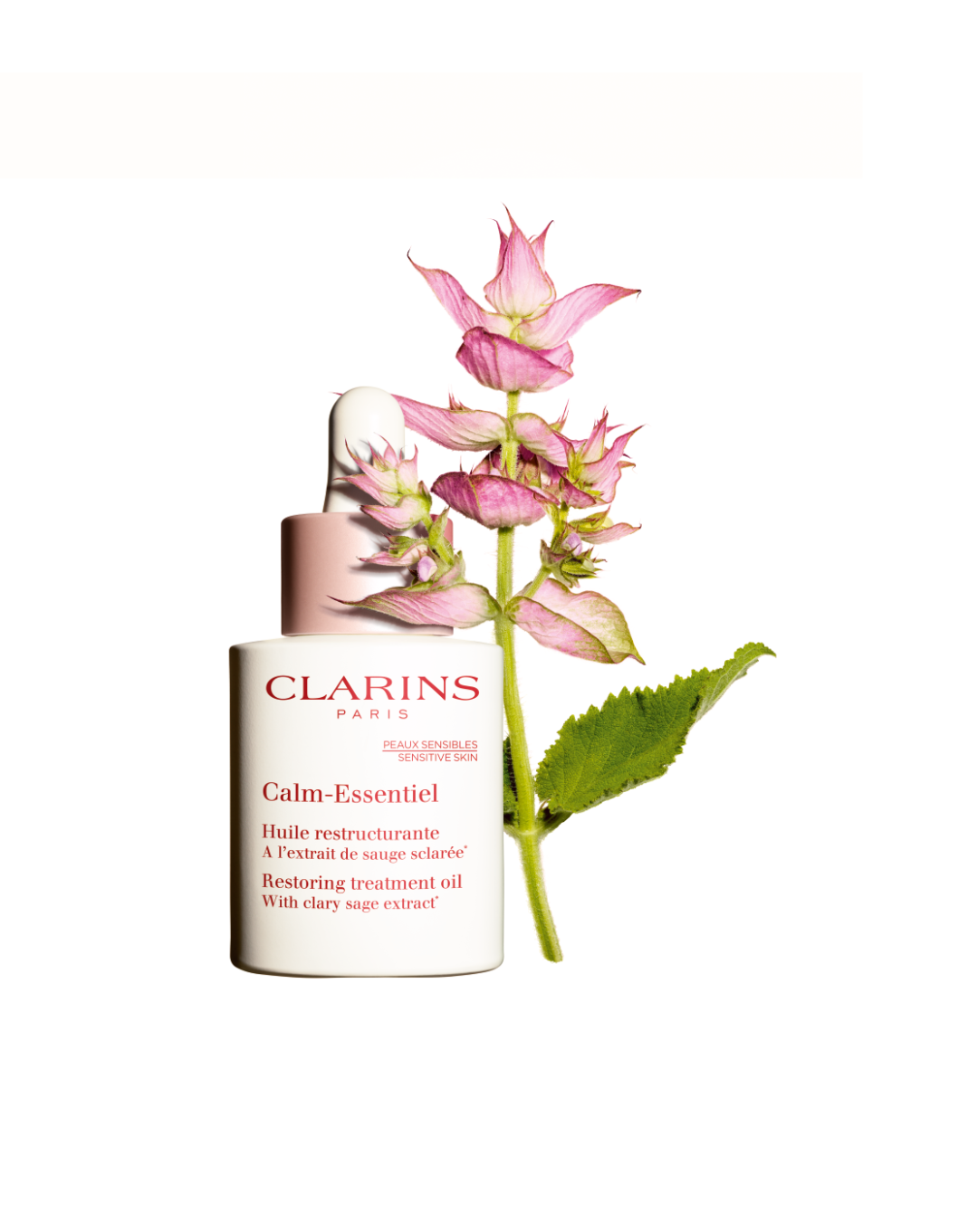 Уход стоит разделить на утренний и вечерний. Так утром не обойтись без увлажнения и санскрина в виде эмульсии Clarins Calm-Essentiel и защитного флюида-экрана Clarins UV Plus [5P] Anti-Pollution с SPF 50. А вечером в бой с чувствительностью кожи лица вступает восстанавливающее масло Clarins Calm-Essentiel.