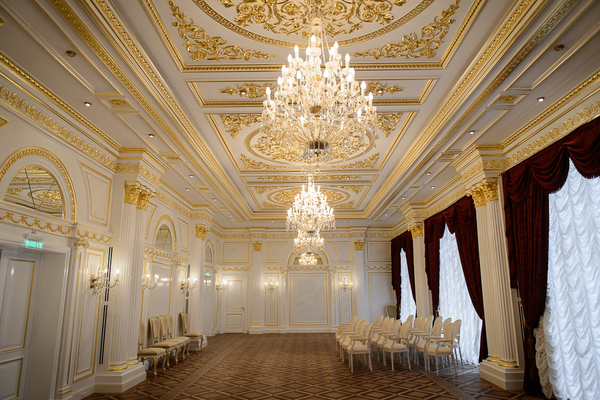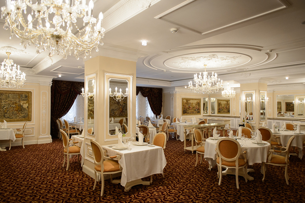 На первом этаже уже работают два ресторана. «Екатерина Великая» — это высокая кухня, преимущественно французская и традиционно русская c историческим меню императорской резиденции – Зимнего дворца. Ресторан итальянской кухни «Микеланджело» – более декократичное место для ланча, традиционного русского чаепития и приветственных коктейлей. Тут же — лобби-бар и сигарная комната с камином и билиотекой.